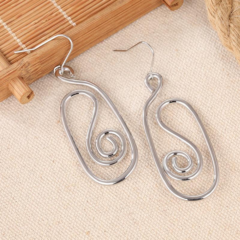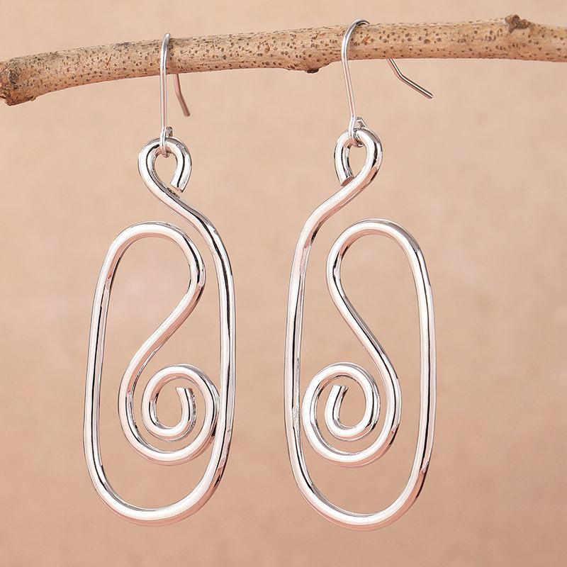 Geometric Spiral Retro Earrings Minimalist Abstract Line Women&