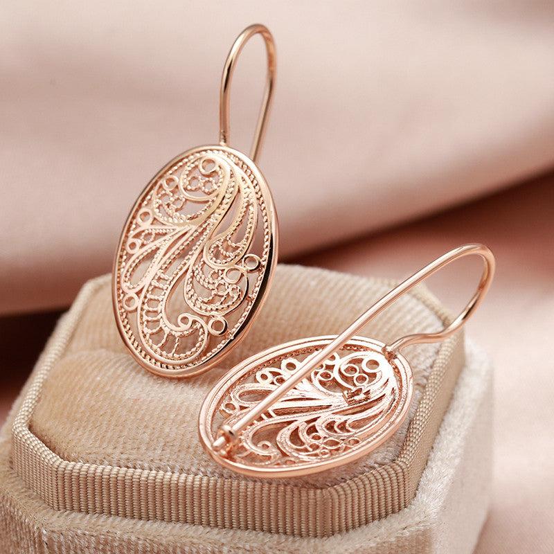 Geometric Vintage Cutout Pattern Earrings Golden Party Jewelry
