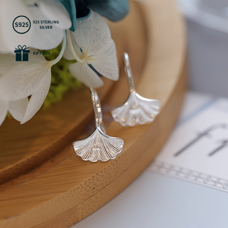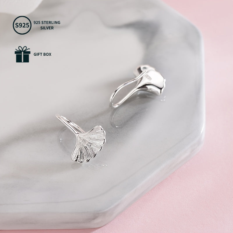 These versatile ear hook earrings feature ginkgo leaf design in S925 silver. They are lightweight and perfect for adding a touch of fresh, minimalist personality to any outfit. Ideal as a wedding or anniversary gift for loved ones.