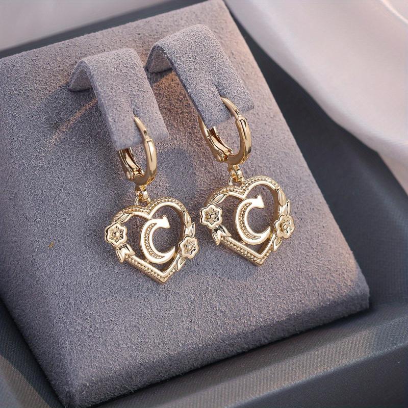 These elegant hoop earrings feature heart shaped design with rose flower decoration. Perfect for weddings, banquets, or as a special gift.