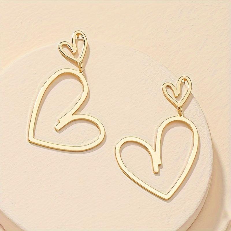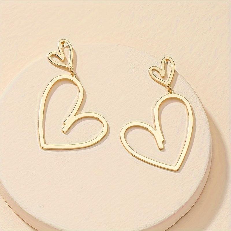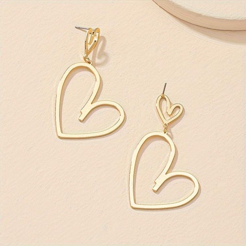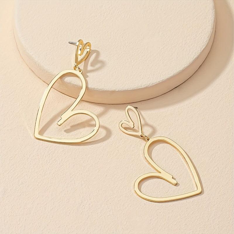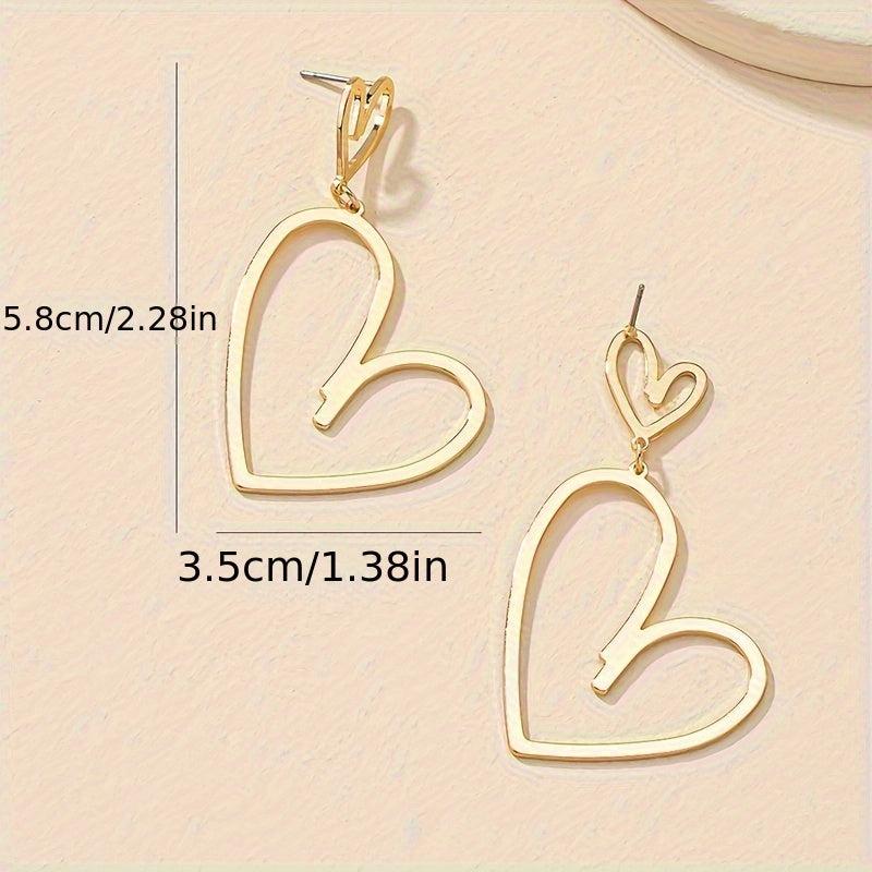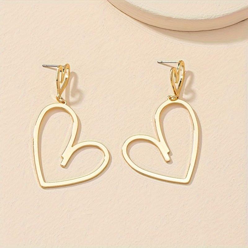 These elegant earrings feature a golden hollow heart design, perfect for adding a touch of charm to any outfit. A great gift idea for loved ones.