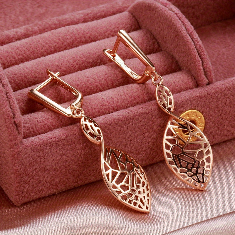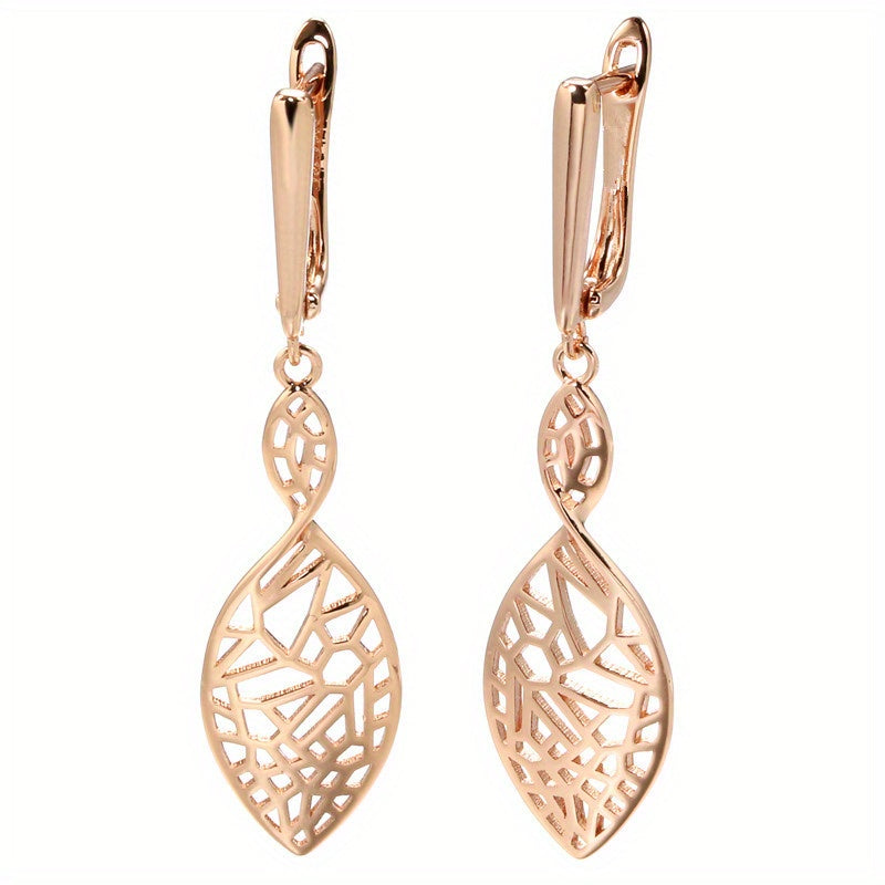 Enhance your look with these stunning golden leaf style long drop earrings, perfect for any occasion.