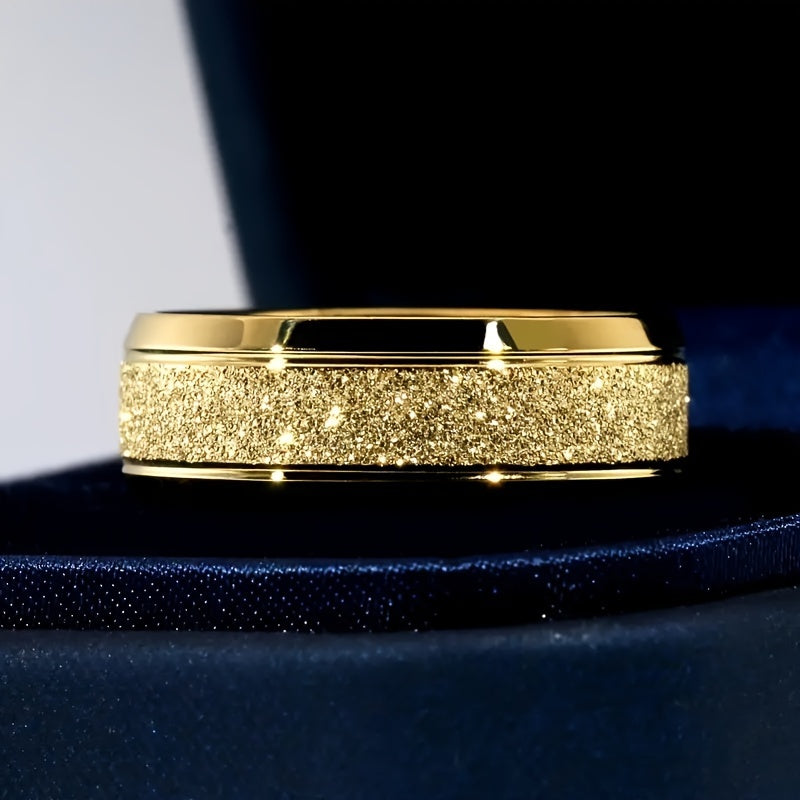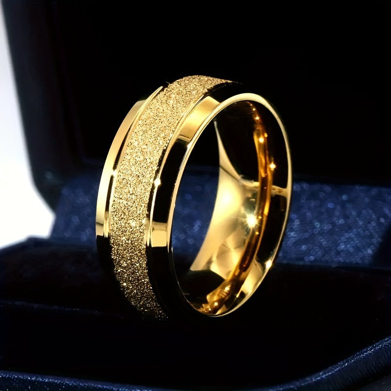 Elegant and atmospheric couple rings made of high-quality stainless steel with a luxurious golden finish.