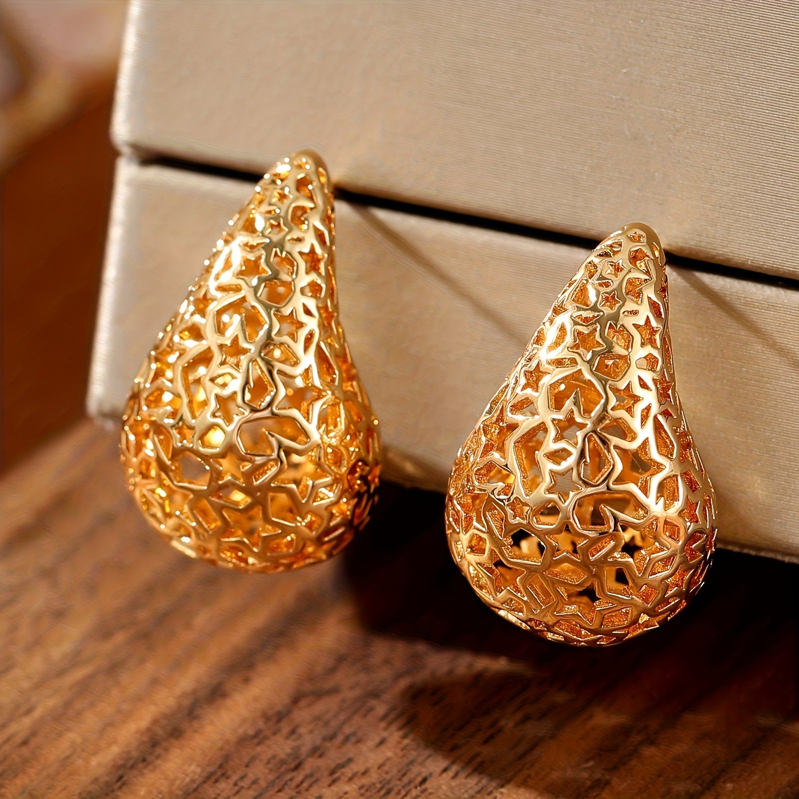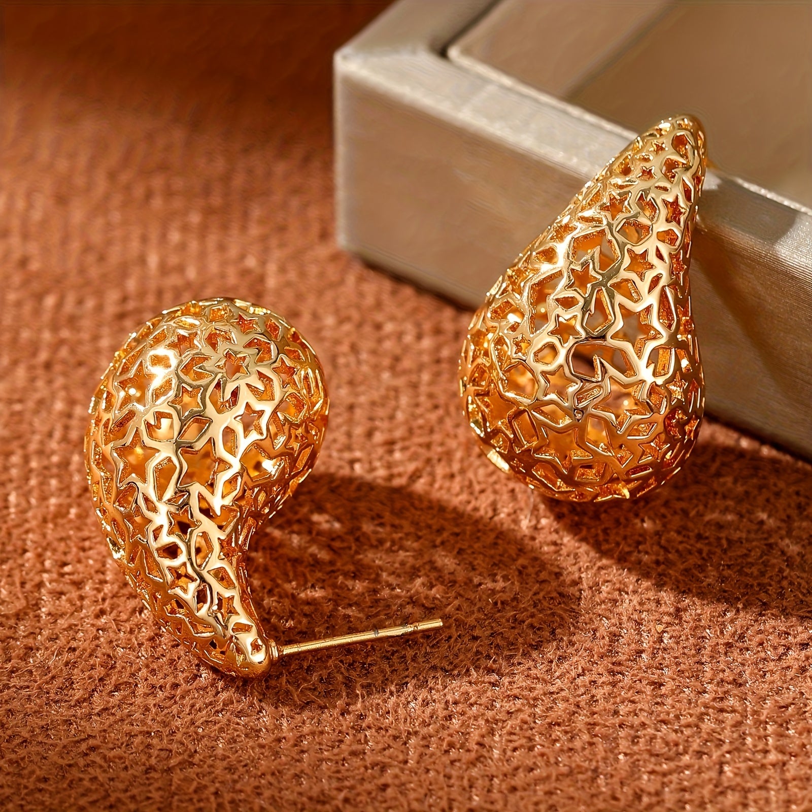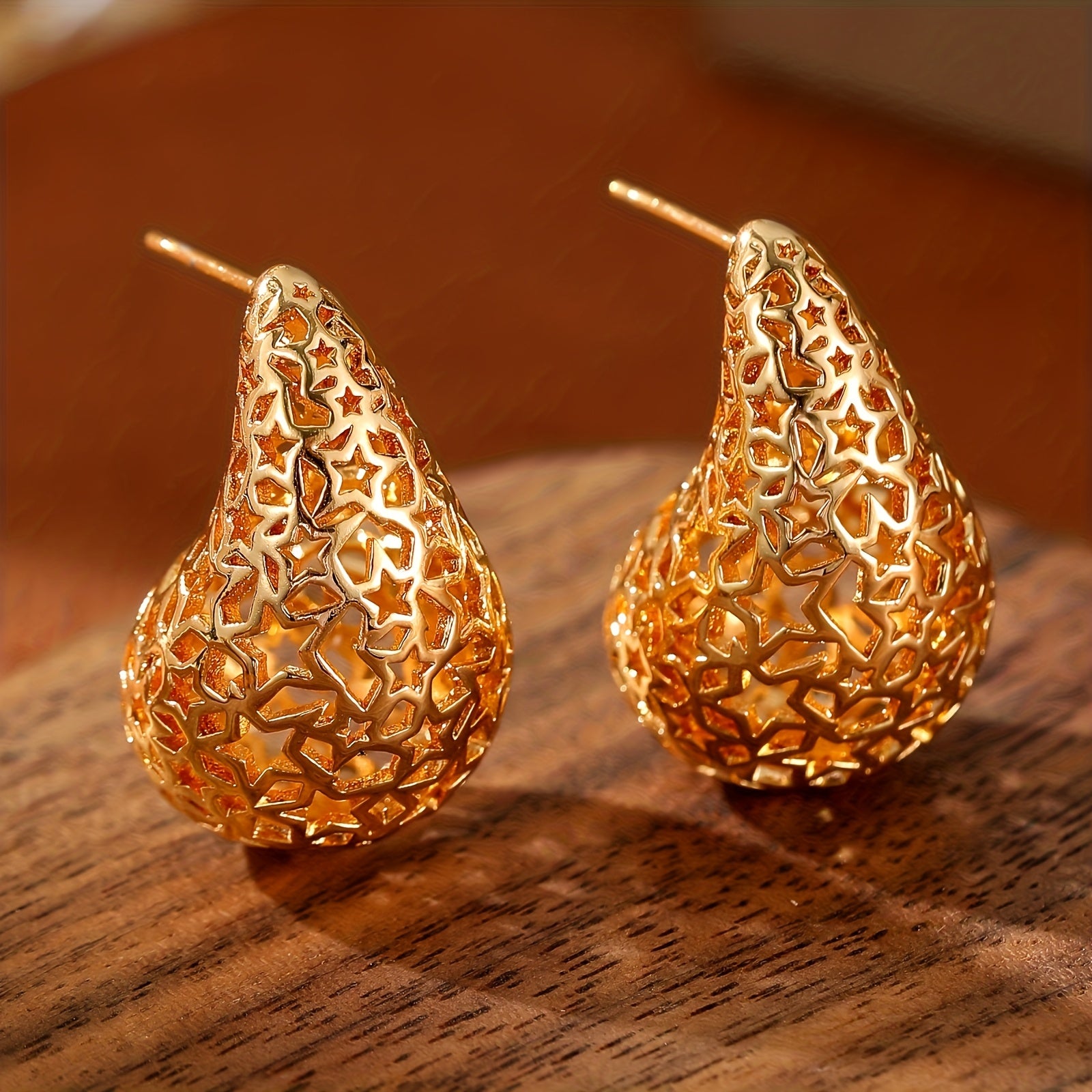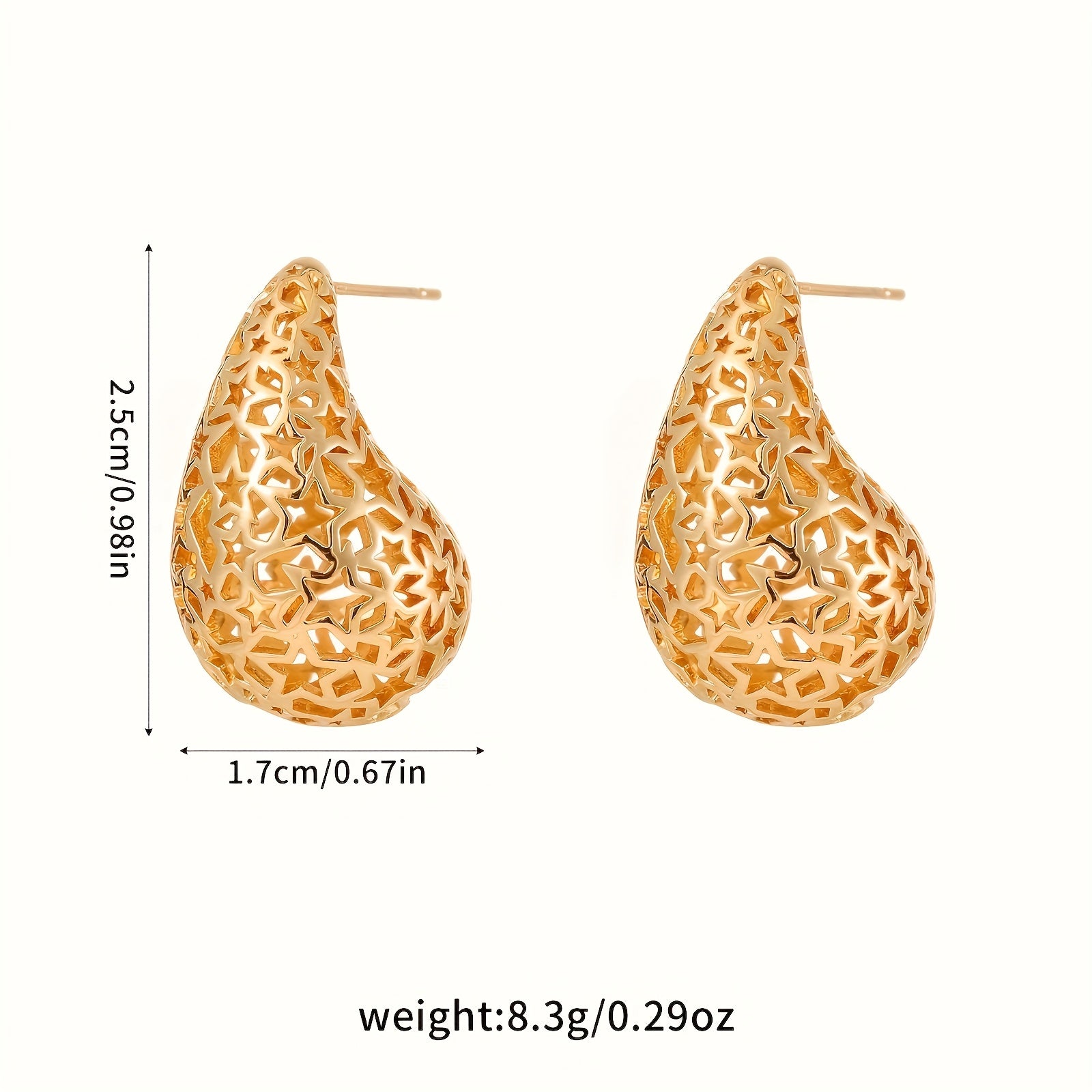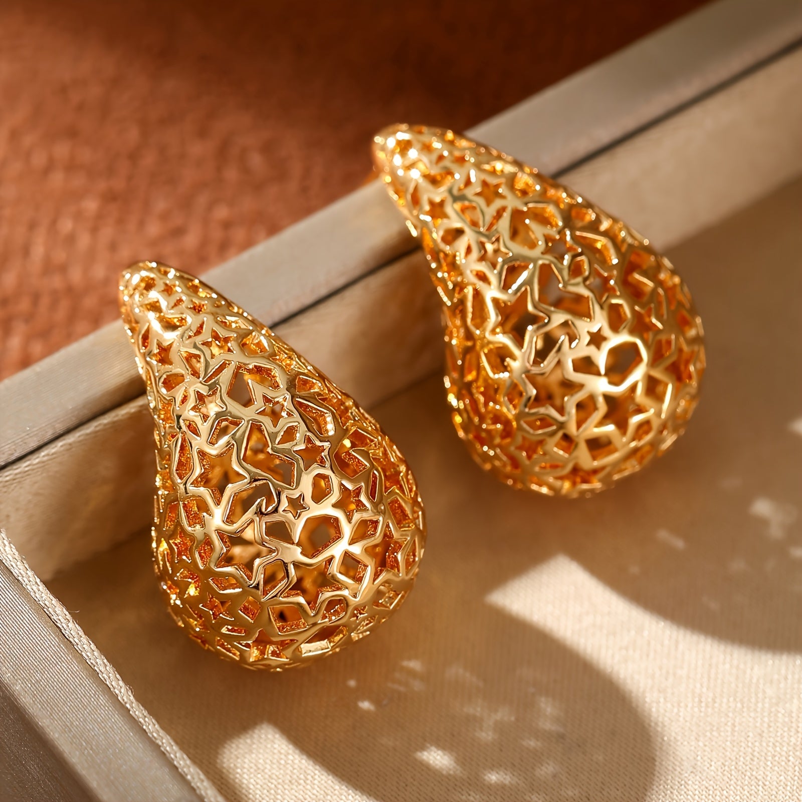 Add a touch of elegance to your outfit with these teardrop earrings featuring an intricate cut-out star textured design. Perfect for everyday wear or special occasions, these earrings make a great gift for her.