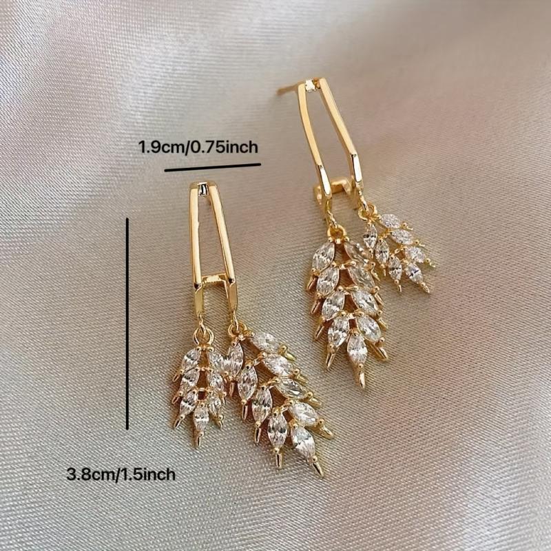Add a touch of elegance to your outfit with these beautiful leaf drop earrings featuring sparkling synthetic diamonds. Perfect for weddings or daily wear.