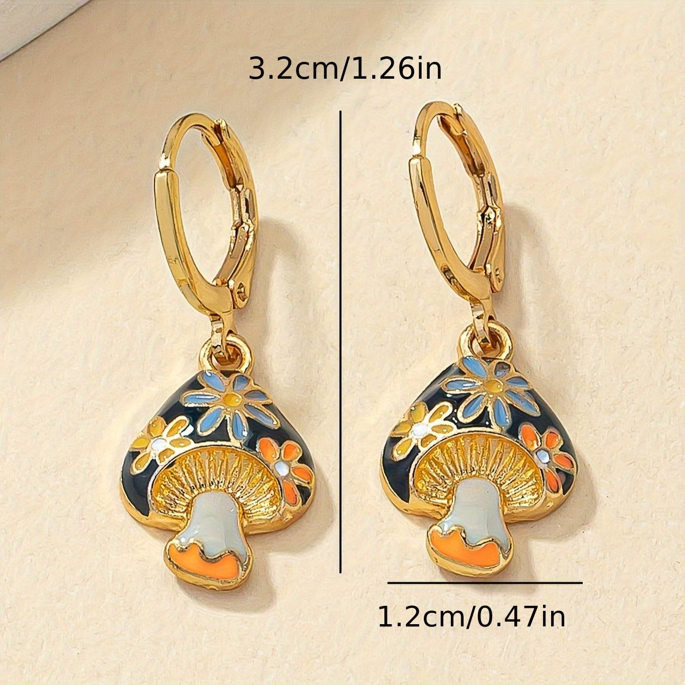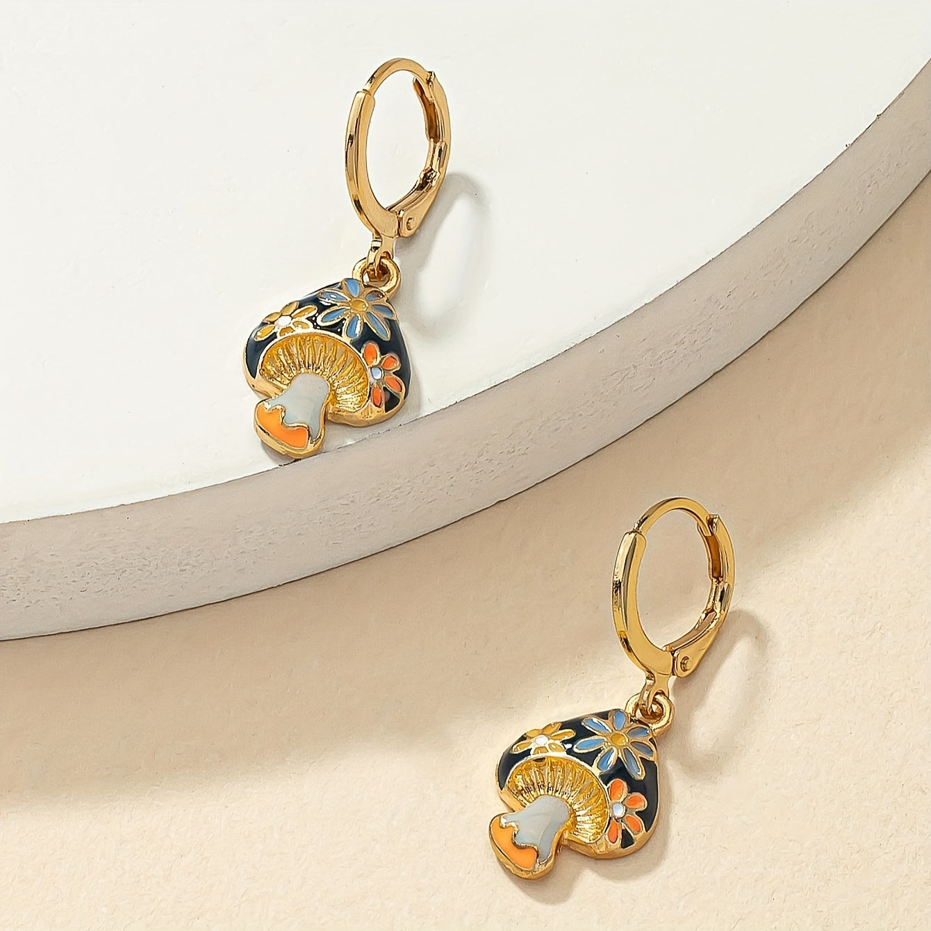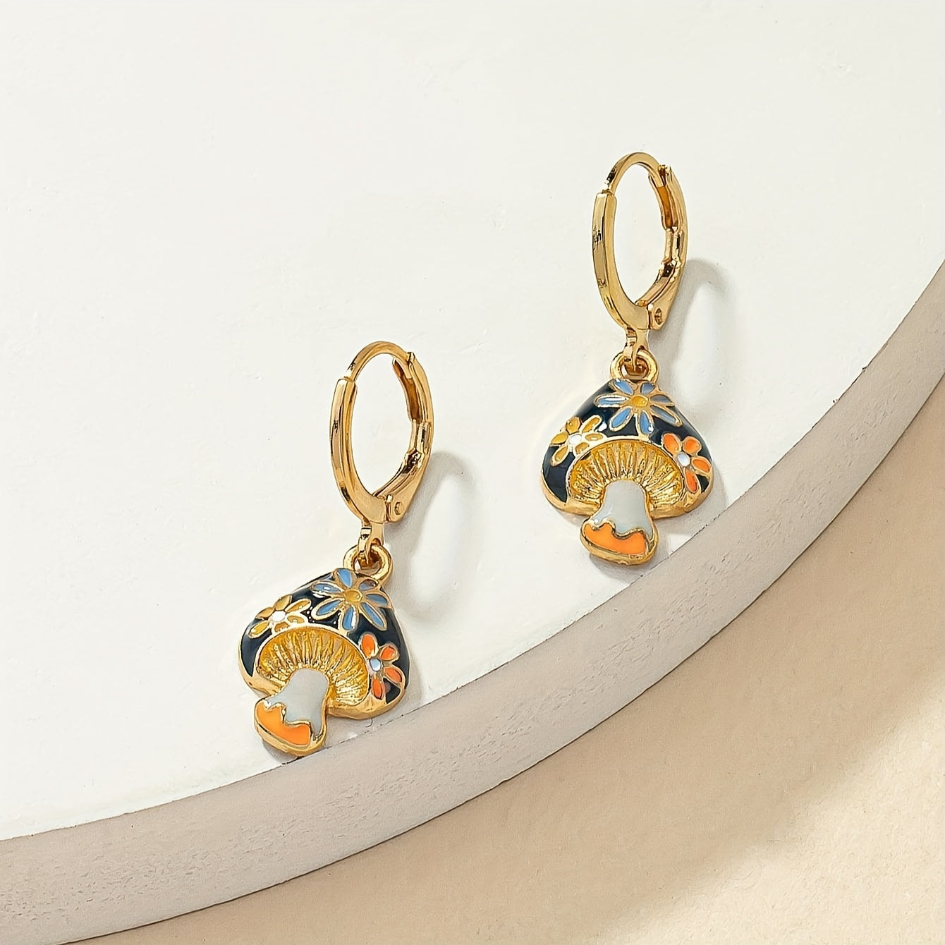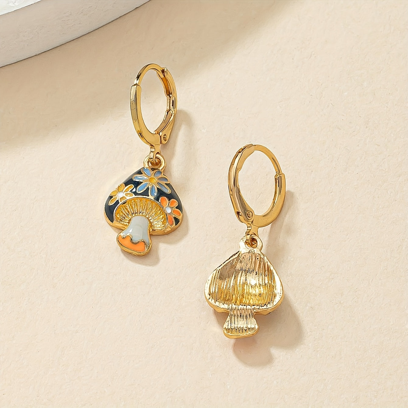 Golden Tone Mushroom Earrings with Floral Detail for Daily Wear