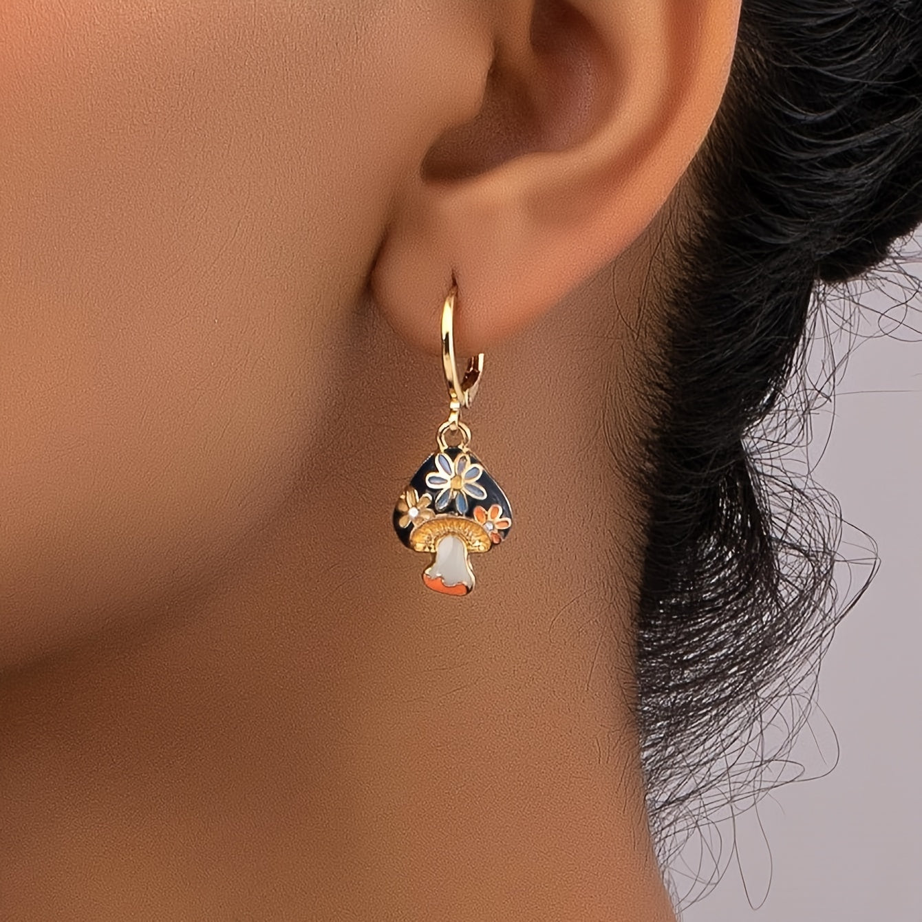 Elegant and charming mushroom earrings featuring intricate floral details. Perfect for daily wear or special occasions.