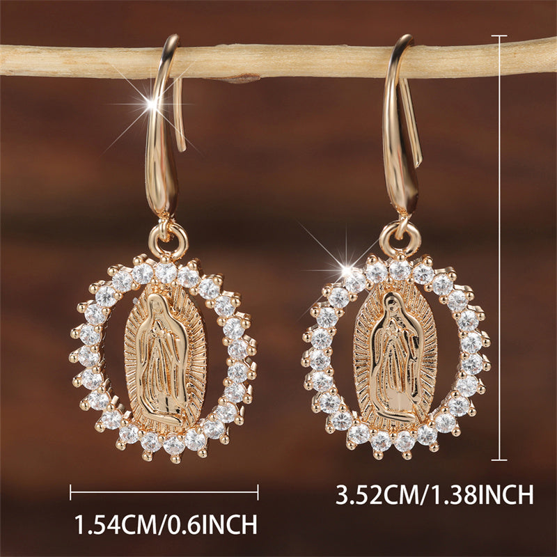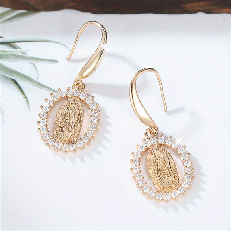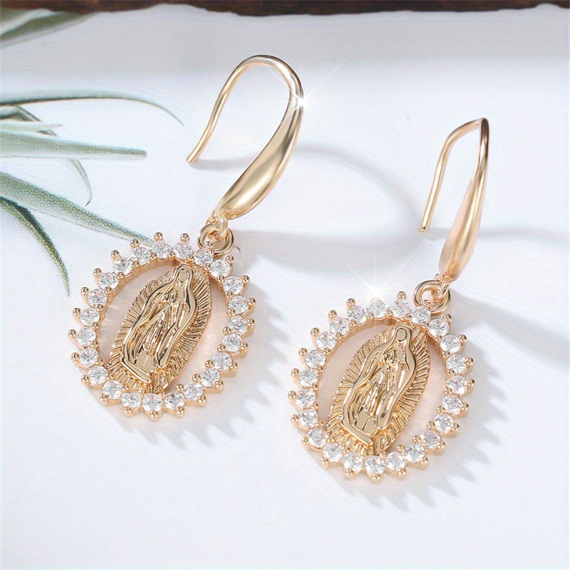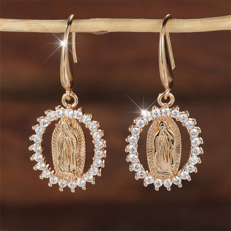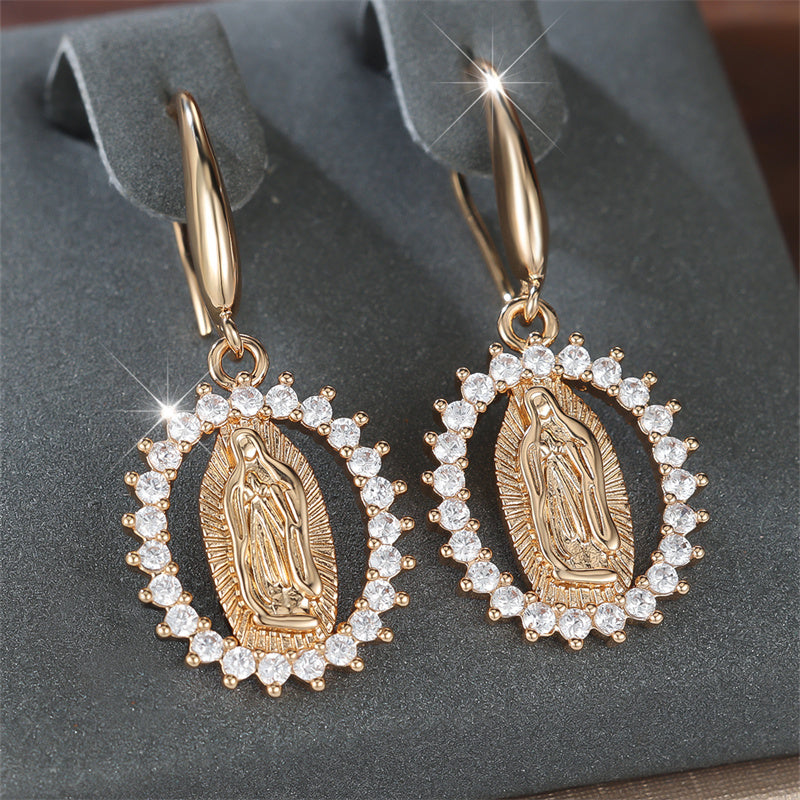 Add a touch of elegance to your winter look with these stunning Golden Virgin Mary Earrings. Perfect for pretend play or as a Christmas gift.