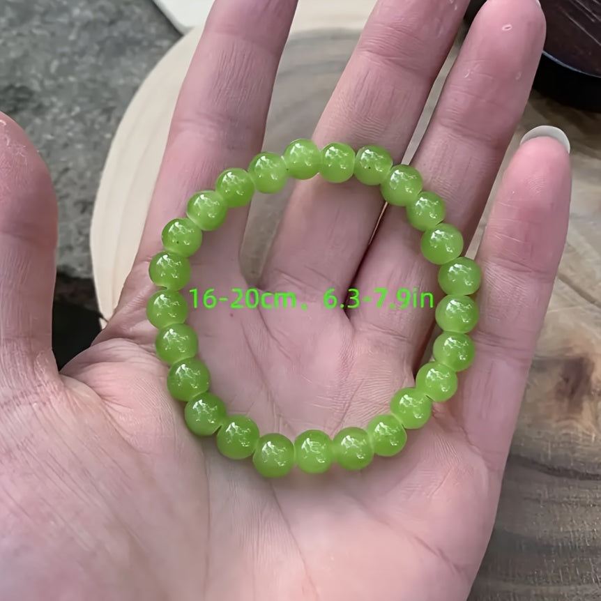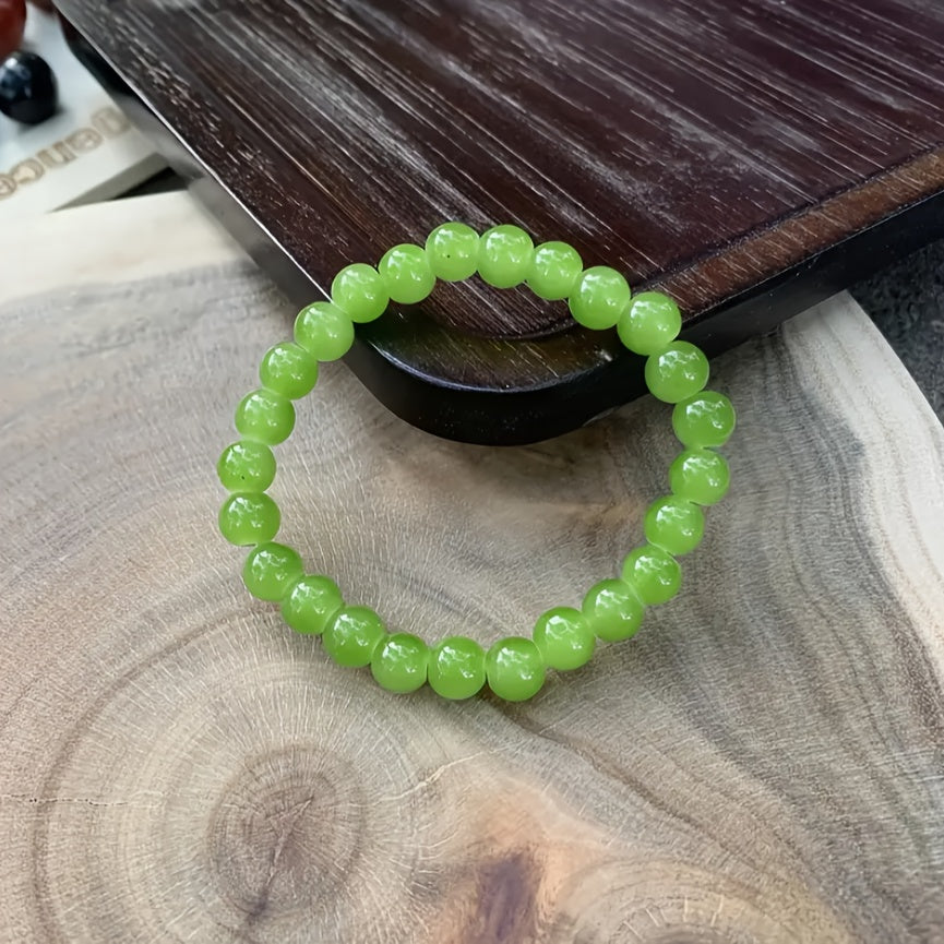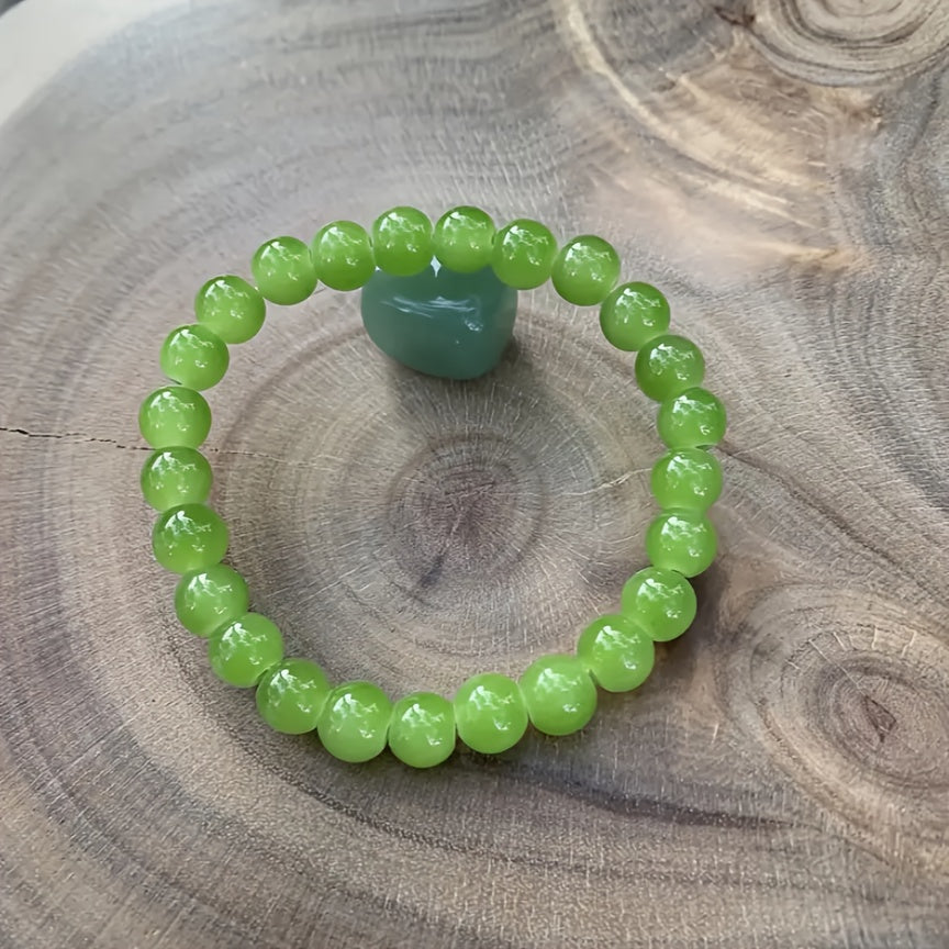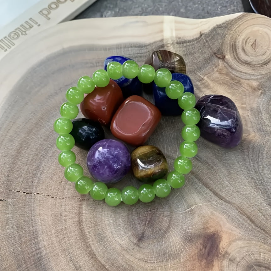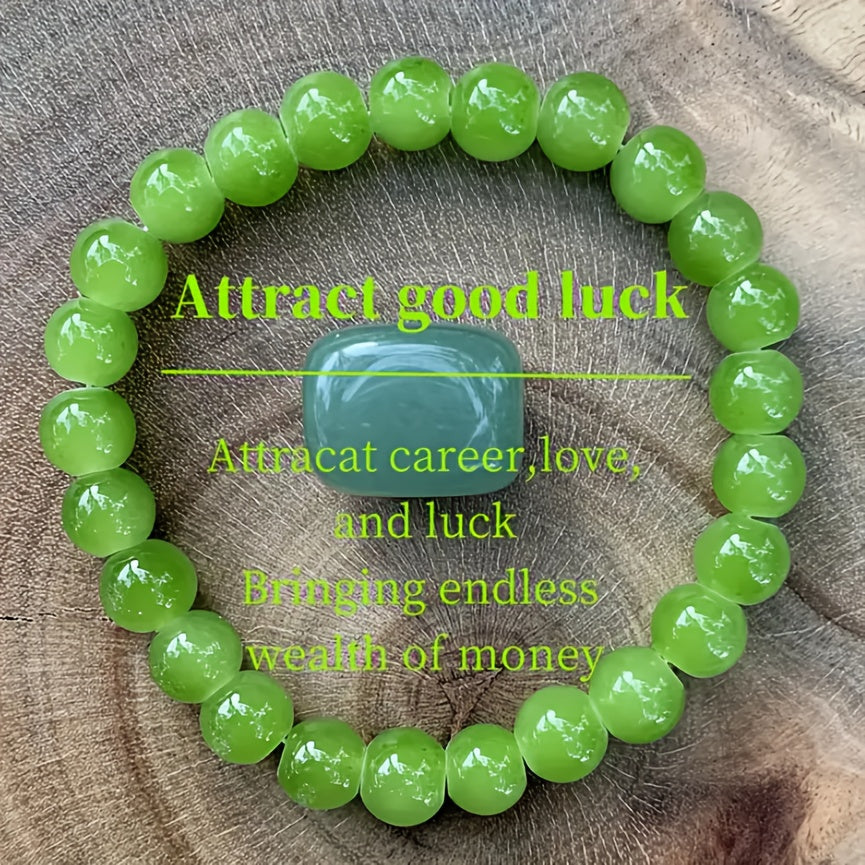 This charming bracelet features green stone beads to bring good luck and positive energy.