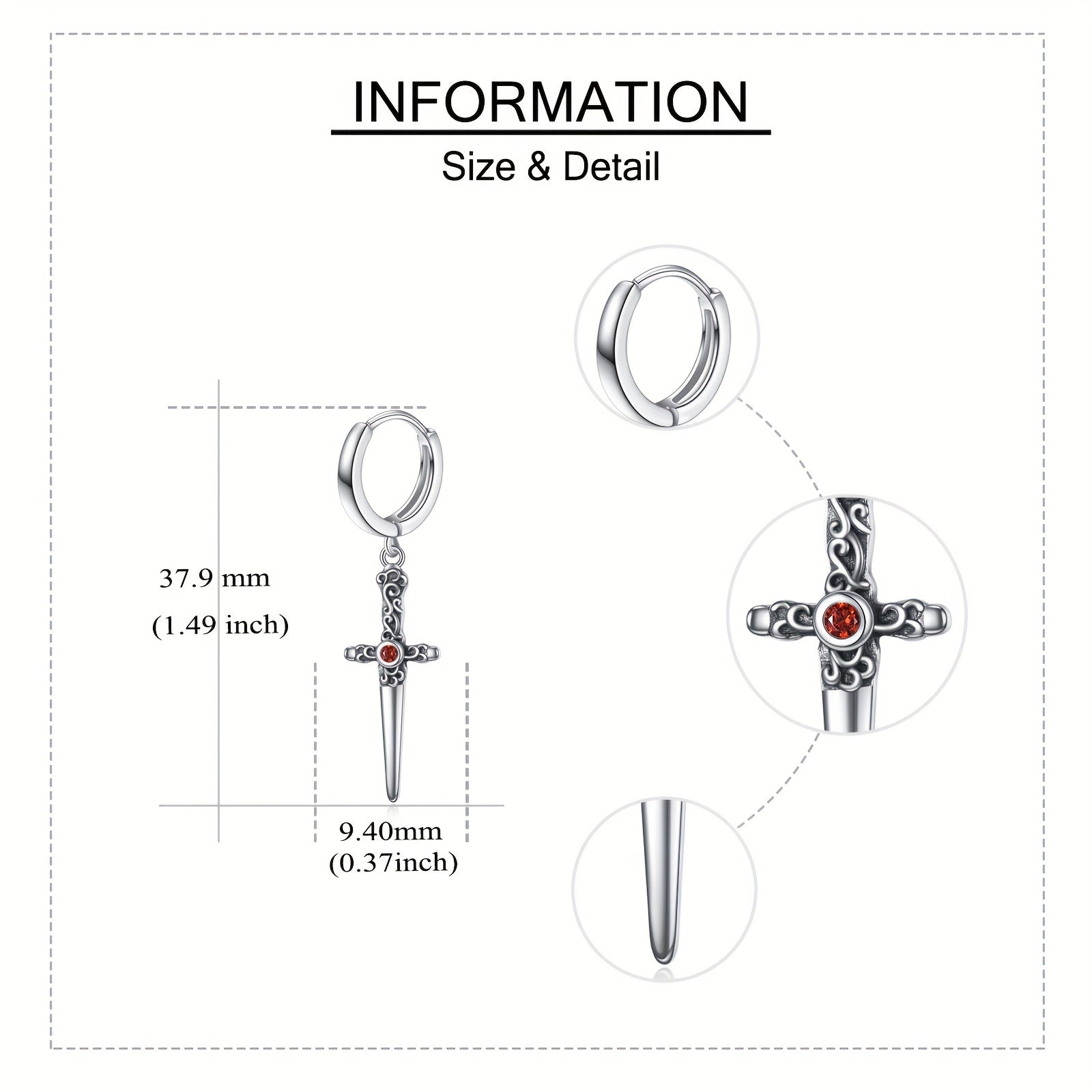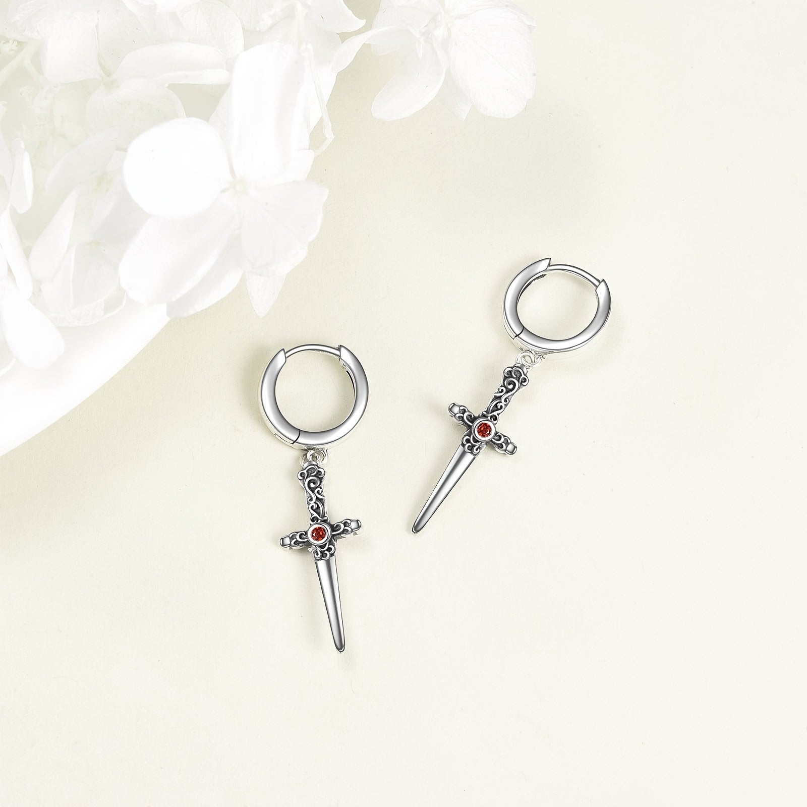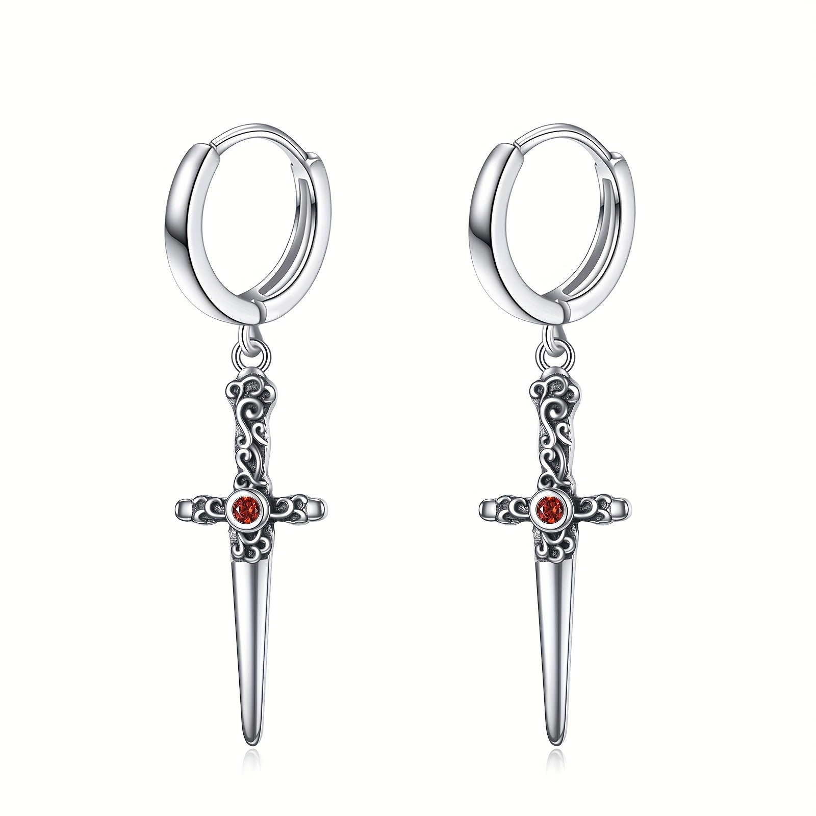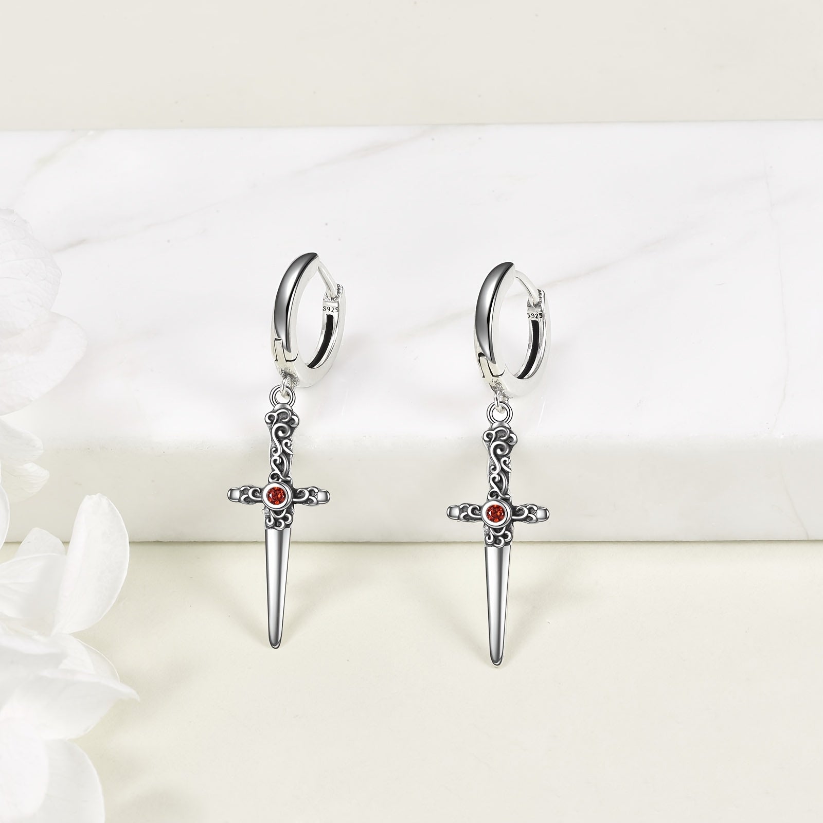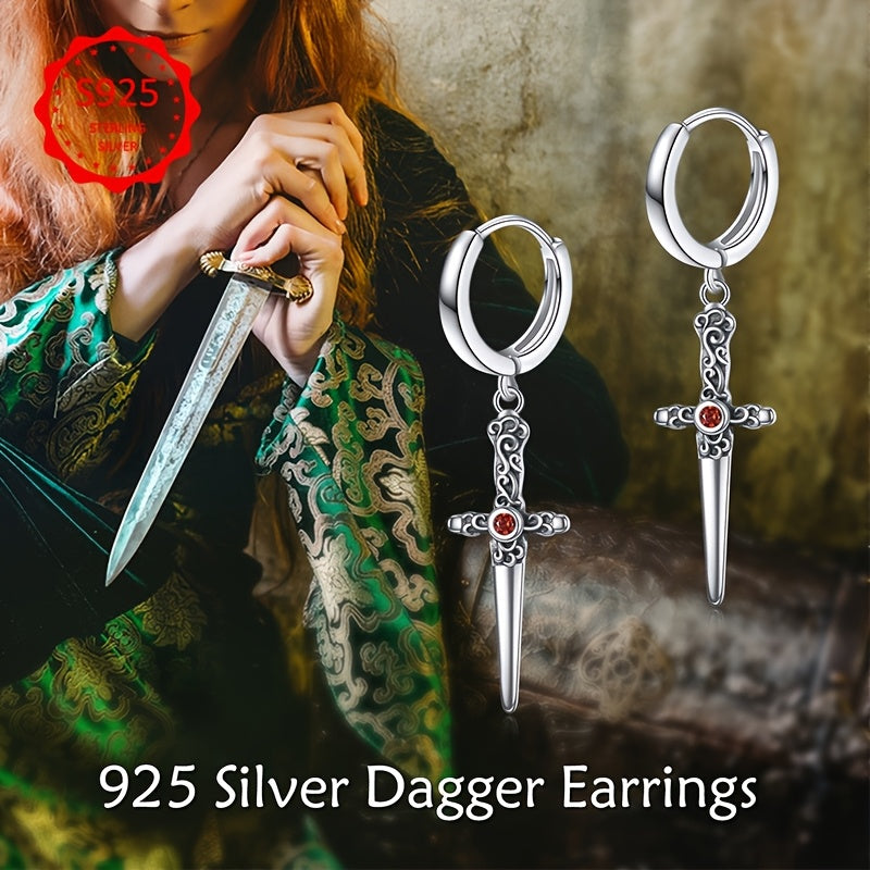 These sterling silver earrings feature a unique design of dagger sword dangles. Perfect for a gothic or vintage look, these earrings are a stylish accessory for women and girls.