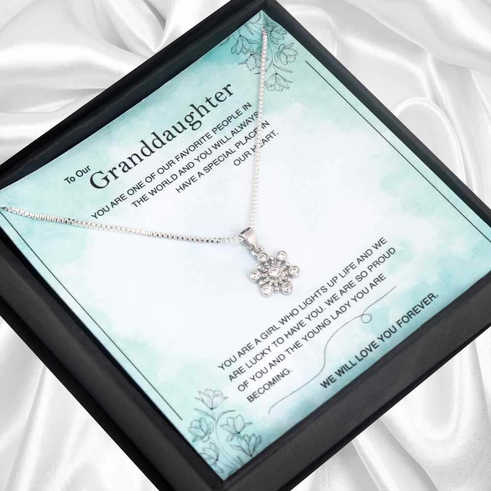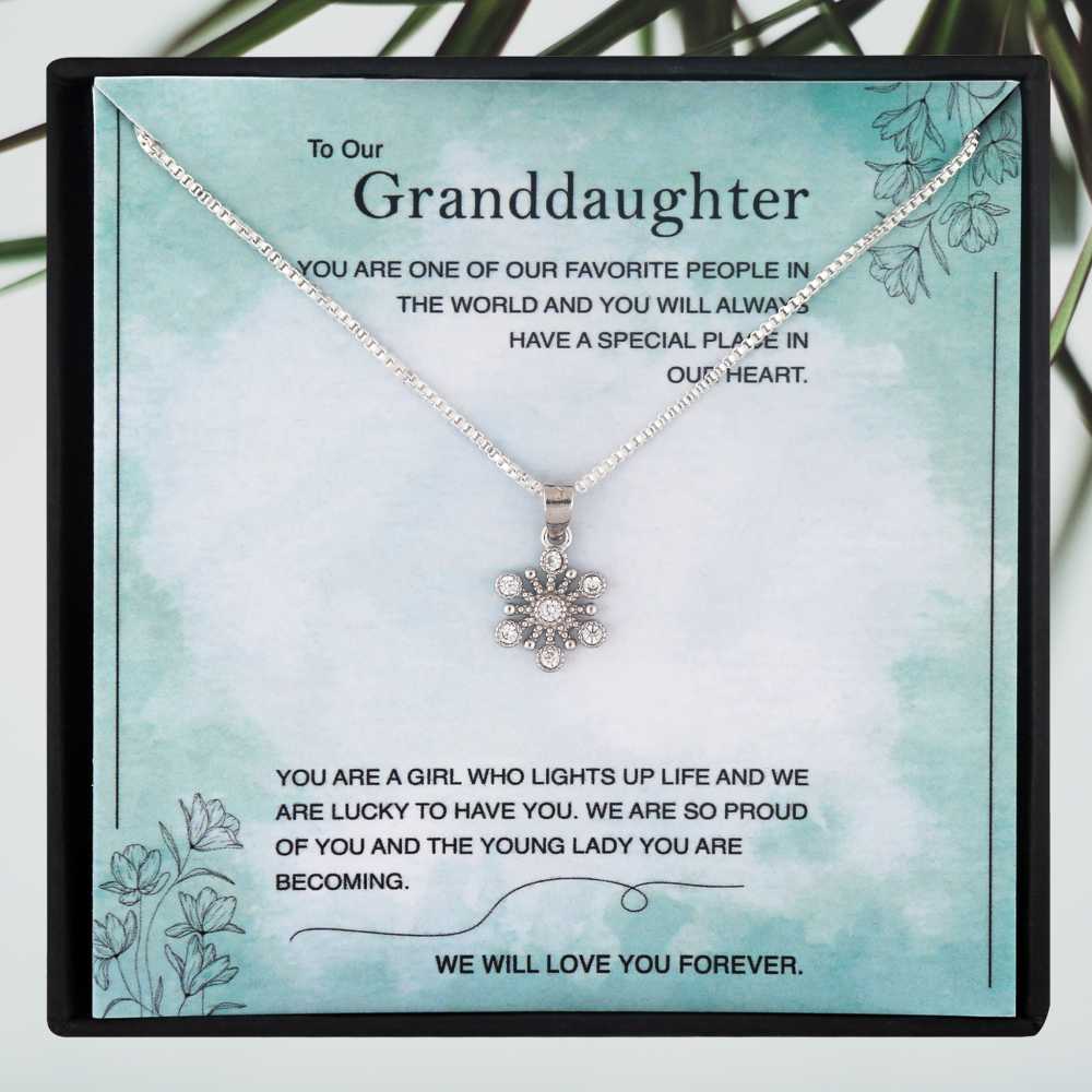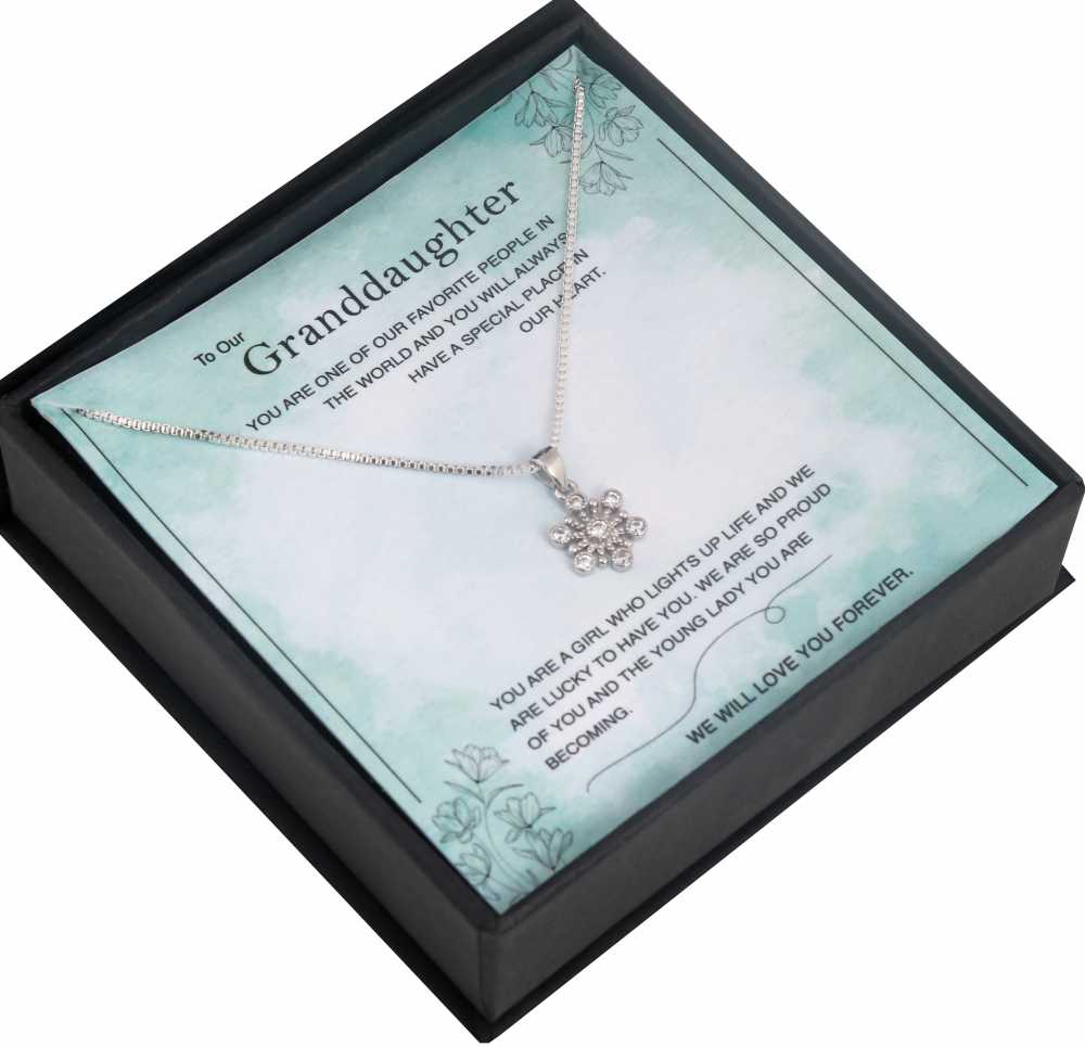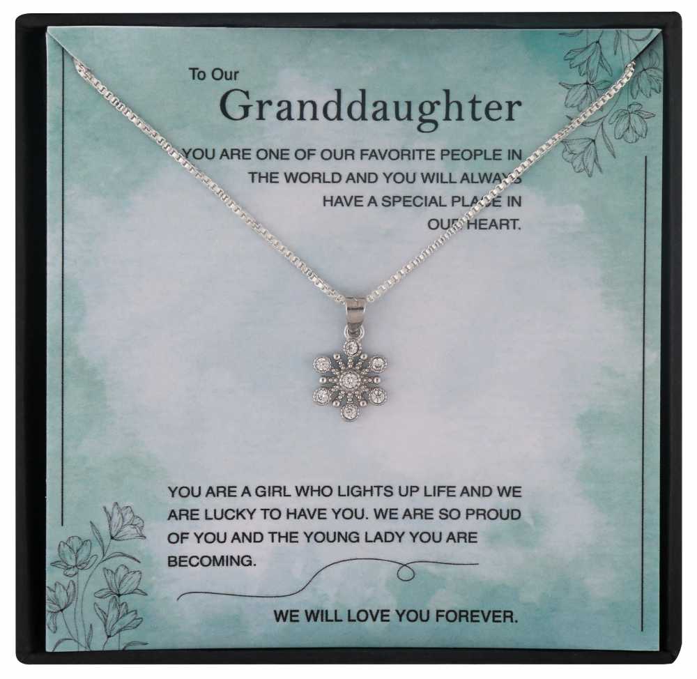 Watching your Lil granddaughter grow is a blessing. Get your lovely angel this sweetest jewelry gift that comes with a personalized message card. The necklace is made of silver plated and the pendant is studded with cubic zirconia that shines as bright as your granddaughter. The message card reflects your thoughts on your Lil woman and this gift will speak your heart for years together.