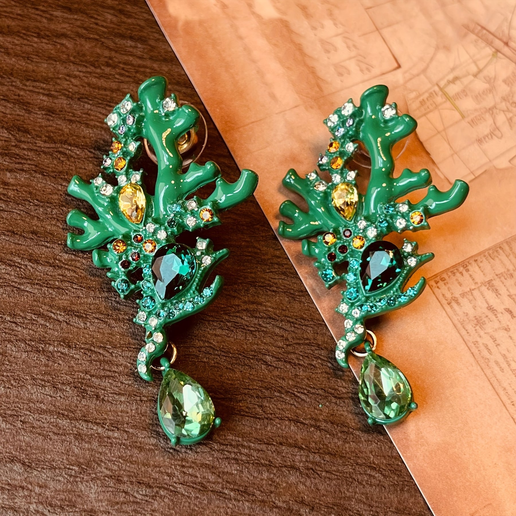 Elevate your style with these stunning green coral drop earrings. Perfect for everyday wear, festive occasions, vacations, and formal events.