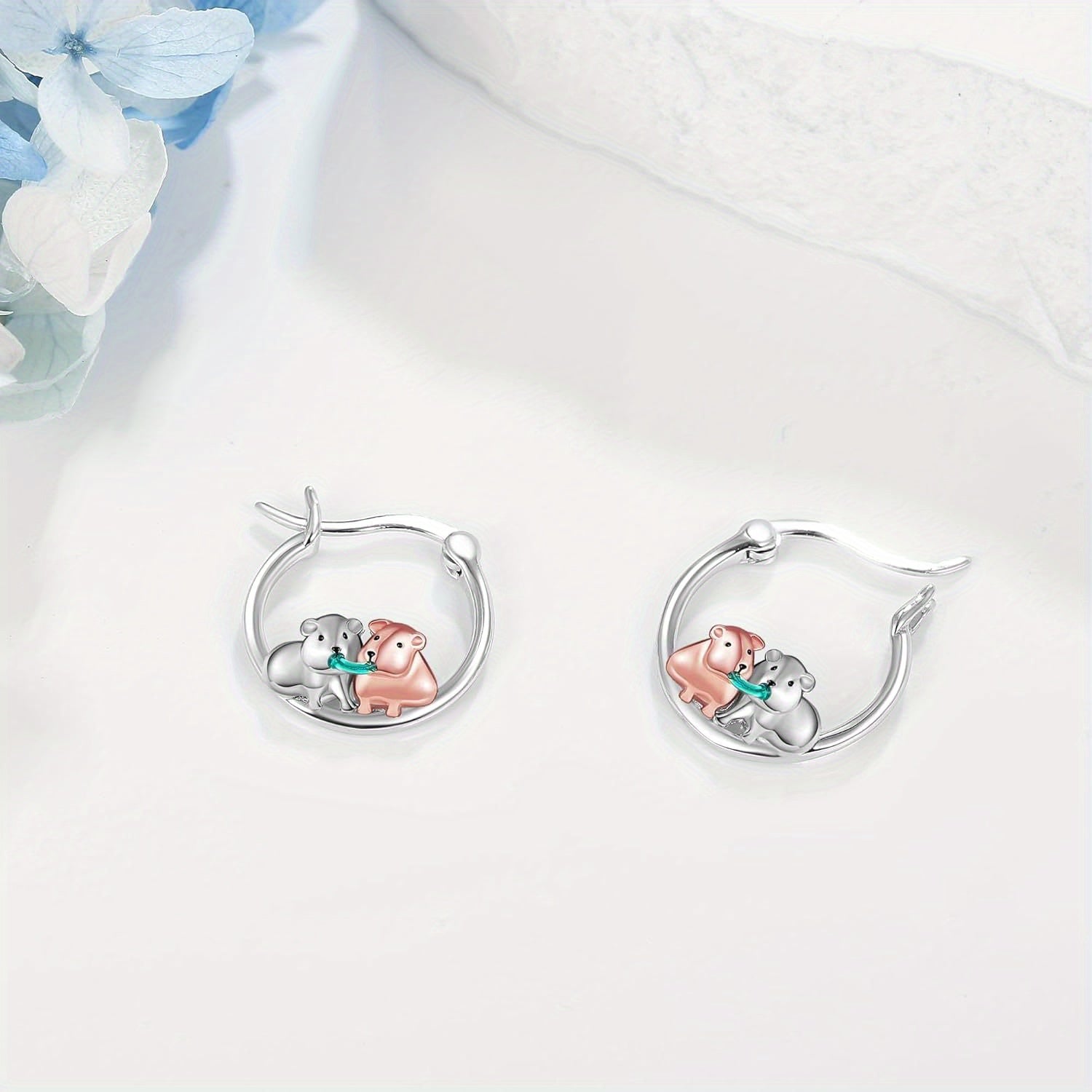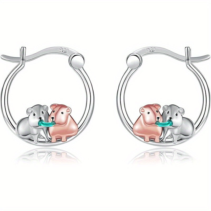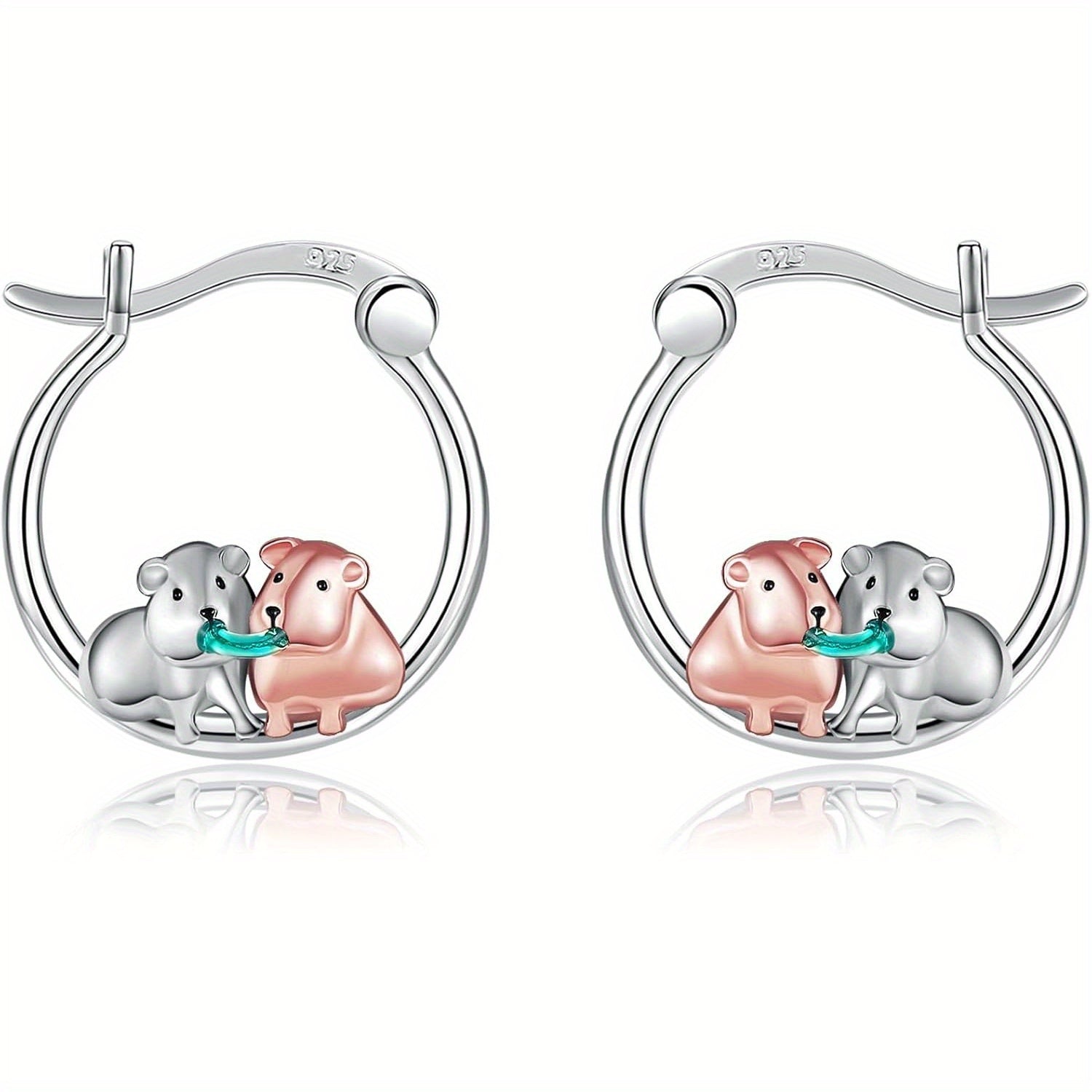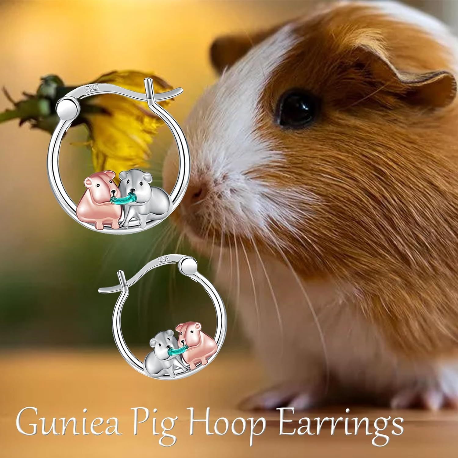 Adorable hoop earrings featuring a guinea pig, French bulldog, and penguin design. Made of sterling silver, these earrings are a perfect gift for pet lovers. Show your love for your furry friends with these charming earrings.