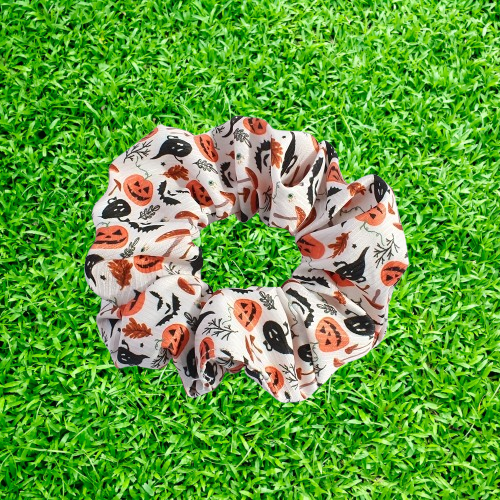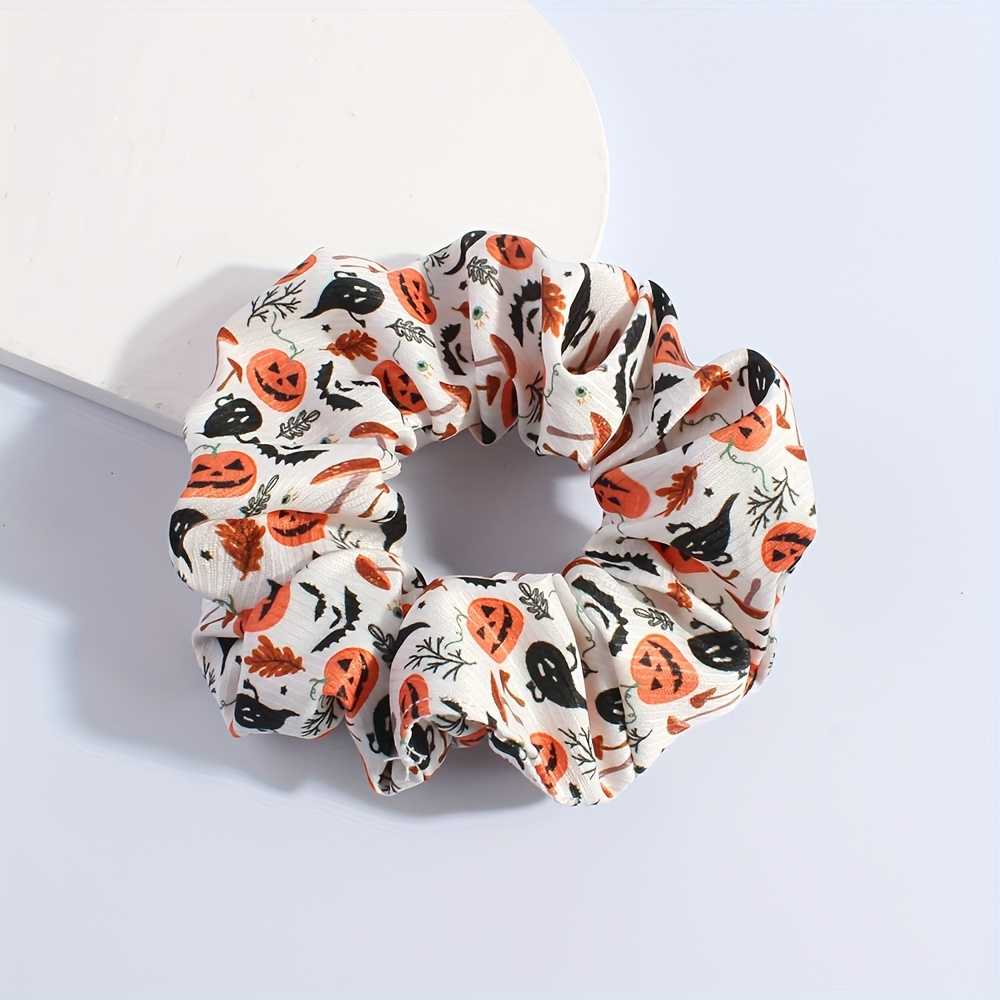 Halloween Pumpkin Print Scrunchie In Vintage Hip Hop Style Hair Accessory For Women