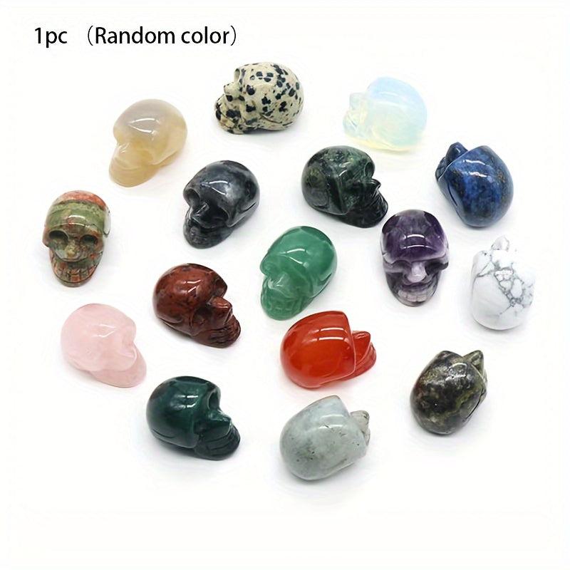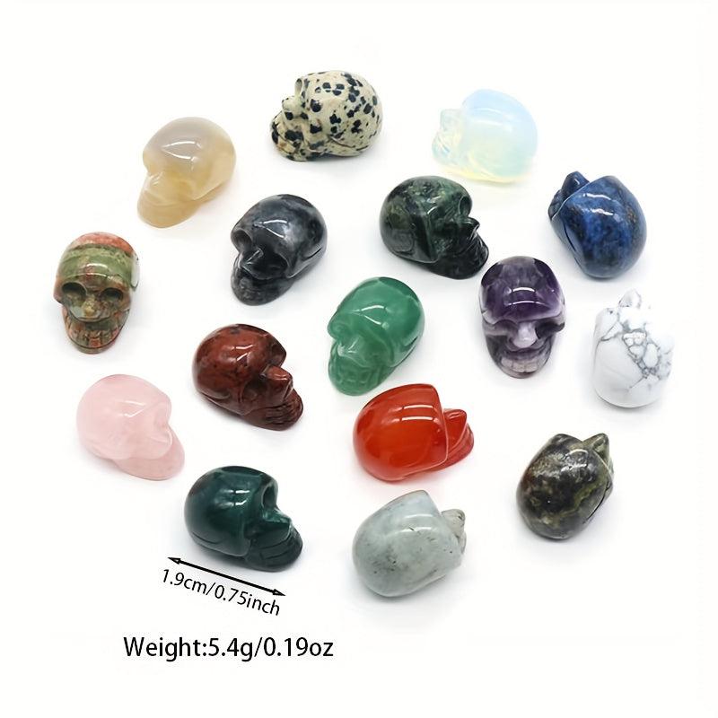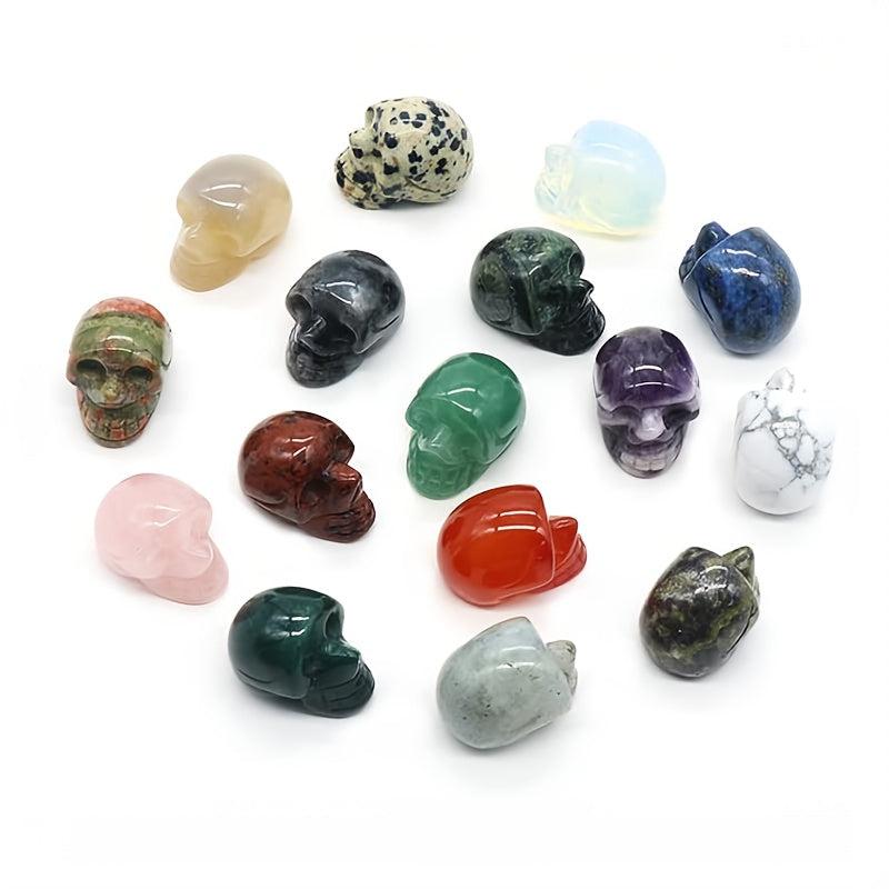 These hand-carved crystal skull figurines come in random mini skull designs with intricate geometric patterns. Each skull statue is unique and perfect for decoration or collecting.