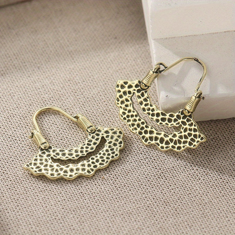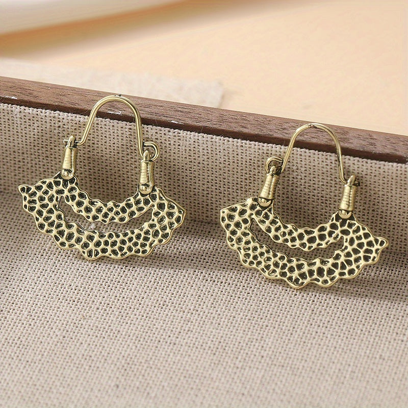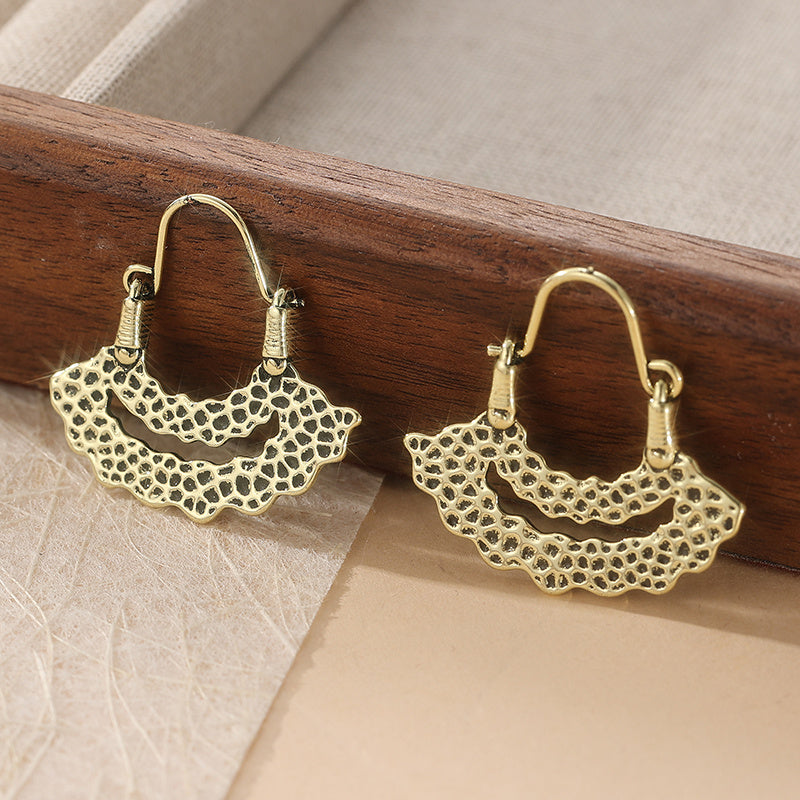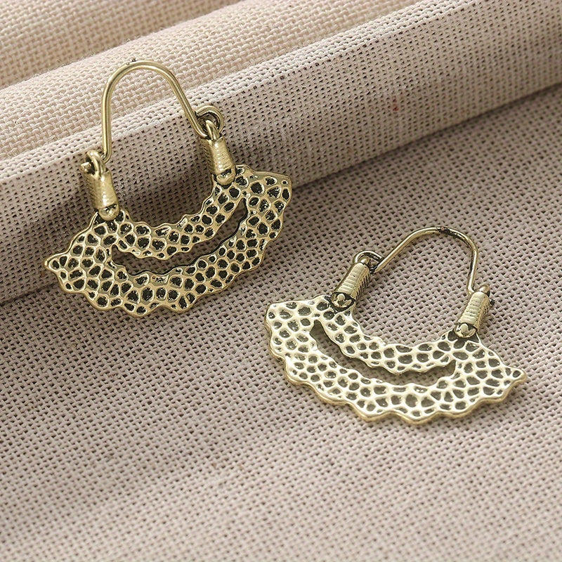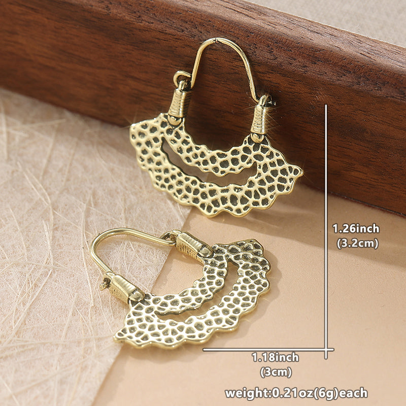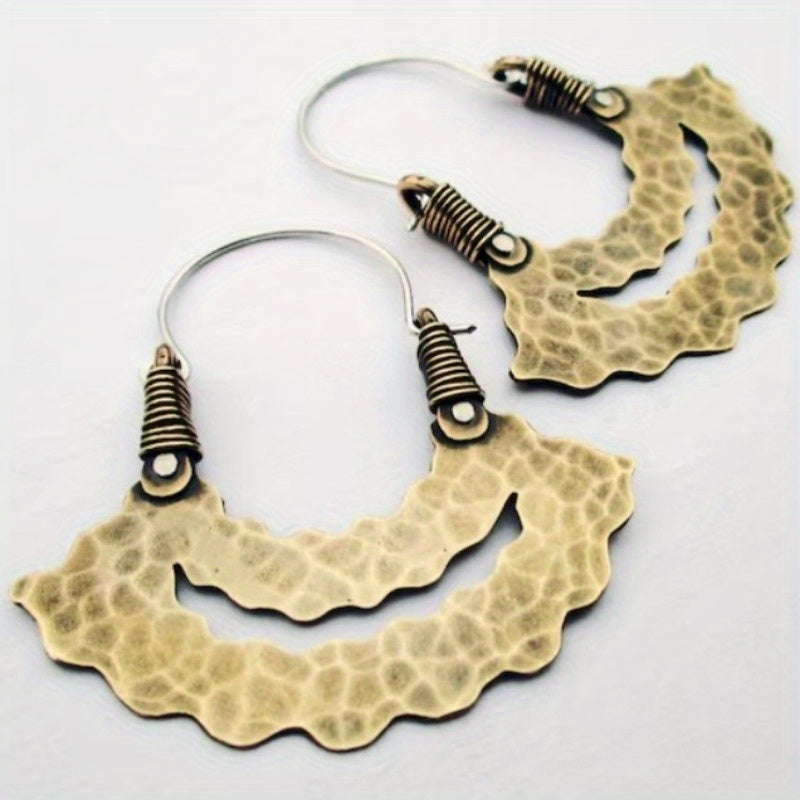Handcrafted Retro Hoop Earrings Hammered Copper KC Golden Plating Bohemian Style