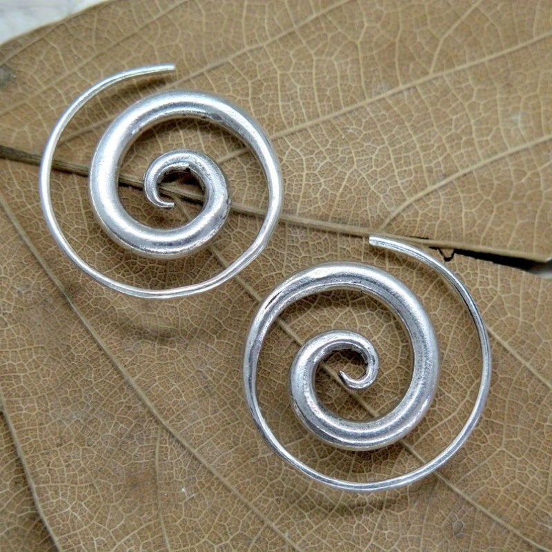These handcrafted retro tribal spiral hoop earrings feature a thick copper coil design, perfect for daily wear. They make an ideal gift for men and women, adding a touch of bohemian style to any outfit. Great Christmas gift idea!