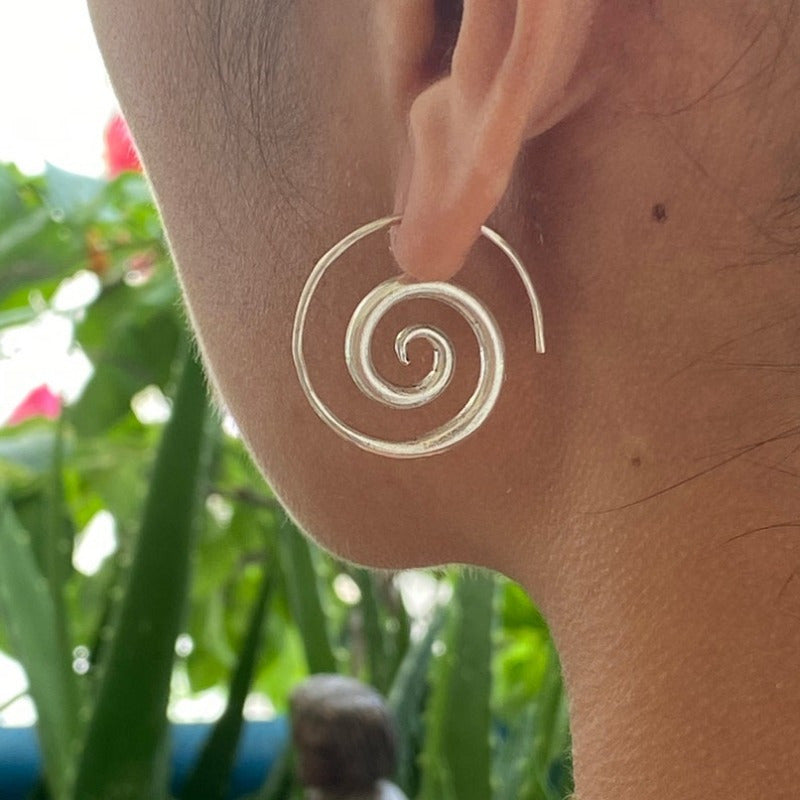 Handcrafted Retro Tribal Spiral Hoop Earrings - Copper Coil - Men Women