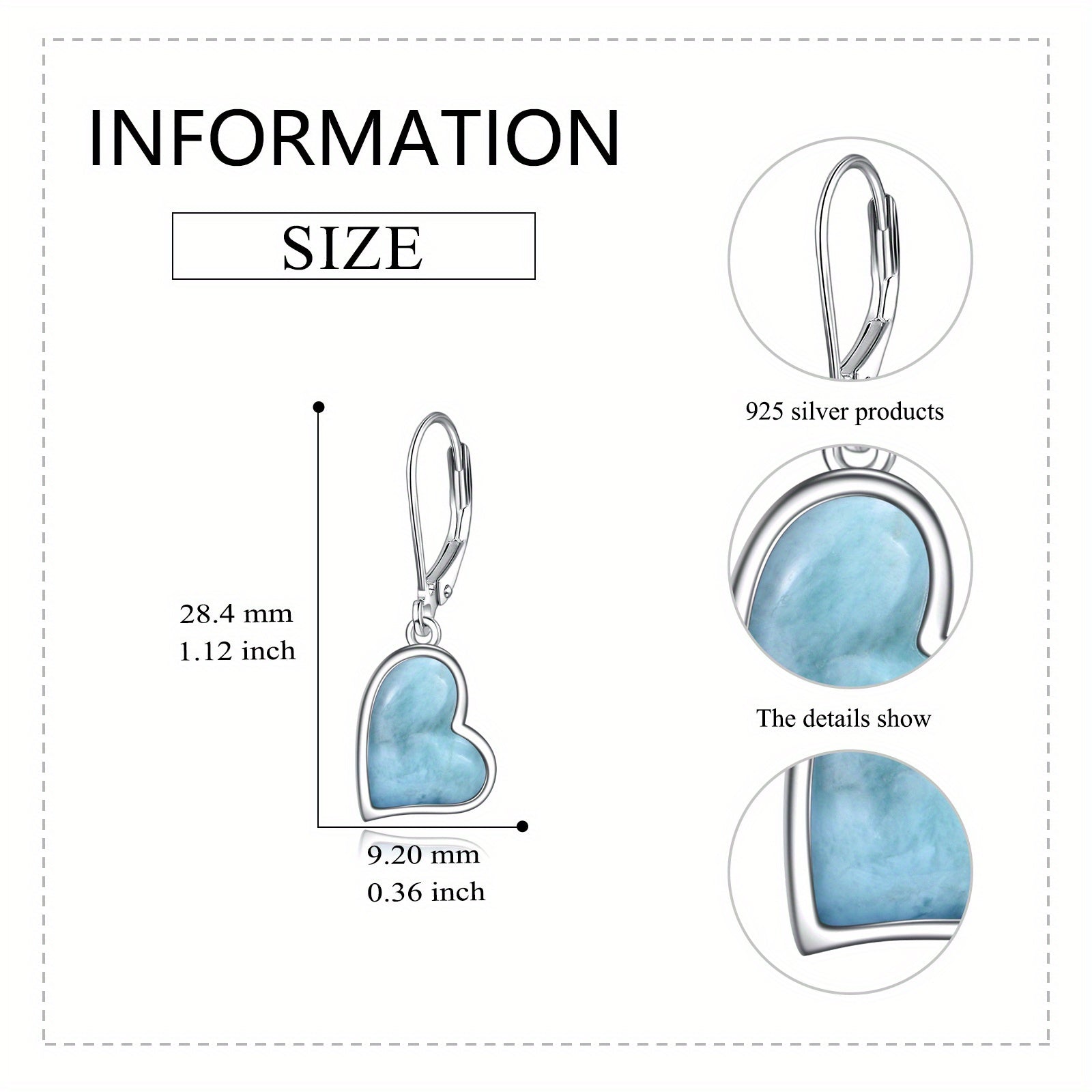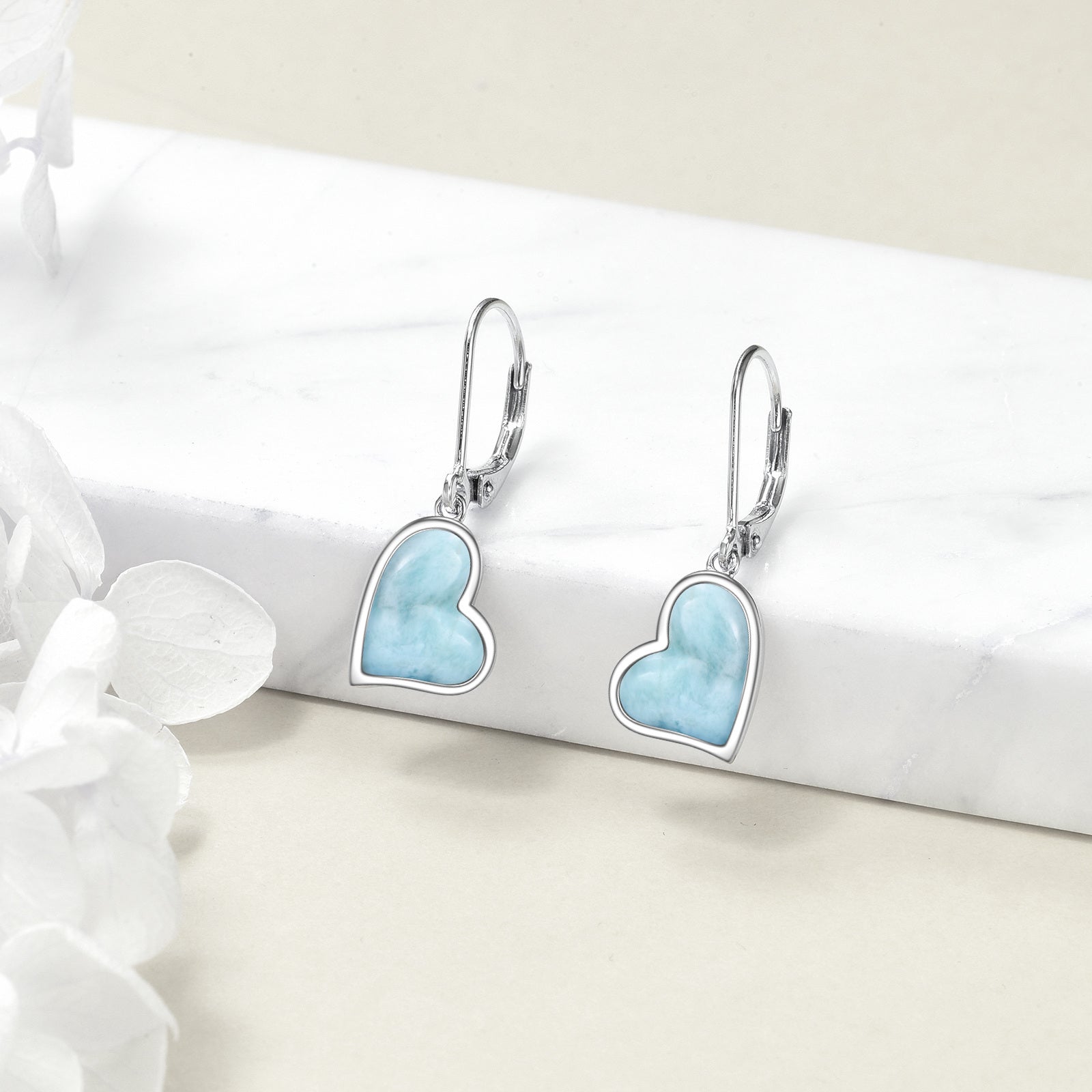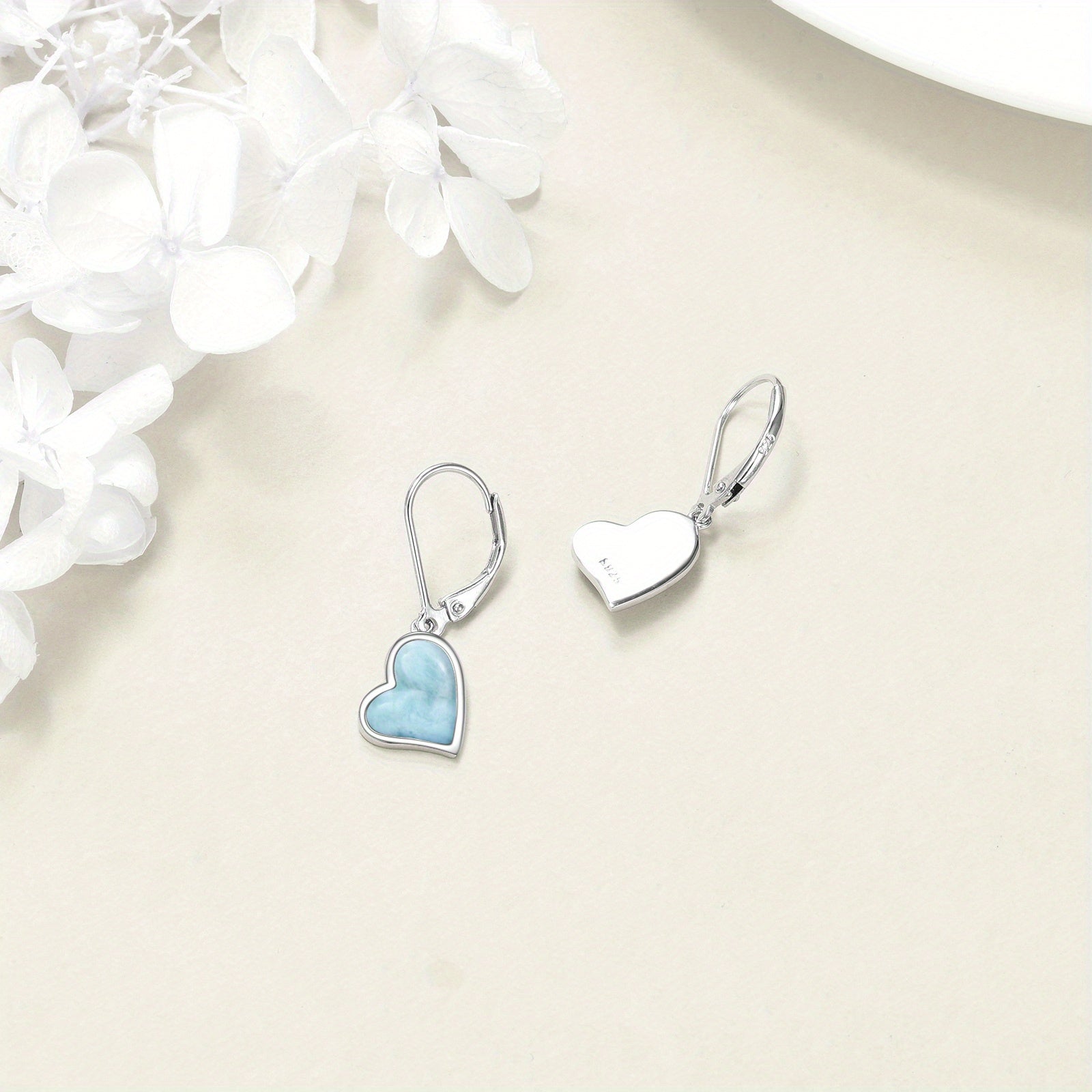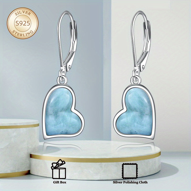 These stunning Larimar earrings feature heart-shaped stones set in 925 sterling silver. Perfect for mothers, wives, or any special woman in your life.