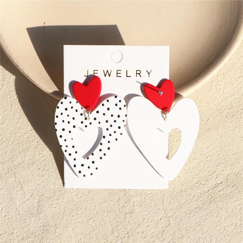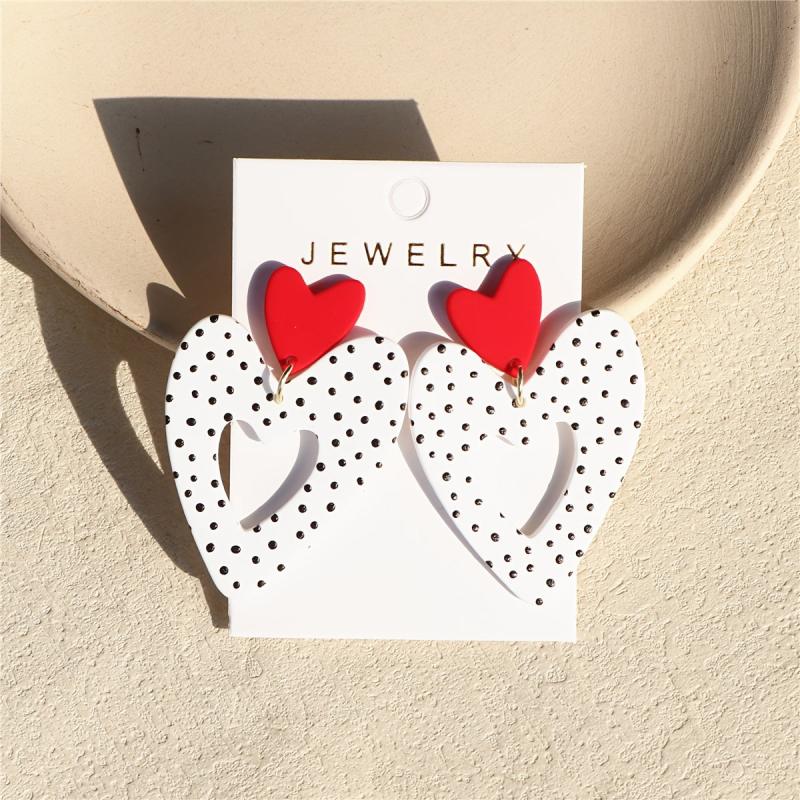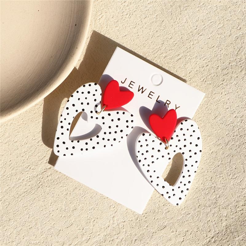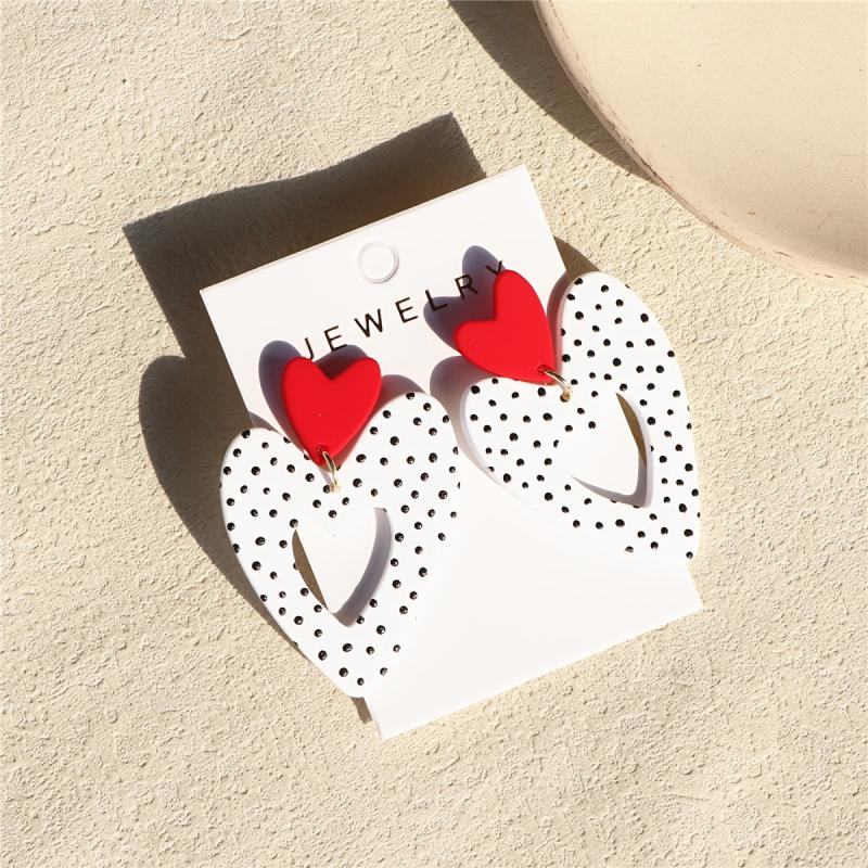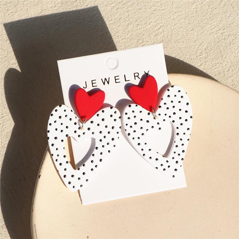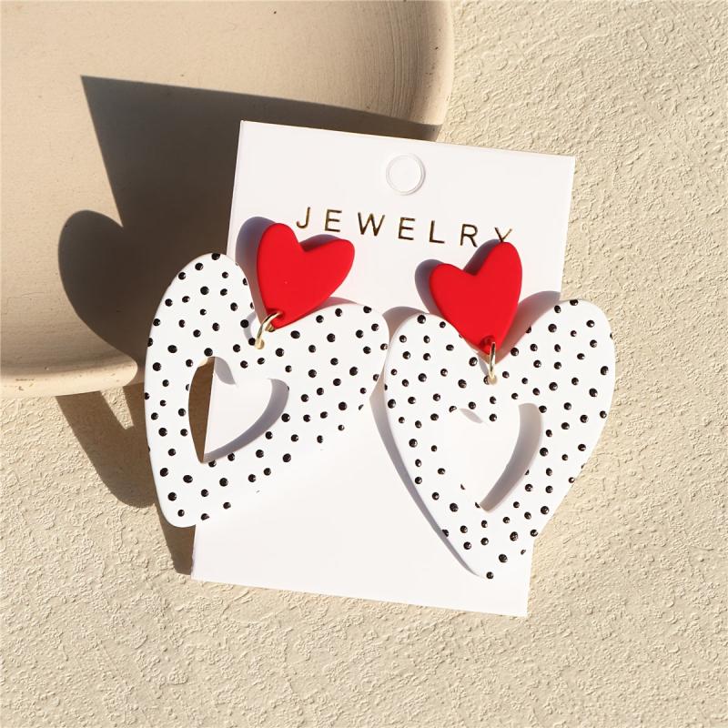Heart Shaped Acrylic Earrings for Women Red & Polka Dot Romantic