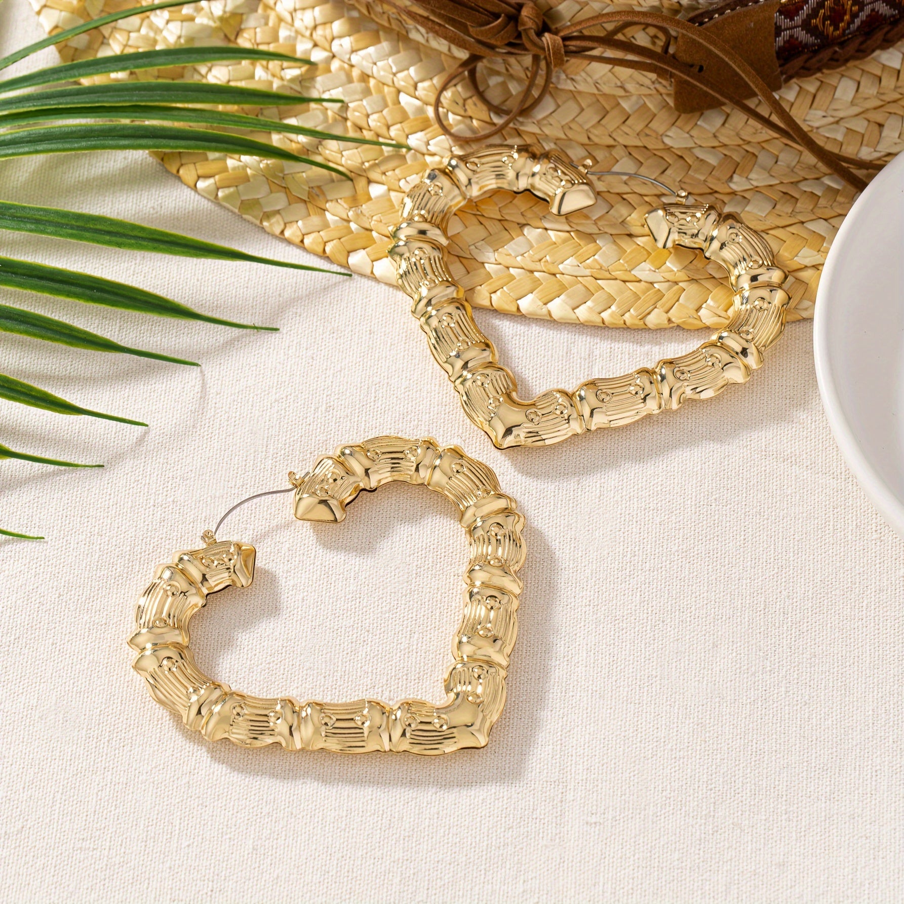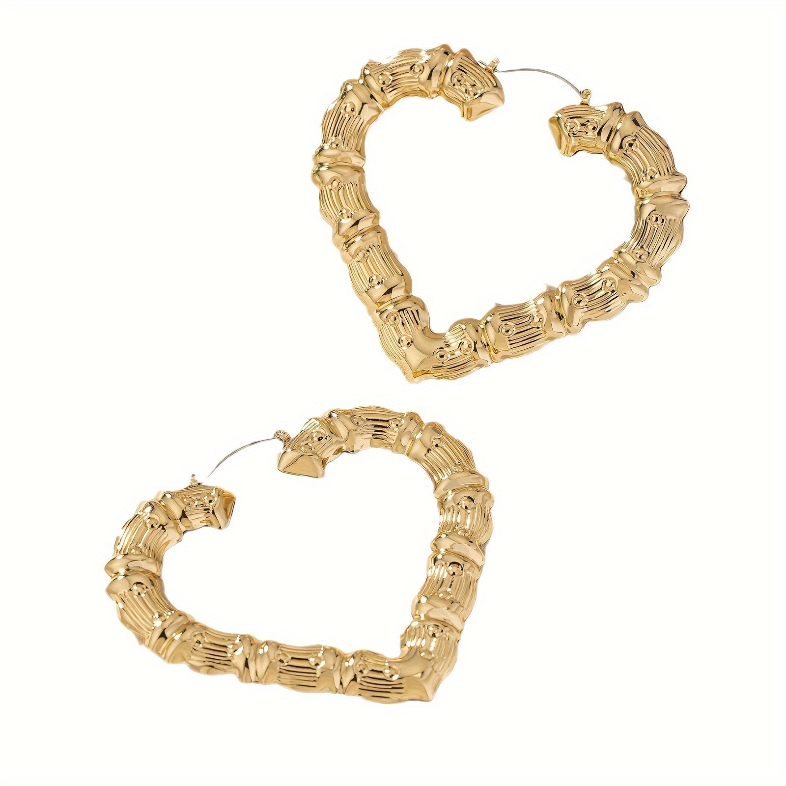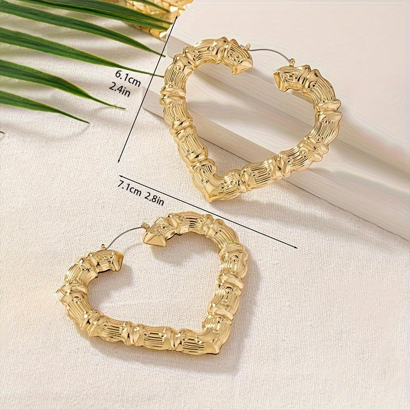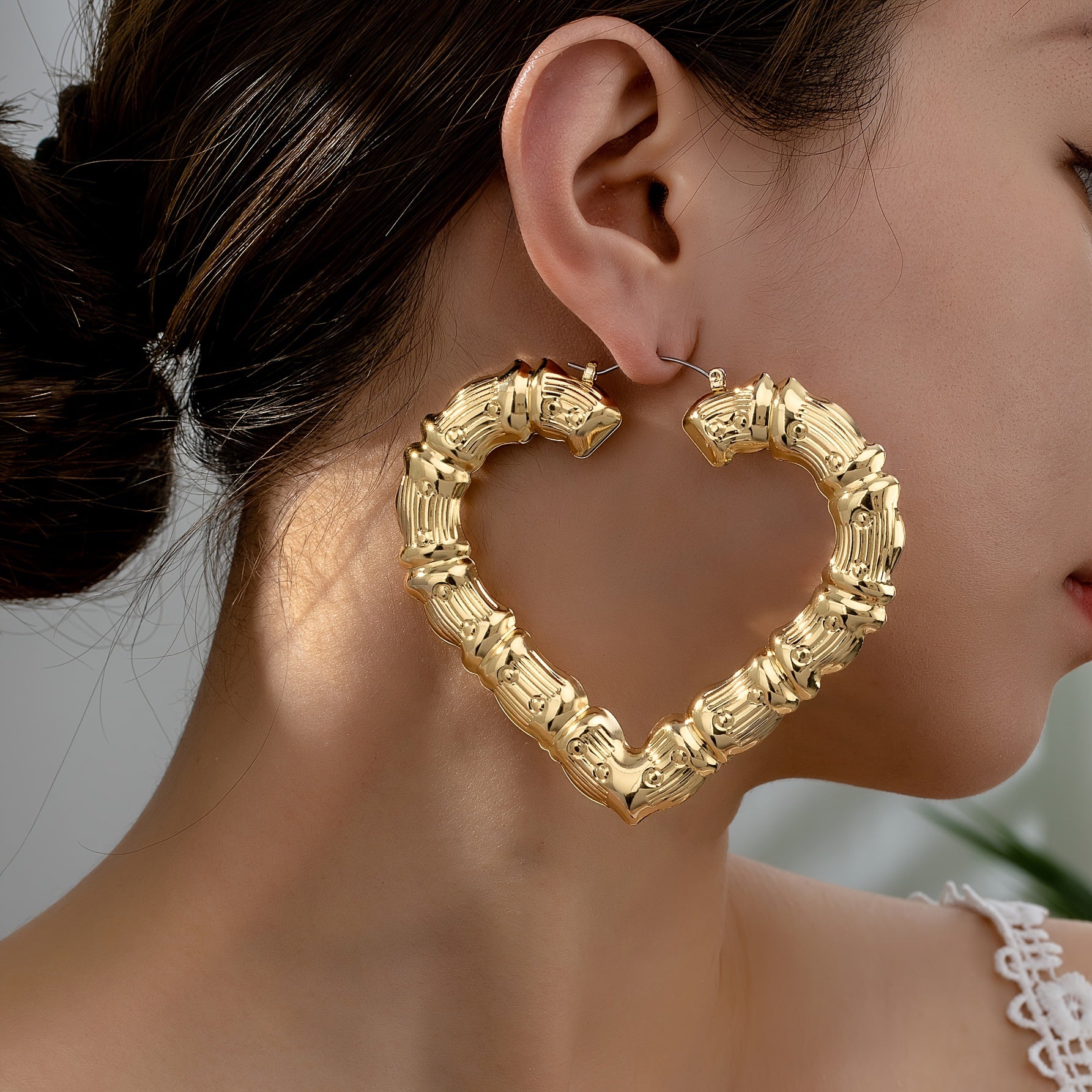 Add a touch of vintage and sexy style to your look with these heart-shaped hollow metal earrings featuring a bamboo pattern. Made of iron material, they are perfect for daily wear and music occasions.