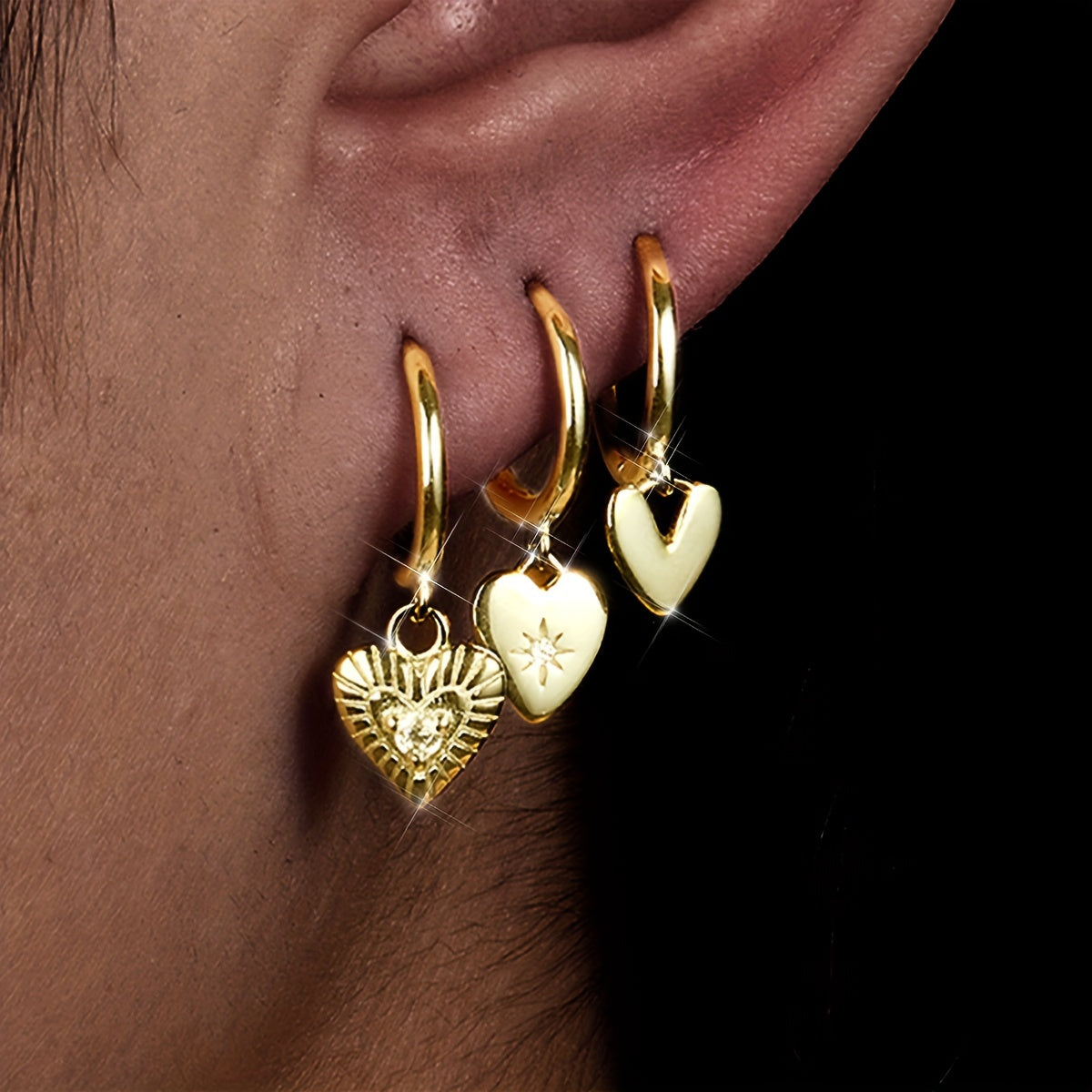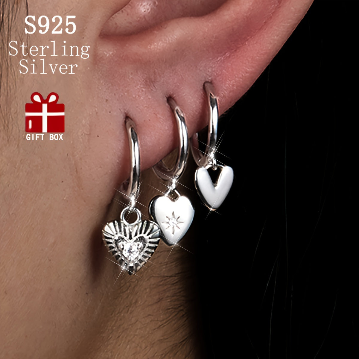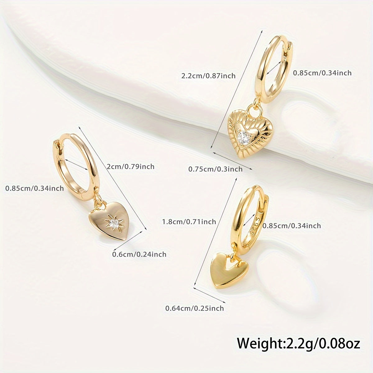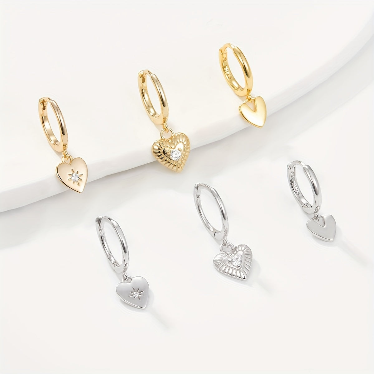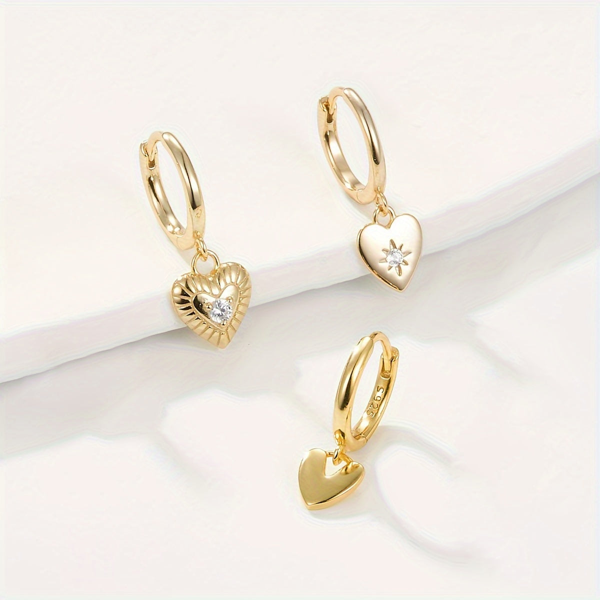 Elegant set of 3 heart shaped microinset Zirconia earrings crafted in 925 silver. Perfect for daily wear or parties.