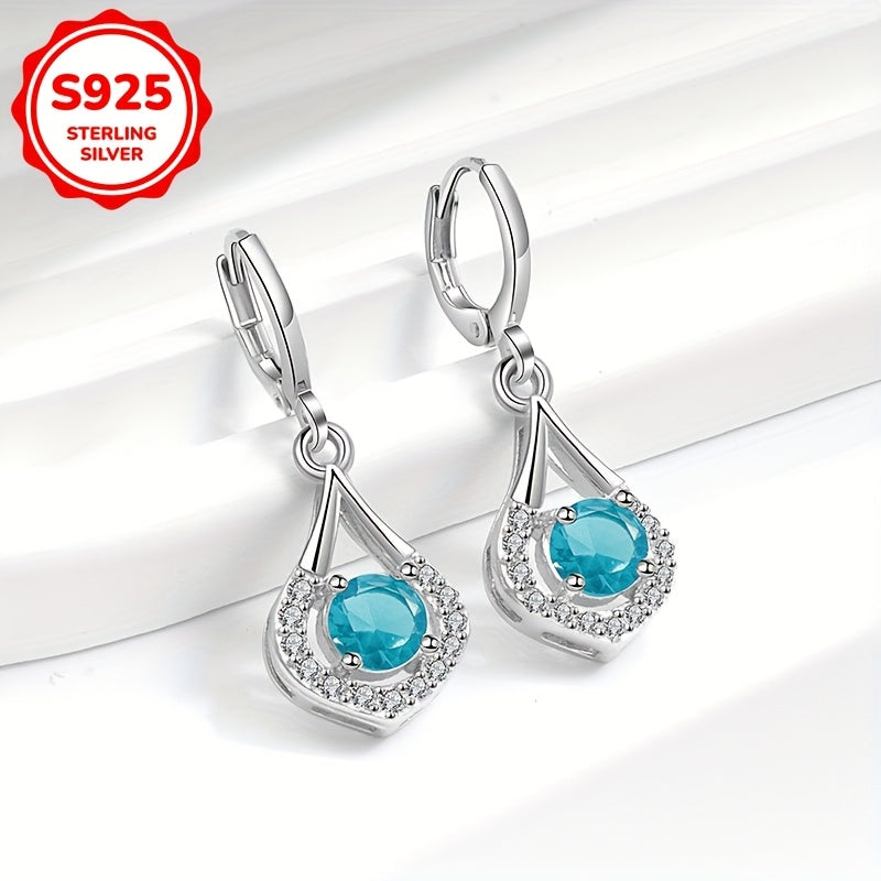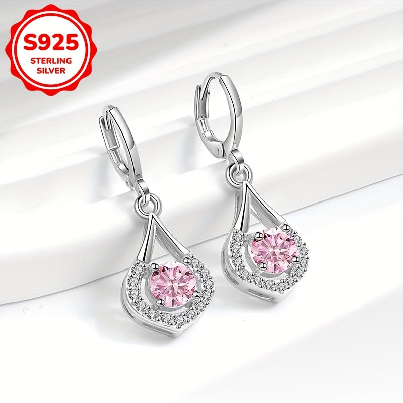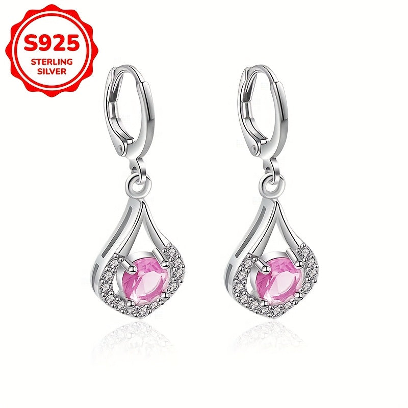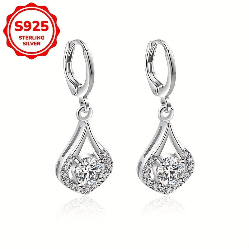 Heart-shaped Zirconia Pendant Earrings, 925 Silvery, 2.6g