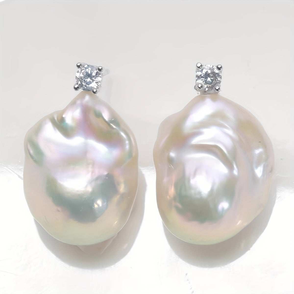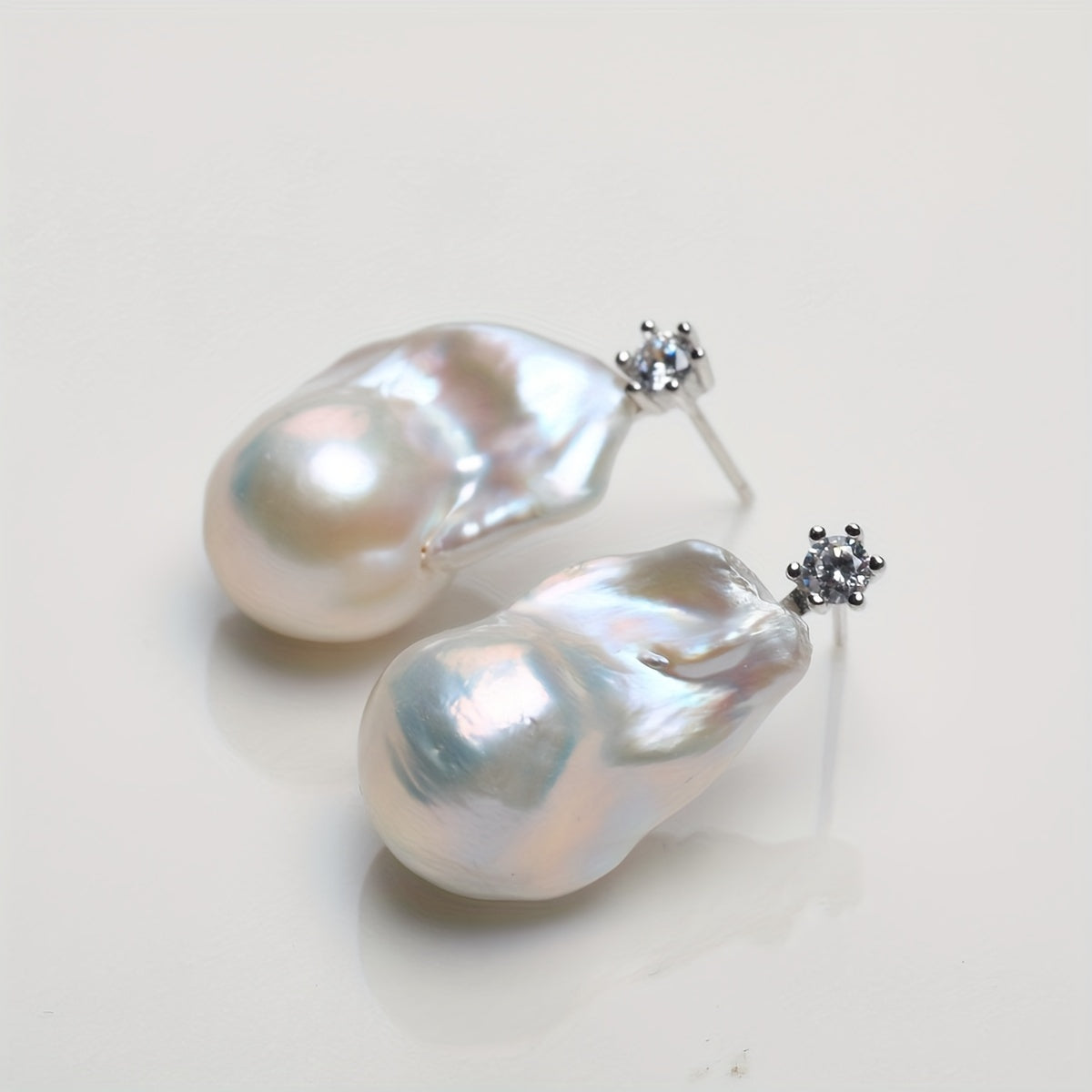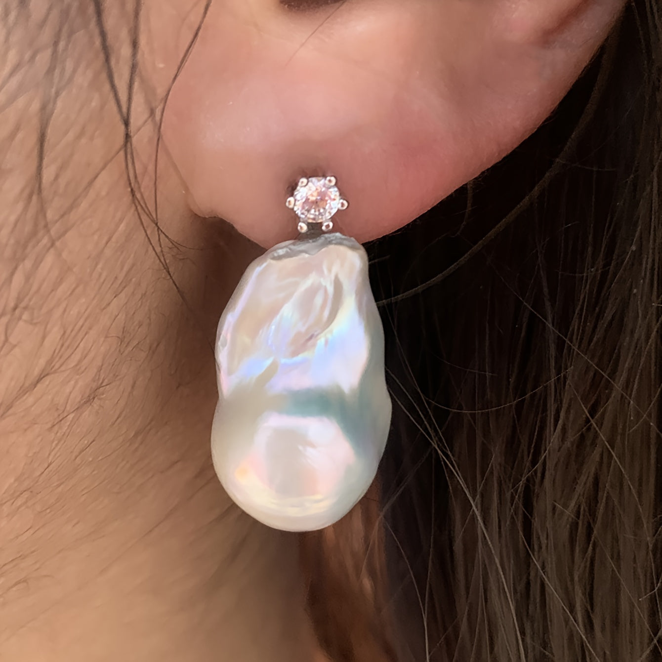 High End Queen Style Zirconia Inlaid Freshwater Baroque Earrings