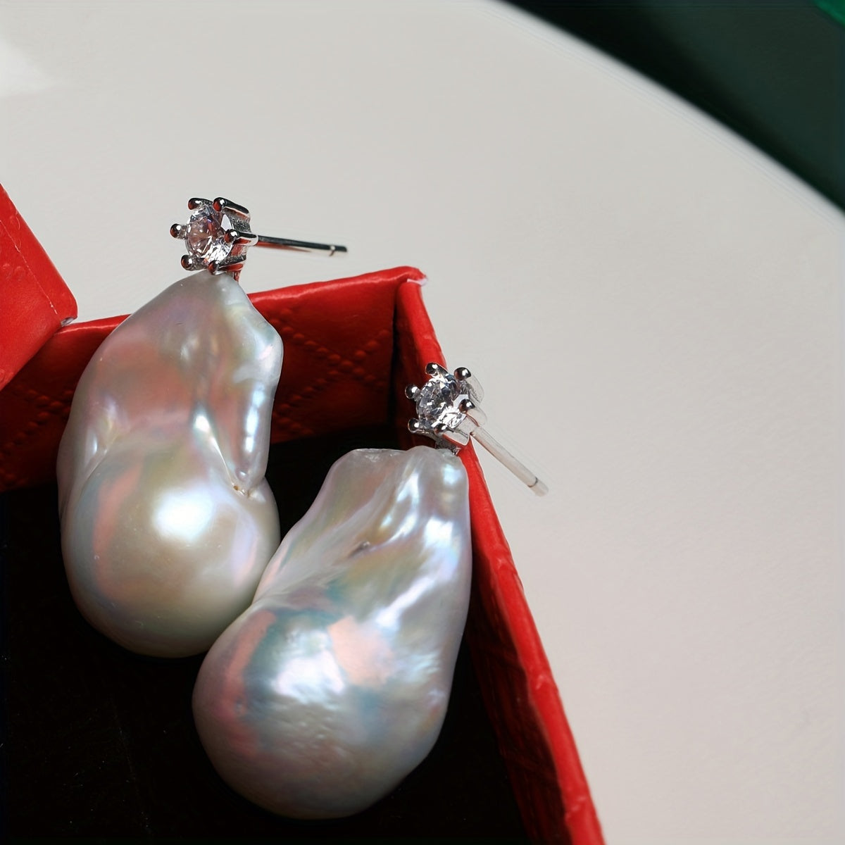 Elegant and luxurious earrings featuring natural irregular shapes with zirconia inlay. Made with high-quality S925 pure silver. Perfect gift for women.