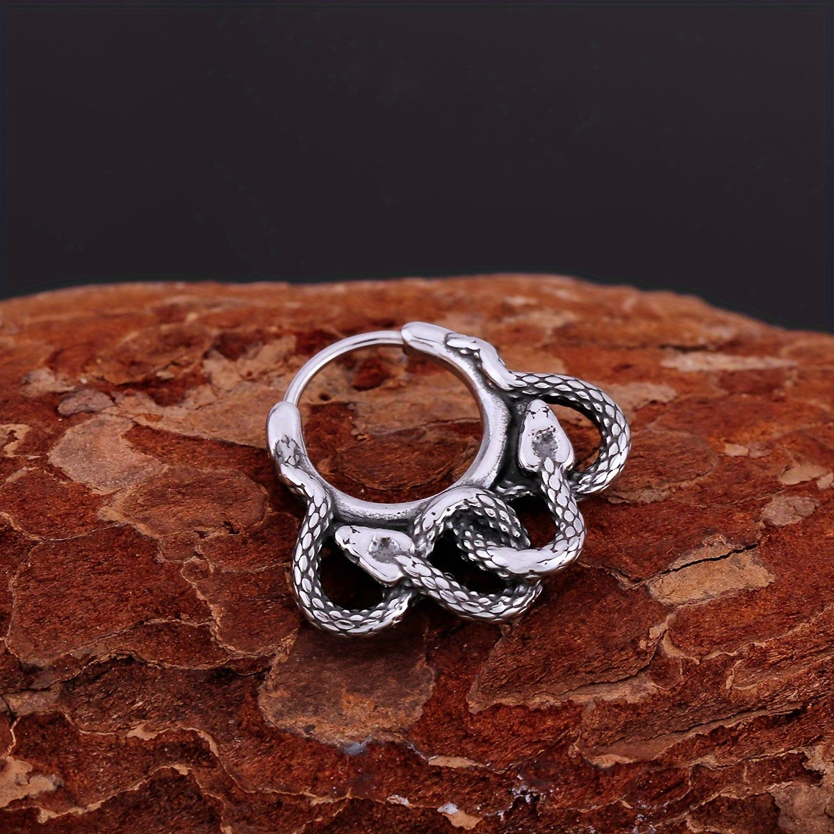 Hip Hop Circle Snake Earrings Men's Stainless Steel Gift