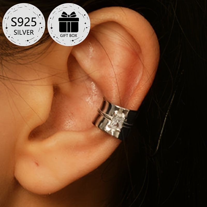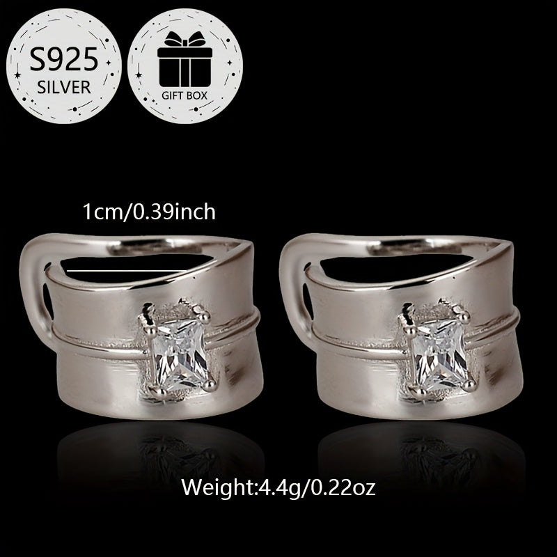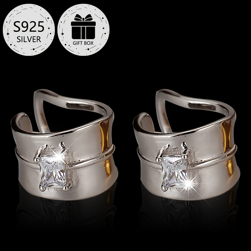 These geometric clip-on earrings are crafted from 925 silver with CZ stones, making them perfect for daily wear, parties, and Christmas celebrations.