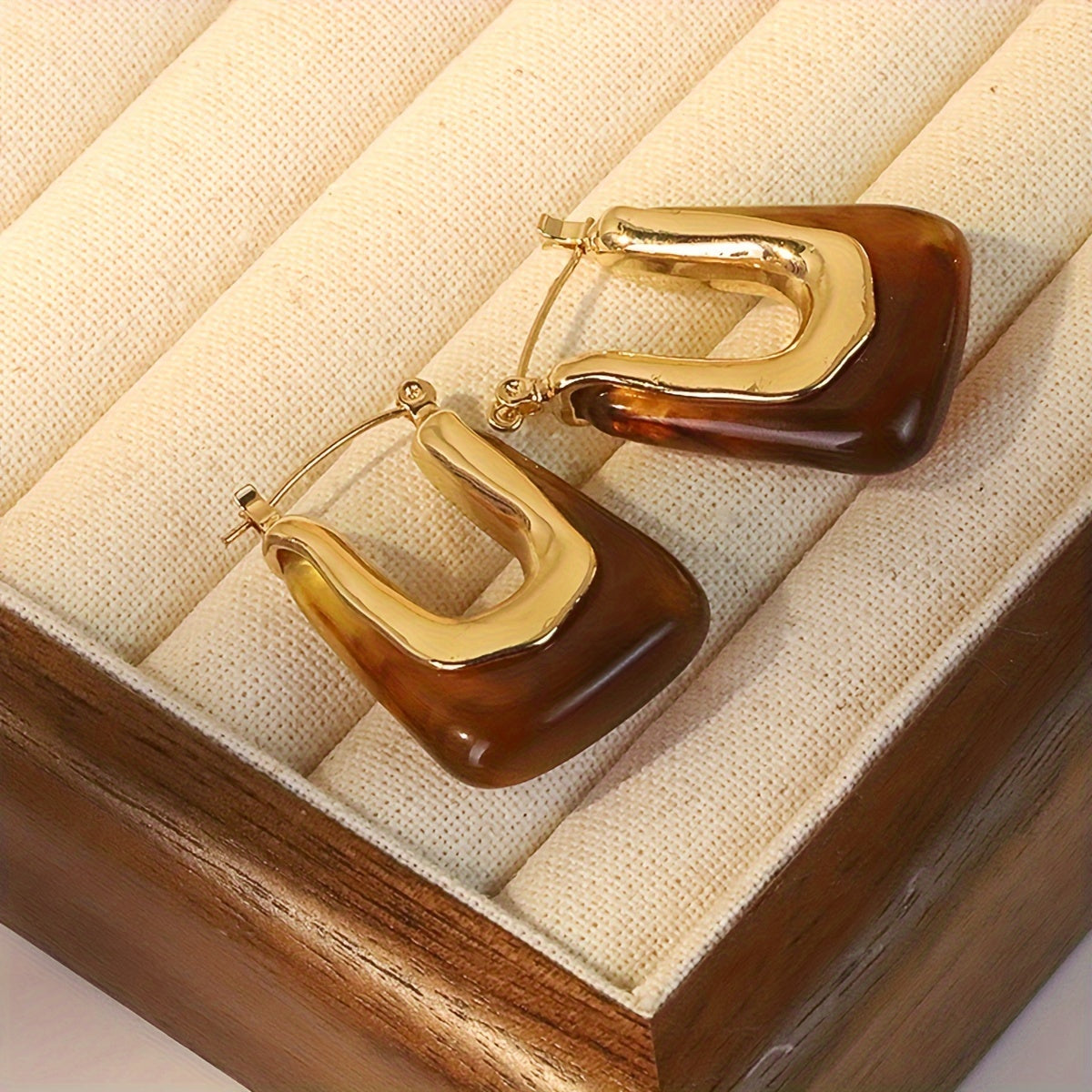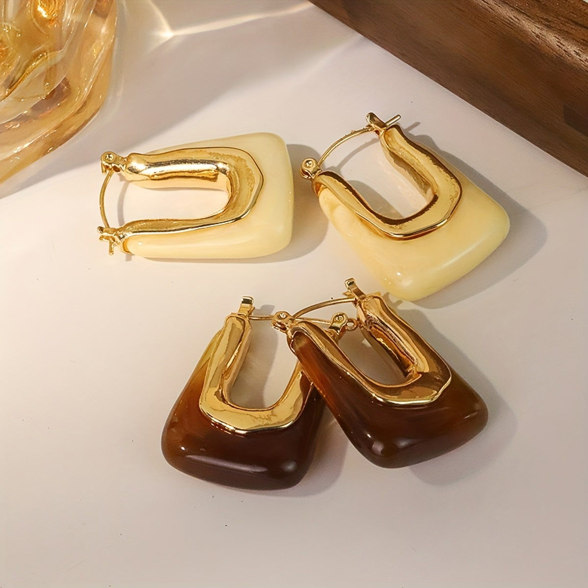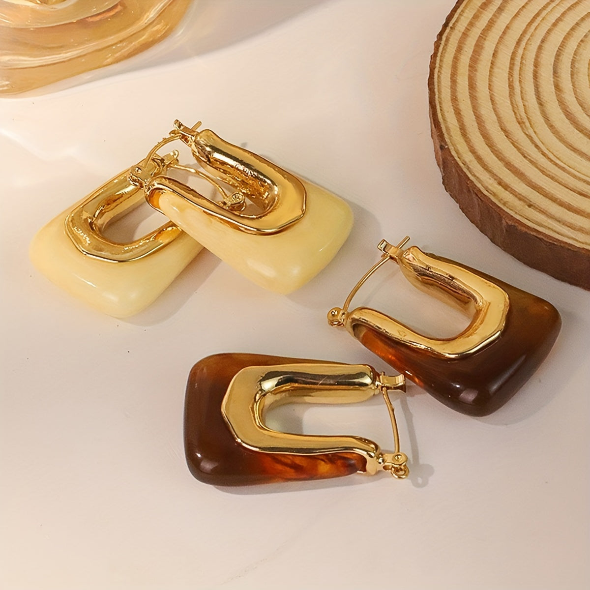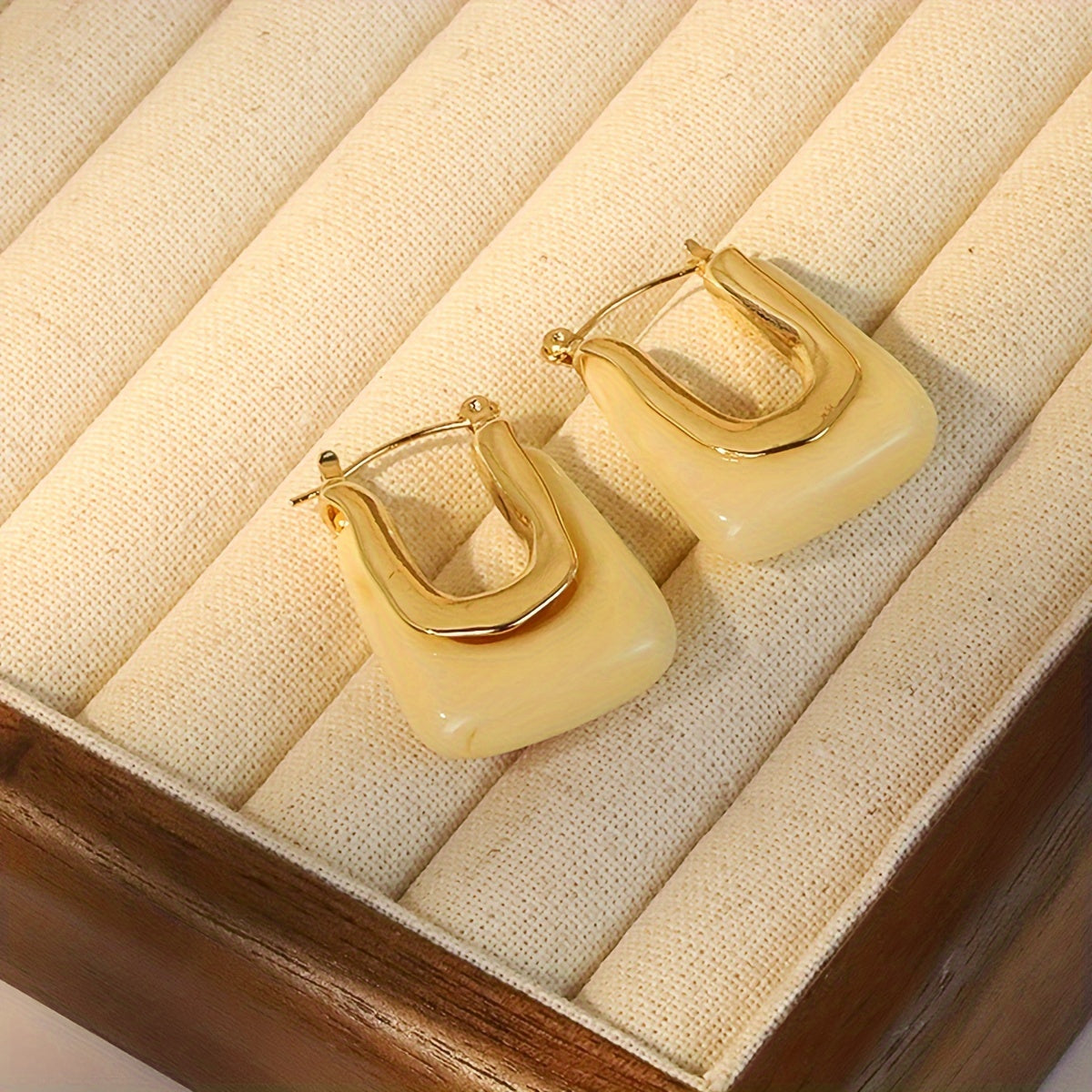 Elegant vintage style U shaped hoop earrings crafted from hypoallergenic resin. Delicate and dainty, perfect for parties.