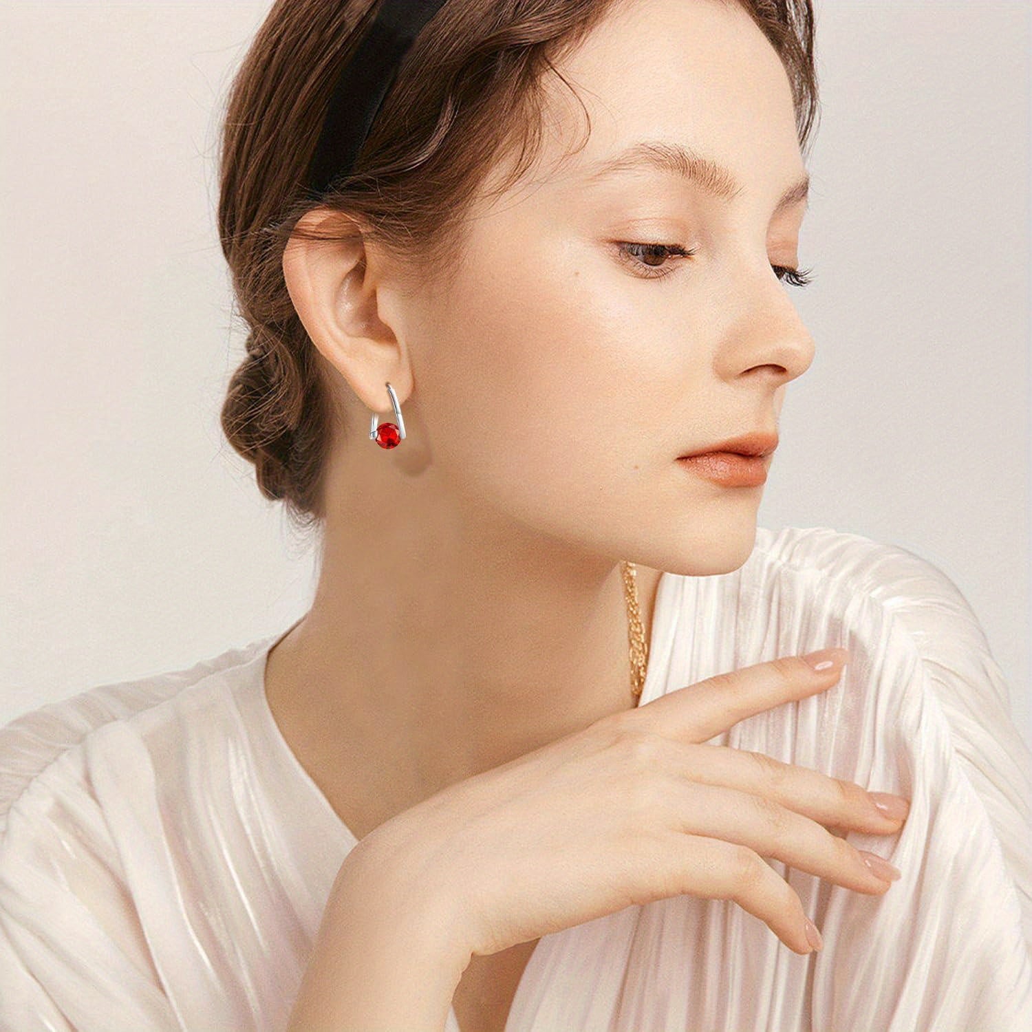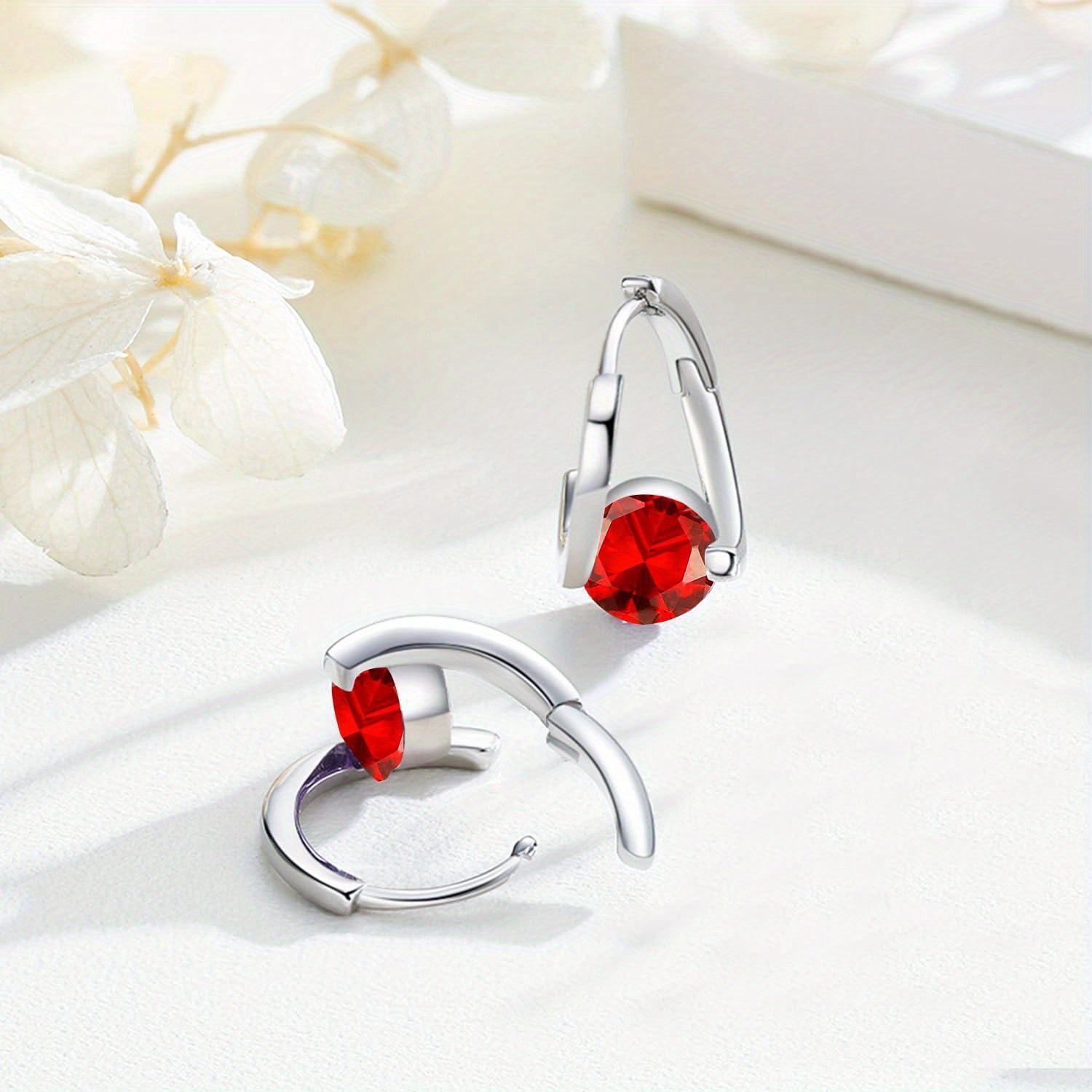 Add a touch of elegance to your look with these July birthstone hoop earrings crafted in 925 sterling silver. Perfect for sensitive ears, these earrings feature a stunning ruby red stone.