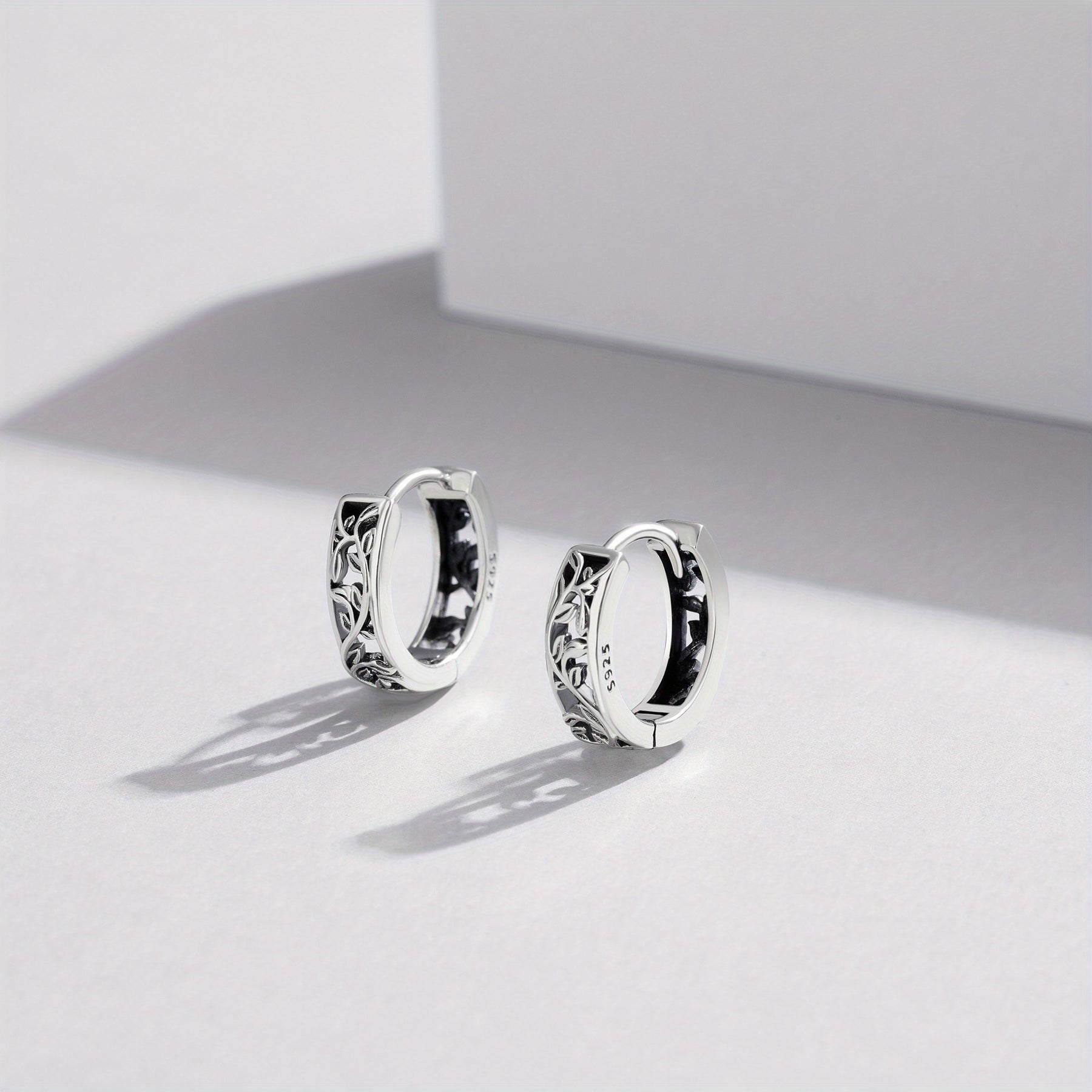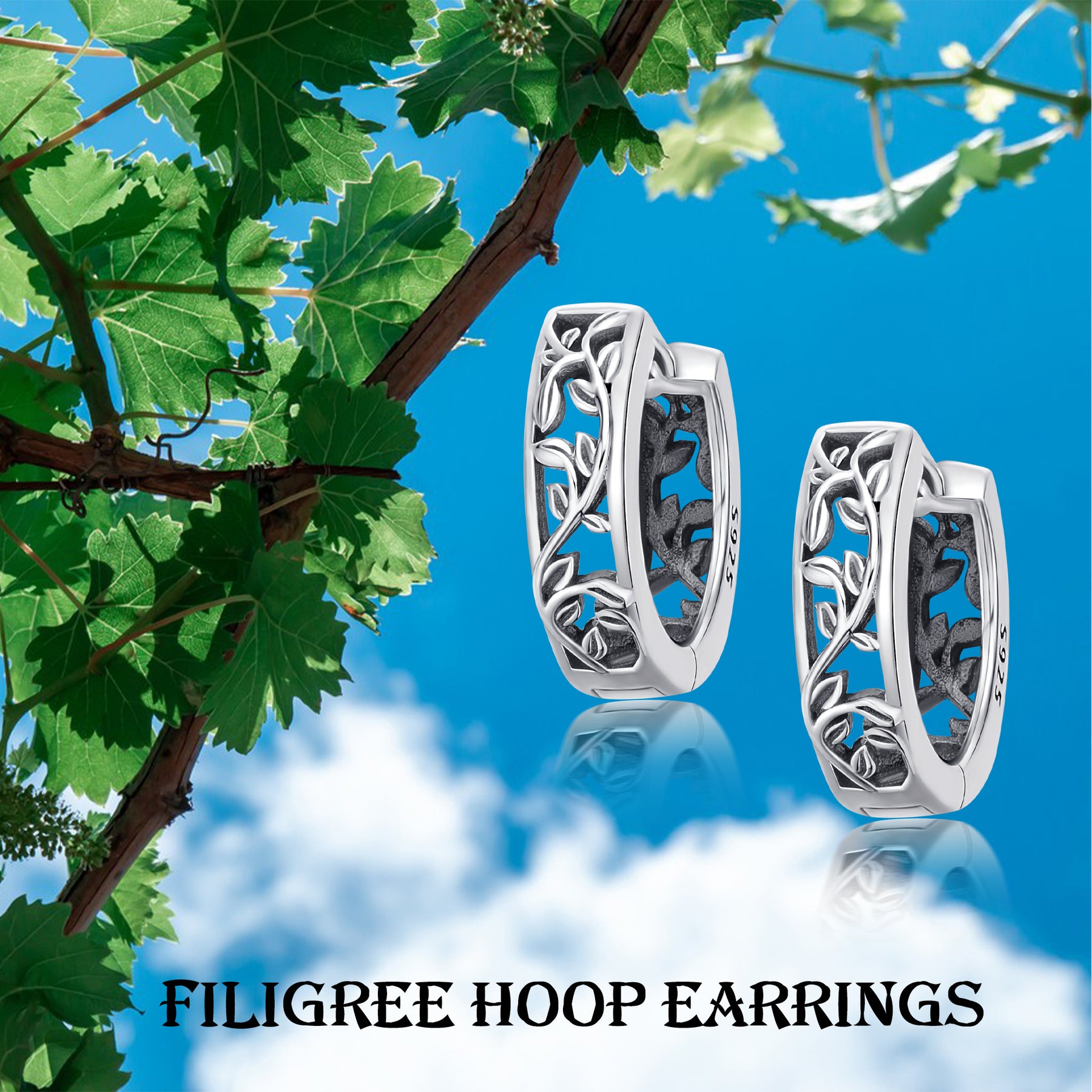 Leaf Earrings Sterling Silver Vintage Filigree Hoop Earrings