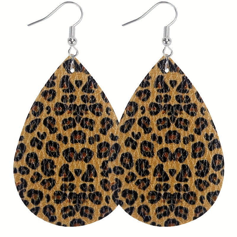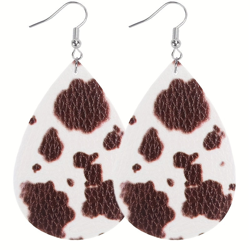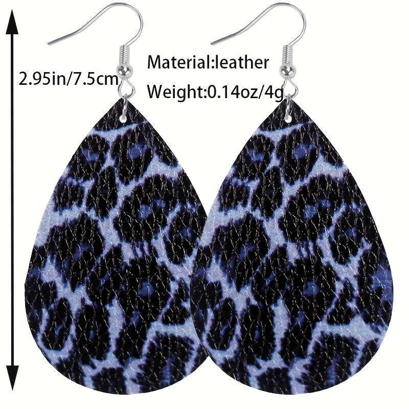 This set includes 8 pairs of earrings with leopard and cow pattern design. Made from PU leather, these earrings are a perfect gift for females who love retro minimalist style jewelry.
