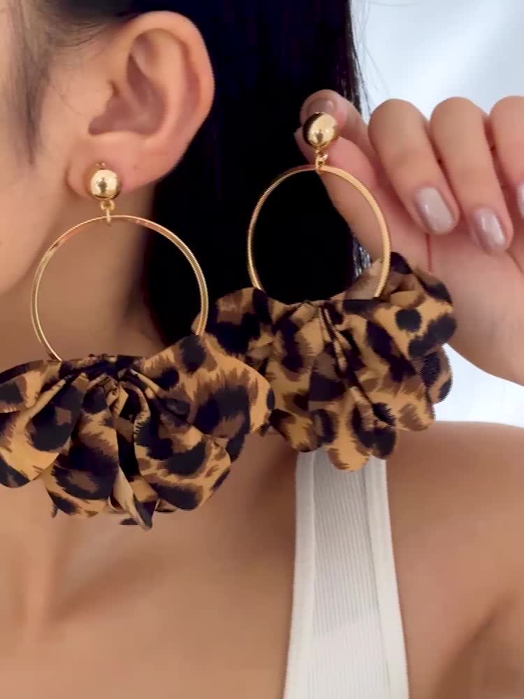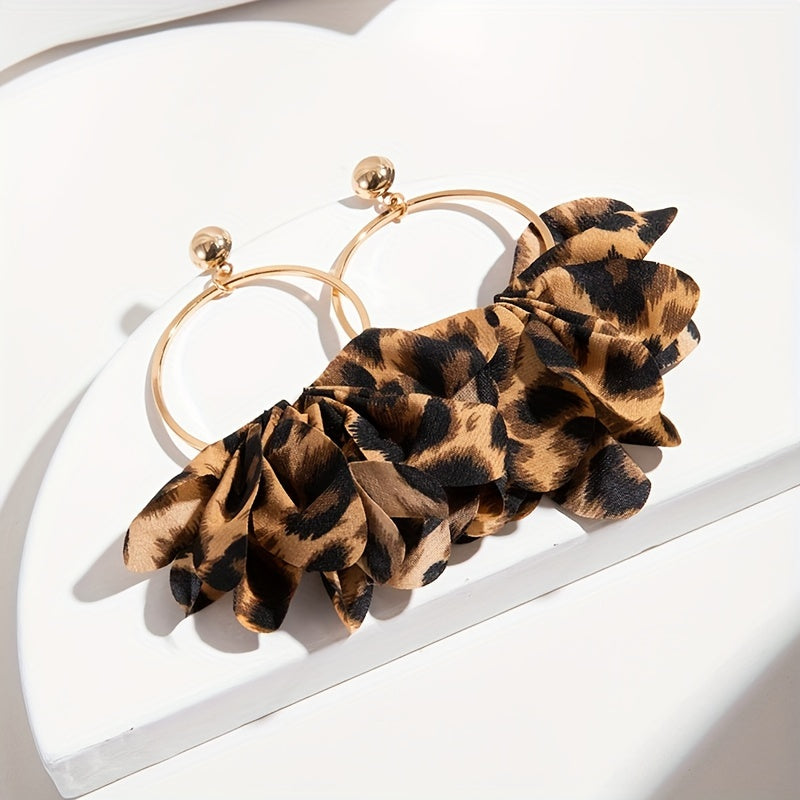 These leopard print polyester earrings are perfect for adding a fun touch to your outfit. They are great for parties and can be worn throughout all seasons.