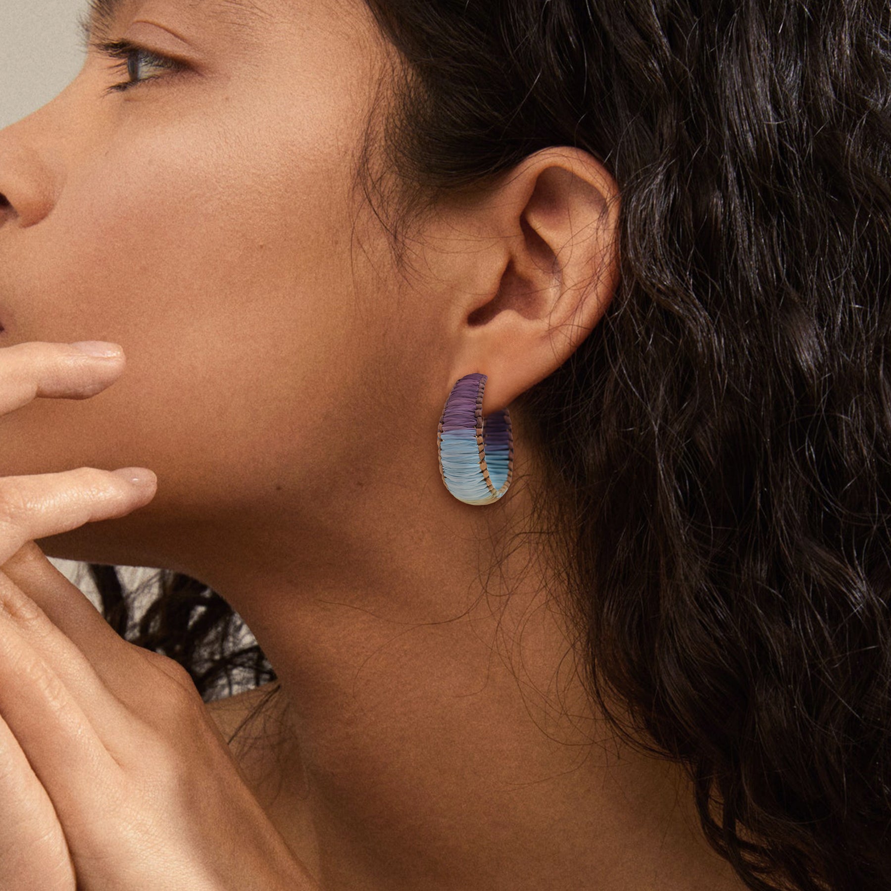 Elevate your style with these woven blocked stud earrings crafted with a retro purple ombre design. Perfect for daily wear, parties, holidays, and as an elegant party accessory.