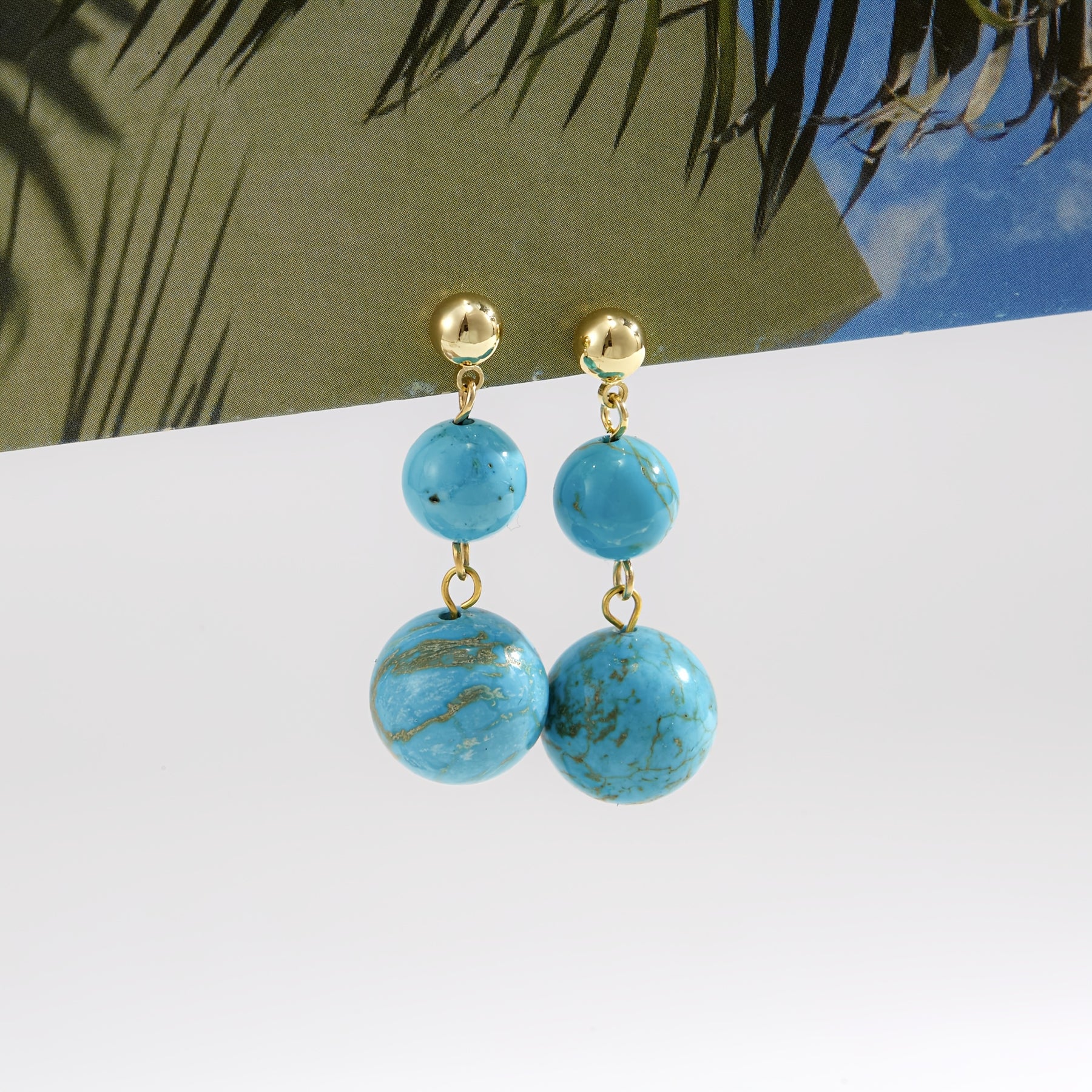 Add a touch of retro charm to your outfit with these stylish earrings. Hypoallergenic copper construction with synthetic turquoise beads for a unique look. Perfect for parties, banquets, and casual attire.