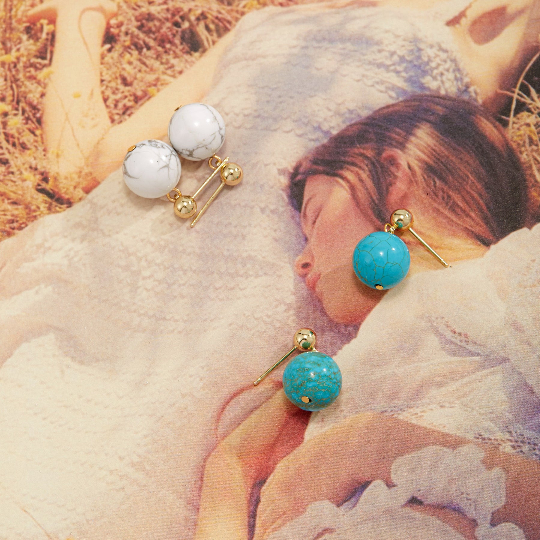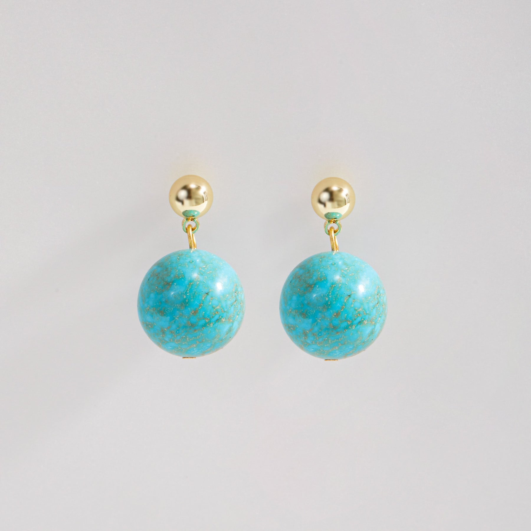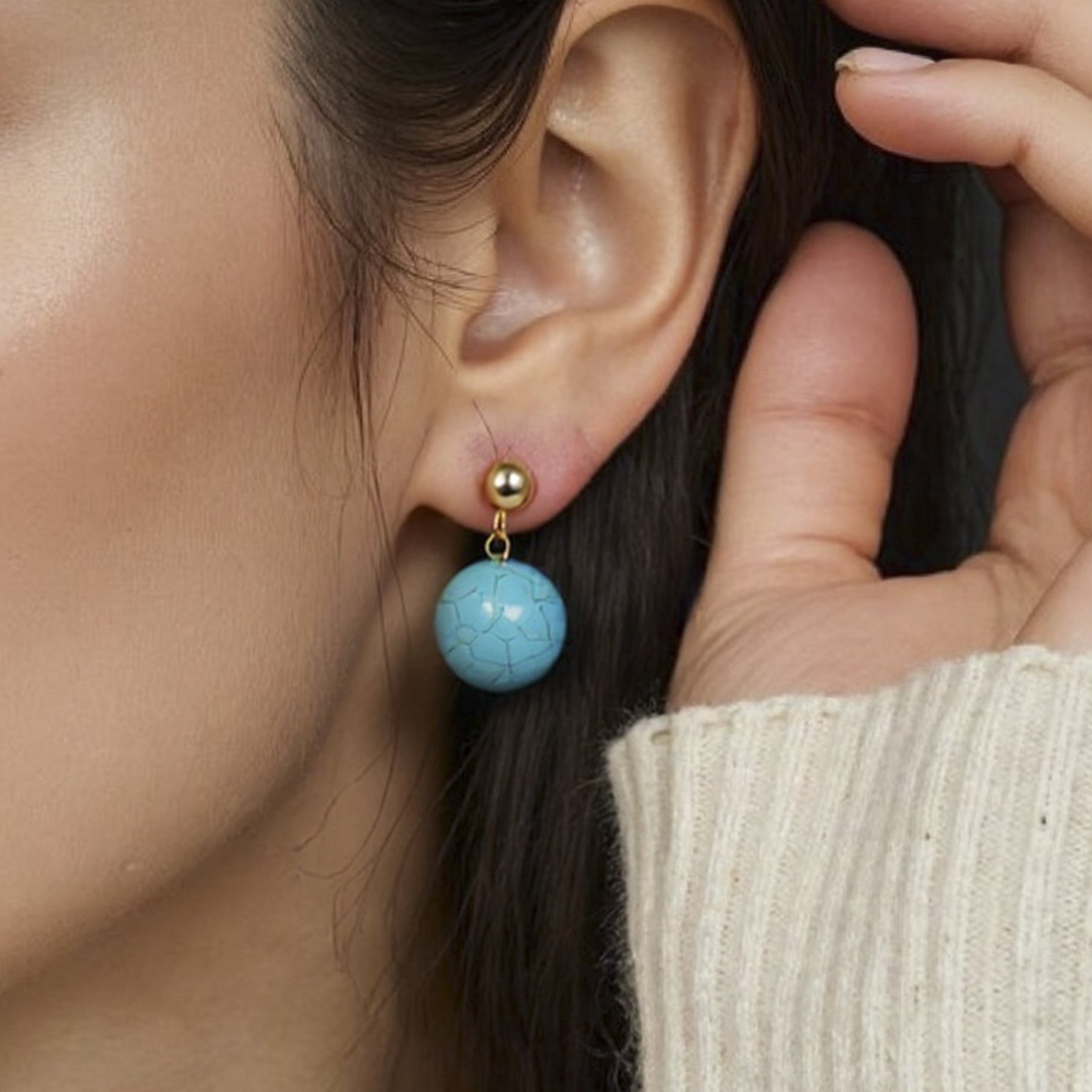 These earrings are made of hypoallergenic copper with UV plated synthetic turquoise bead pendant. Perfect for daily wear or vacation occasions.