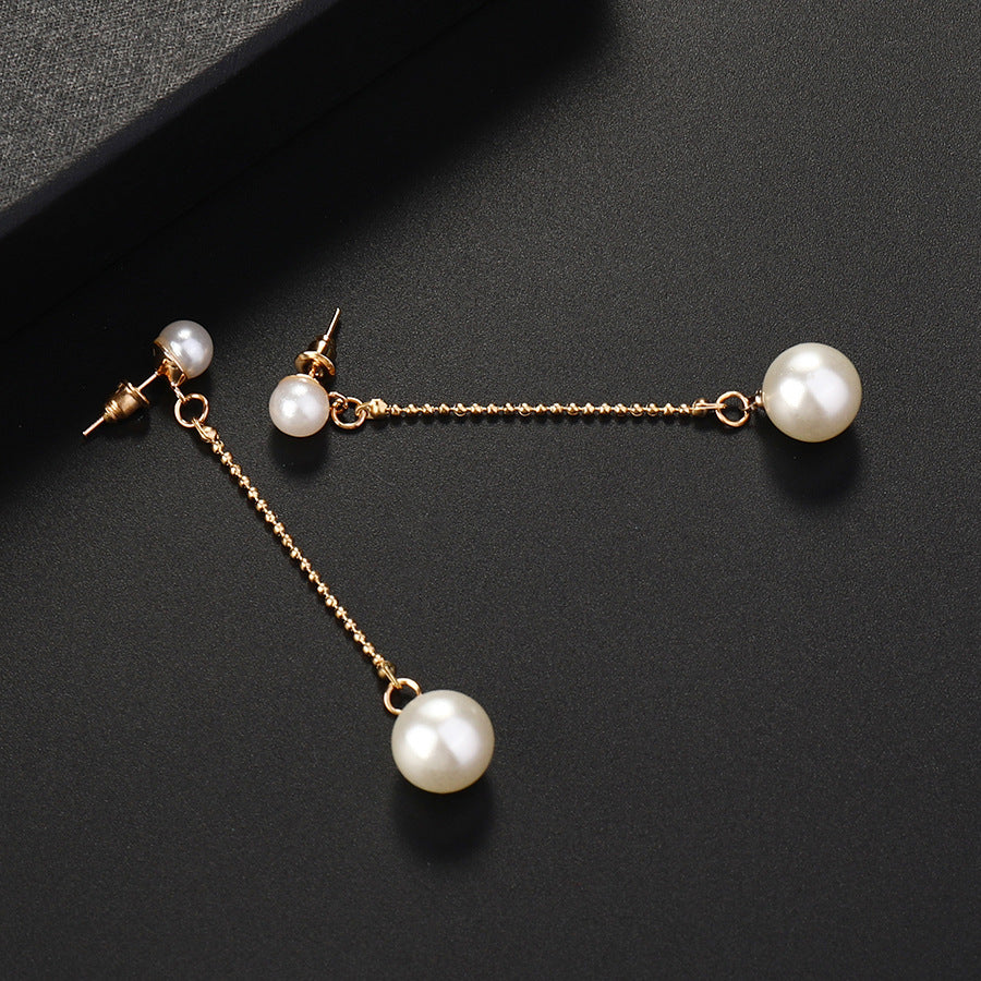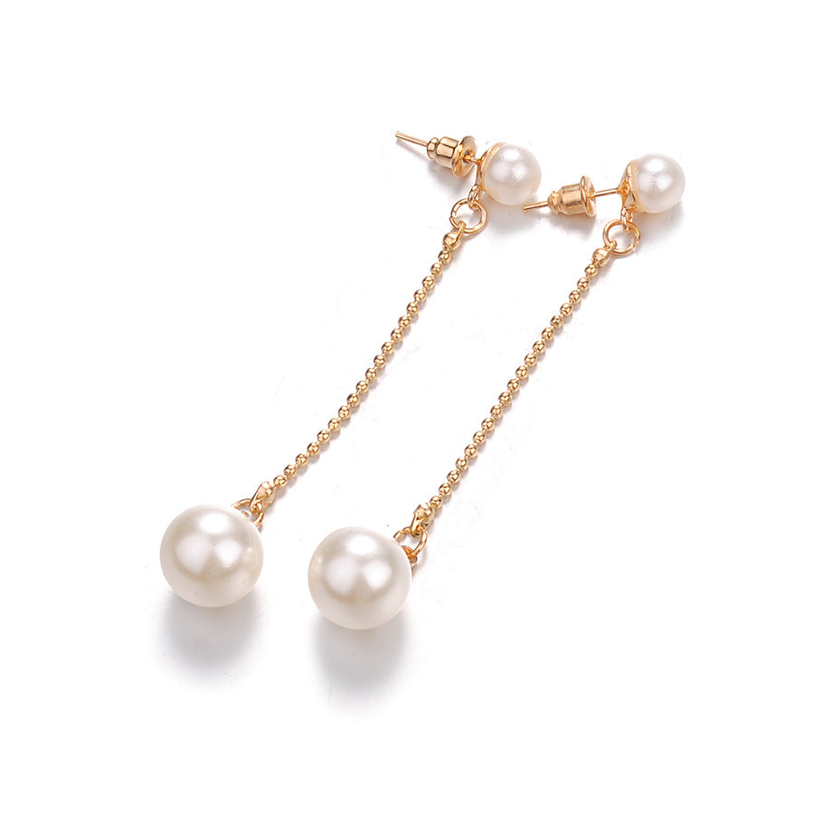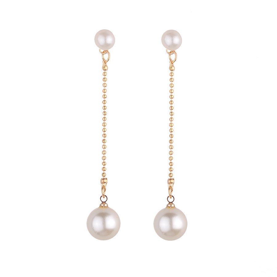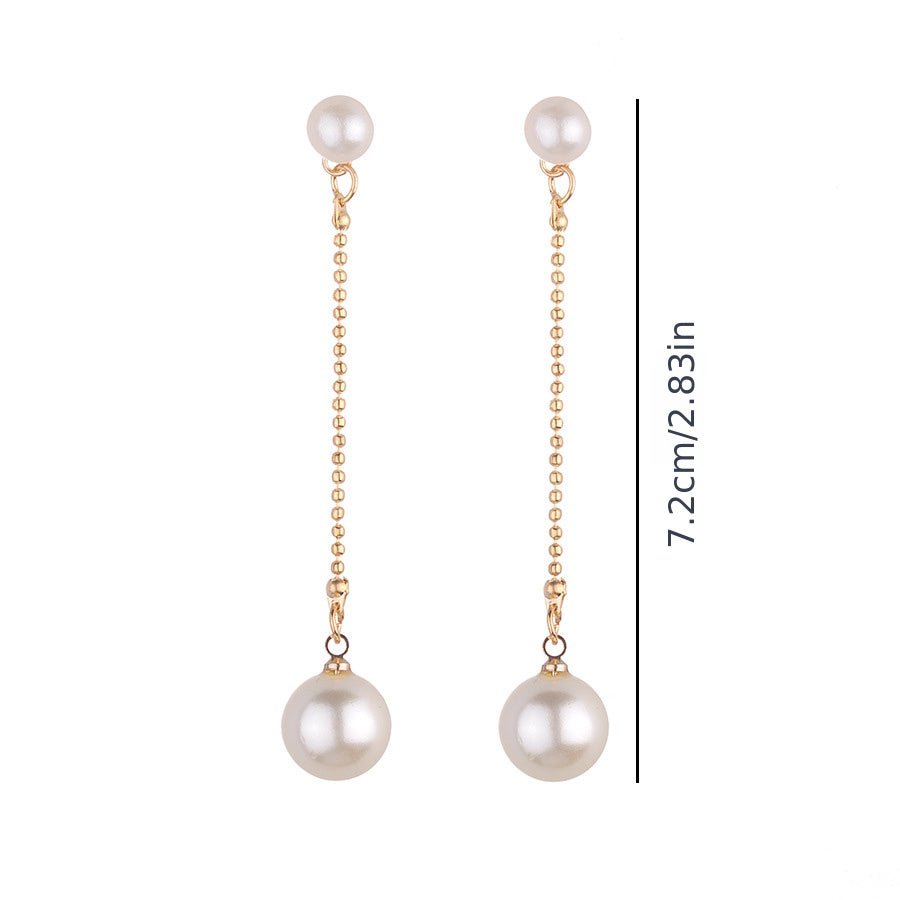 Elegant long dangle drop earrings featuring faux pearls, perfect for women's fashion.
