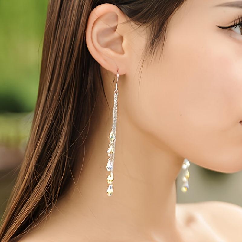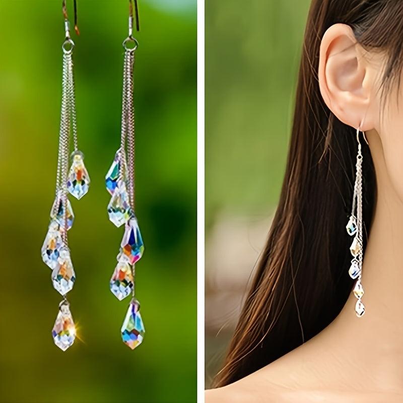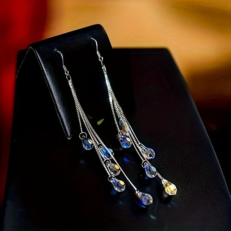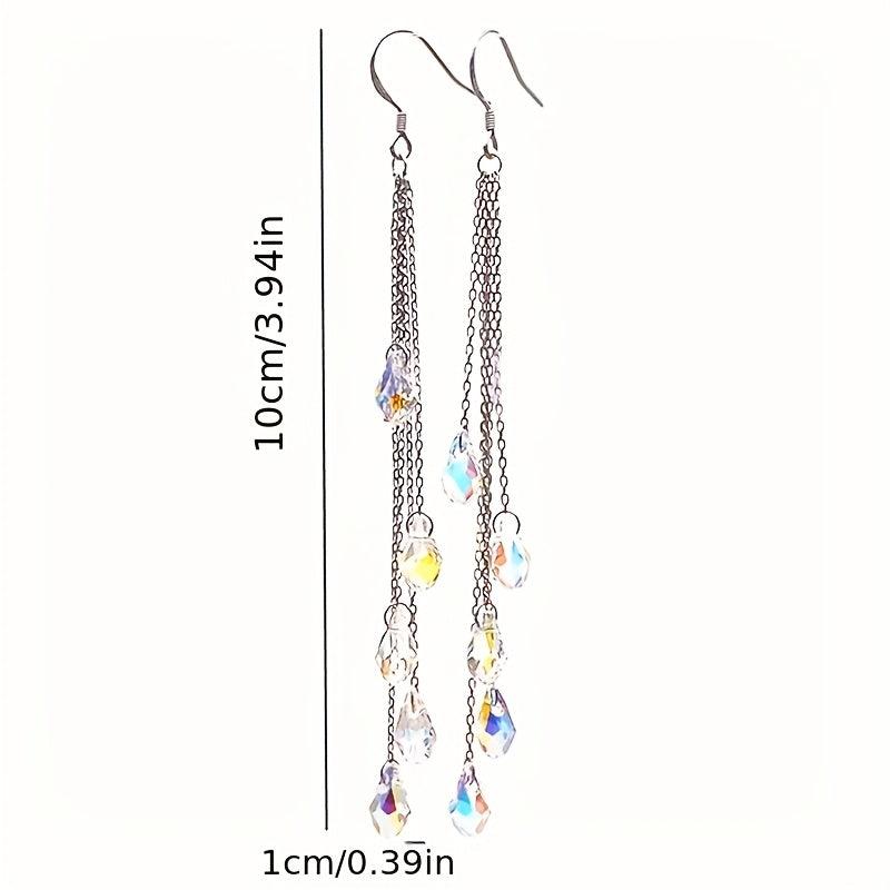 Long Tassel Earrings for Women Crystal Stud Tassel Earrings