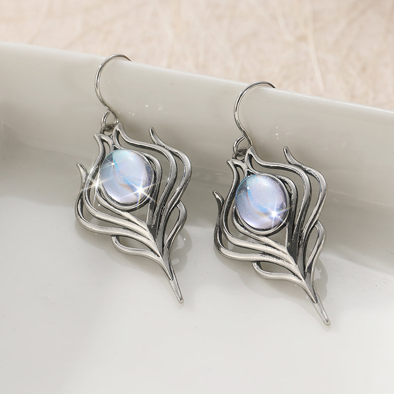 Lotus Flower Earrings Copper Dangle Jewelry with Resin Inlay Vintage Style