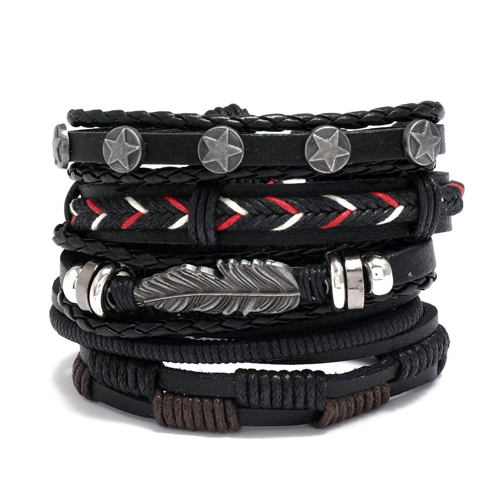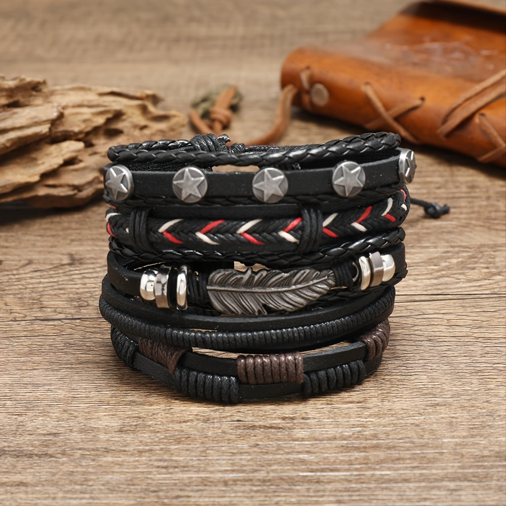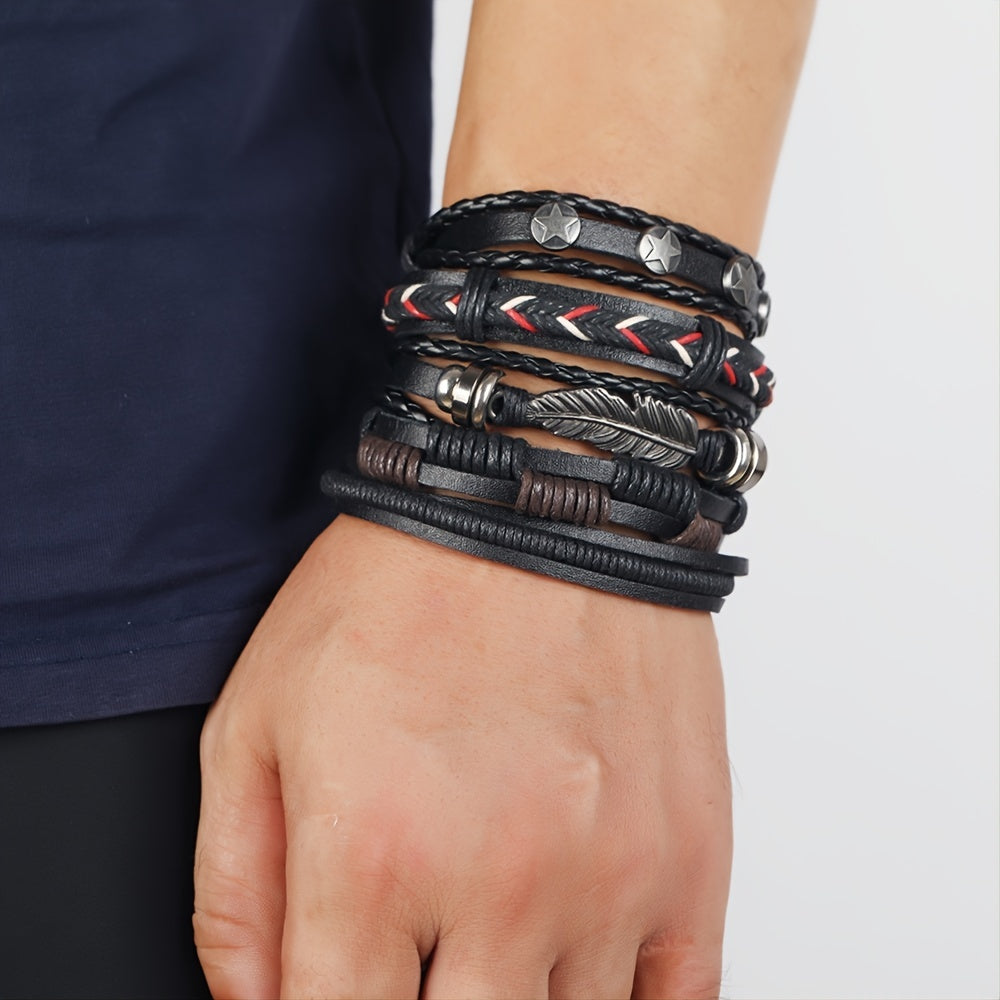 Add a touch of punk style to your look with this vintage layered braided set of PU leather bracelets for men.