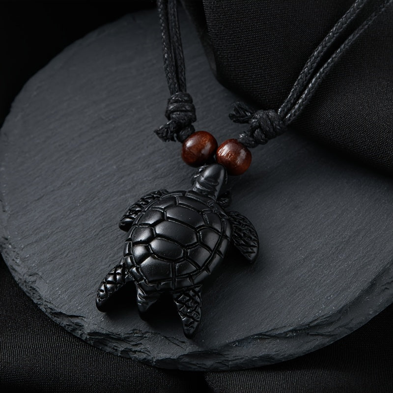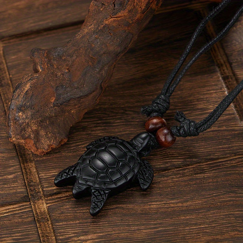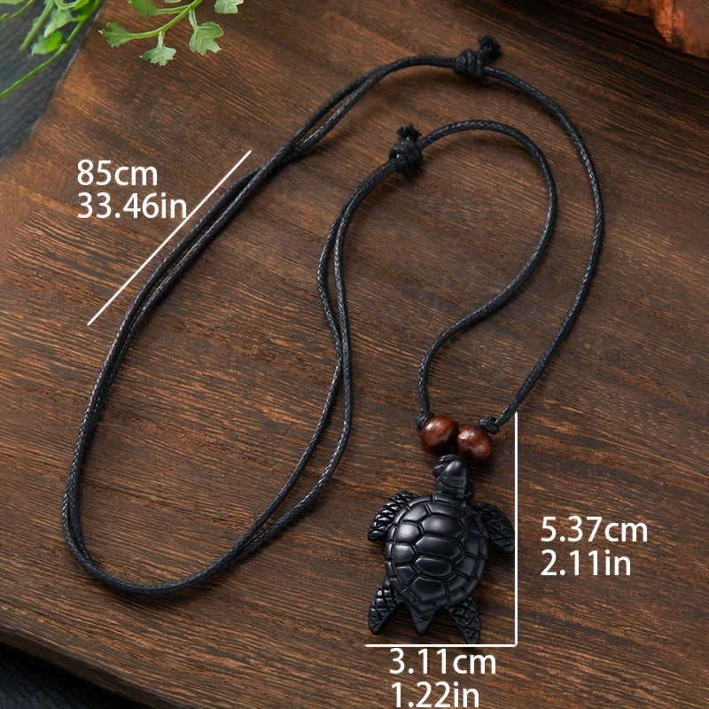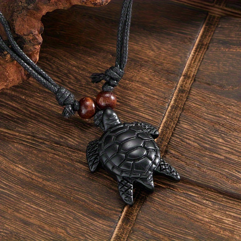 Embrace Bohemian charm with this turtle pendant necklace featuring a braided cord and wooden beads. This everyday accessory is a symbol of good luck designed for men with a touch of Bohemian style.