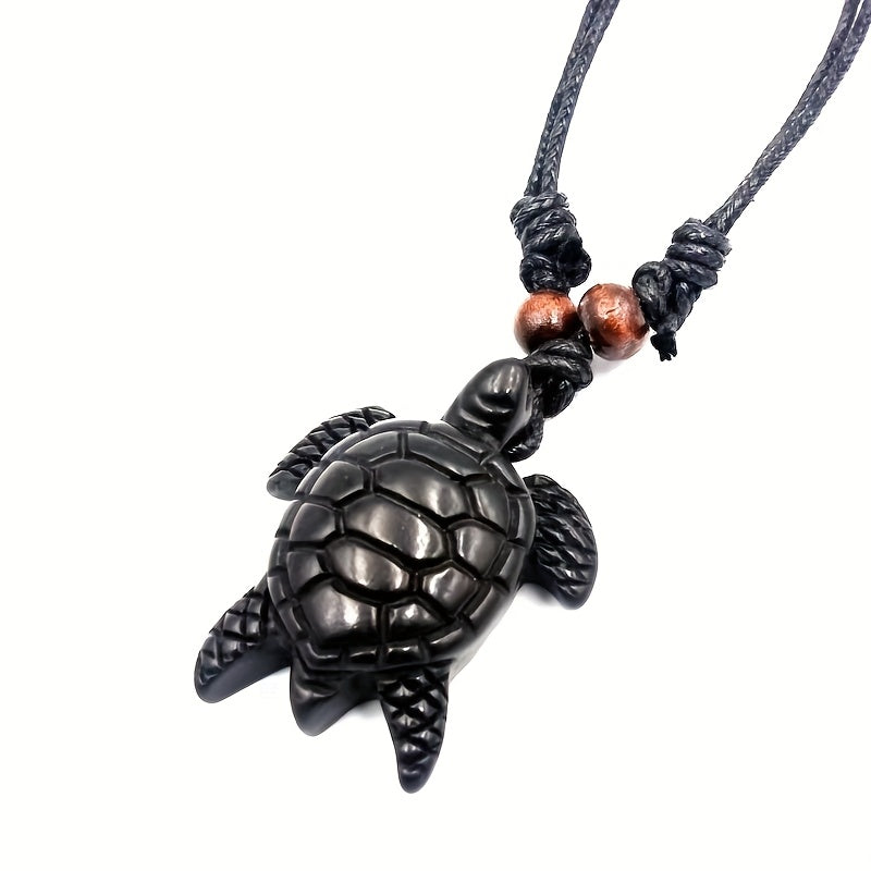 Men's Bohemian Turtle Pendant Necklace with Cord & Beads