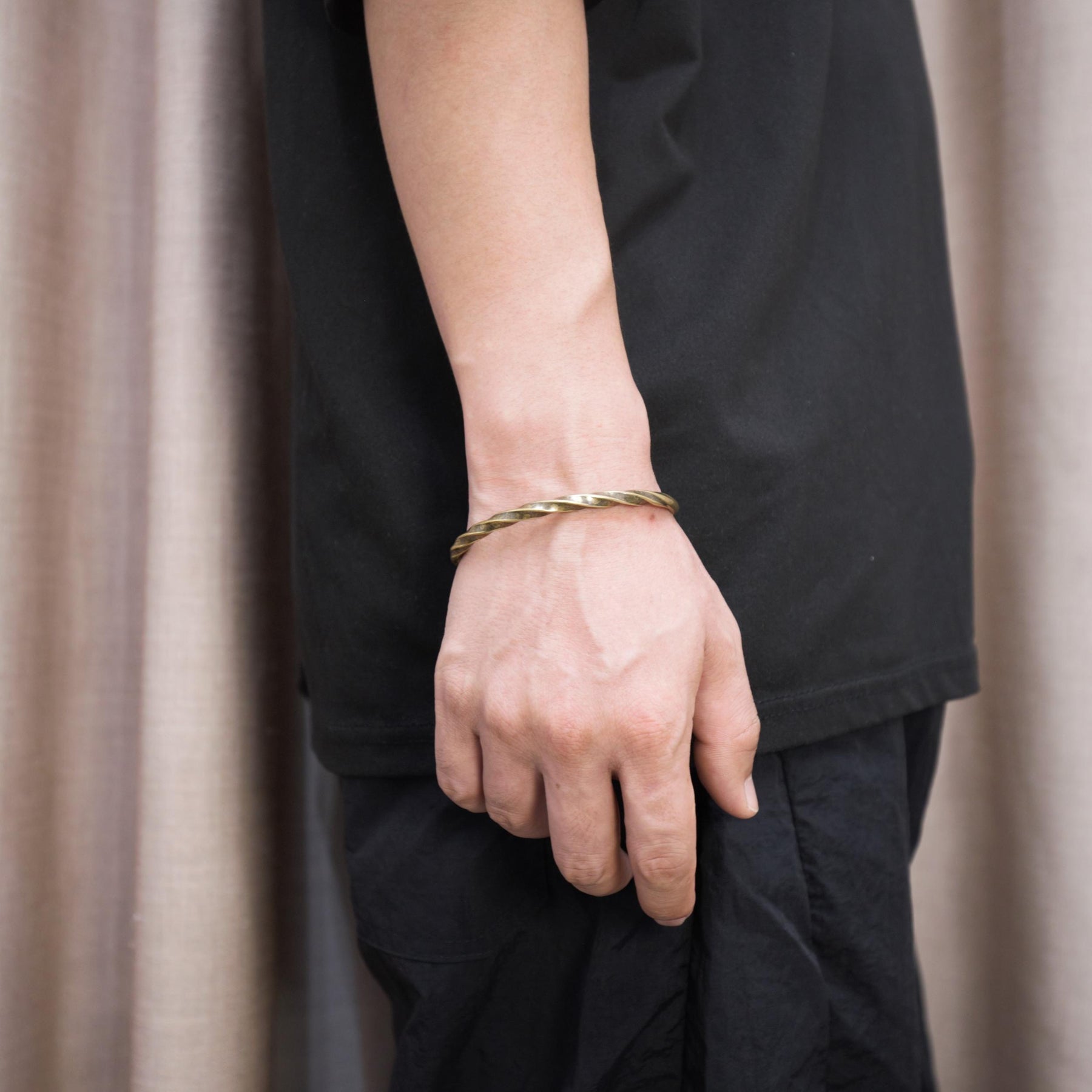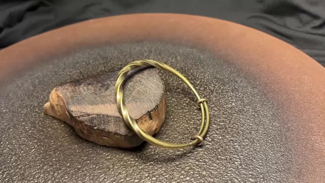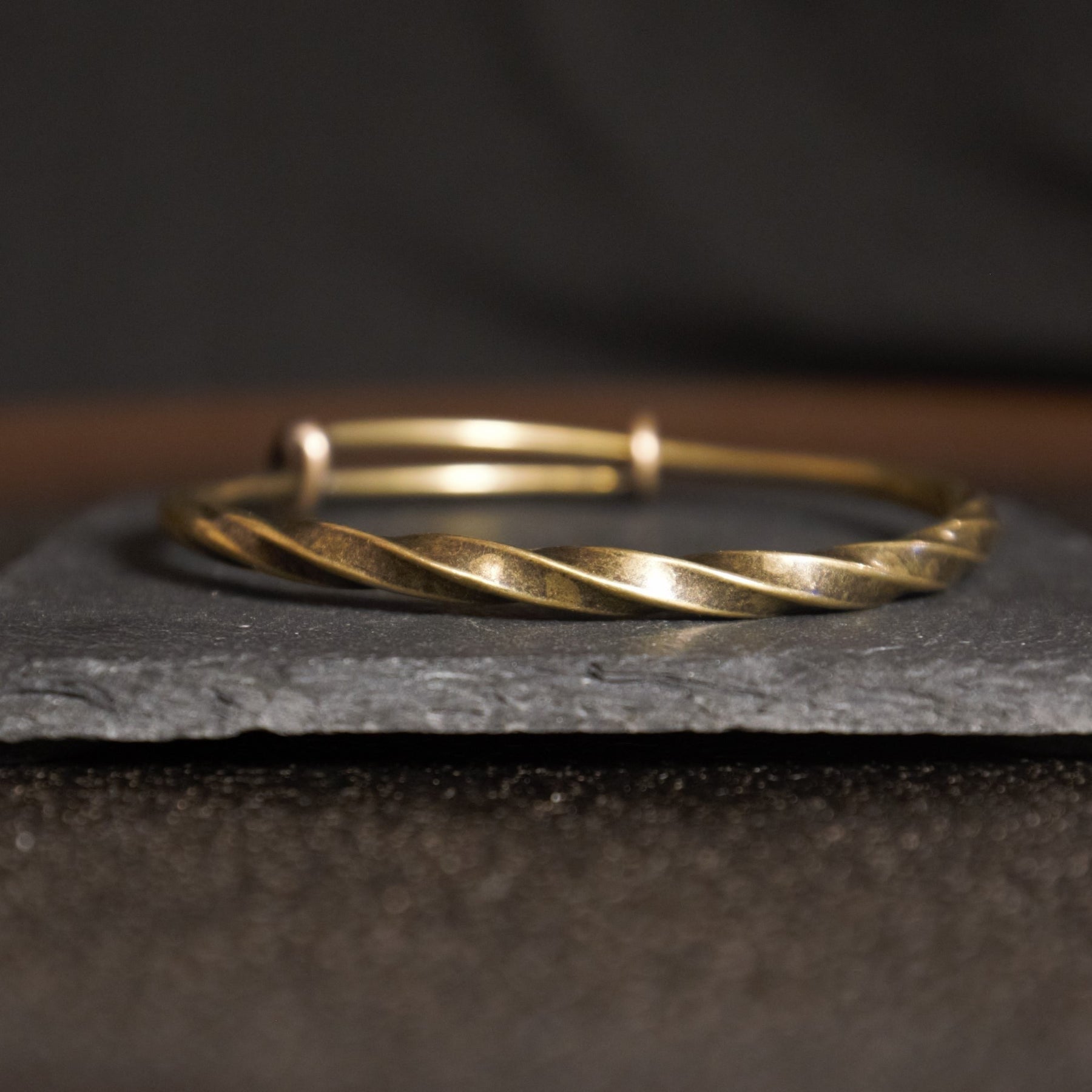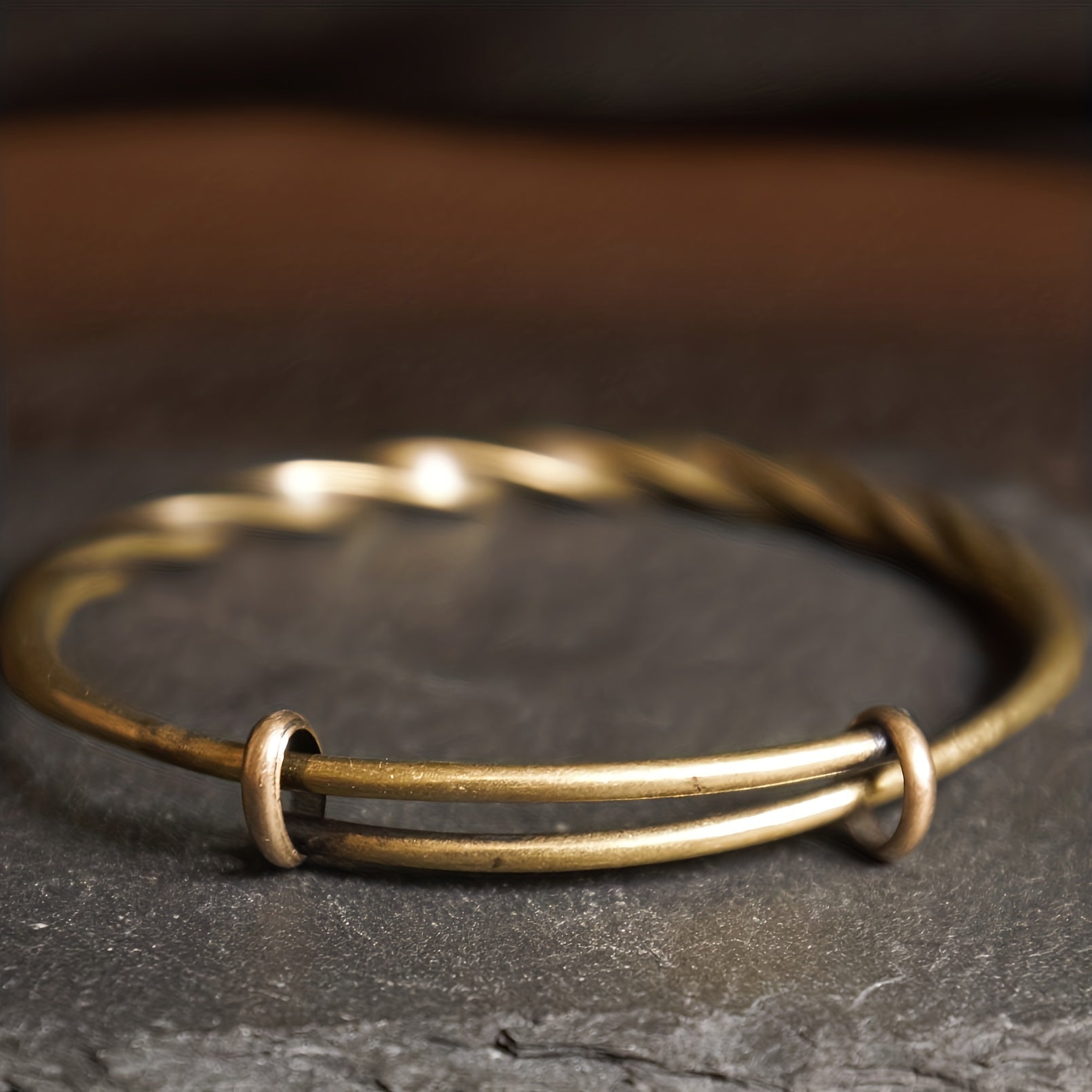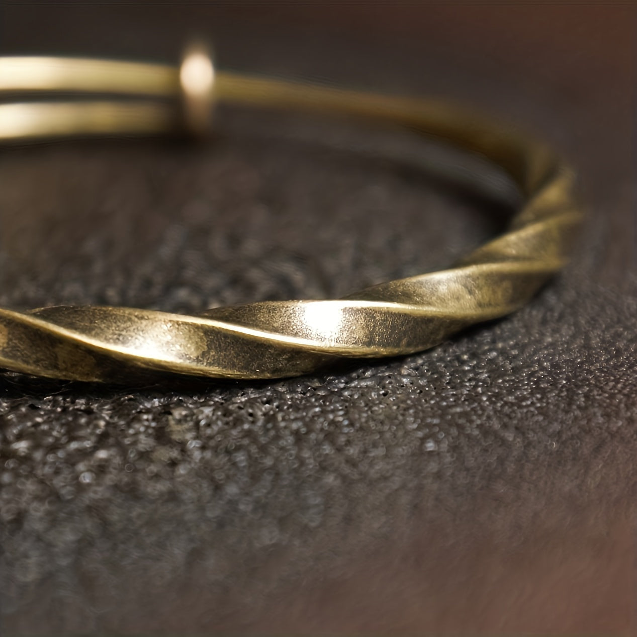 This men's pure copper wave bracelet features a vintage golden tone and an adjustable open end design. It is made of unplated metal, making it durable for casual and party wear. A unique gift for weddings or special occasions.