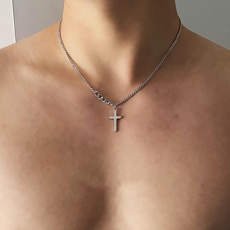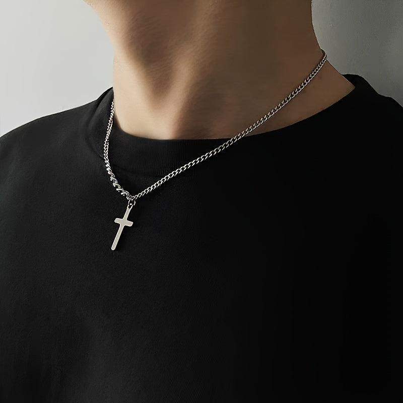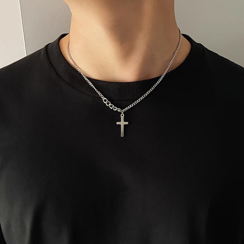 Men's Cross Pendant Necklace Iron Chain Alloy Cross Religious Jewelry
