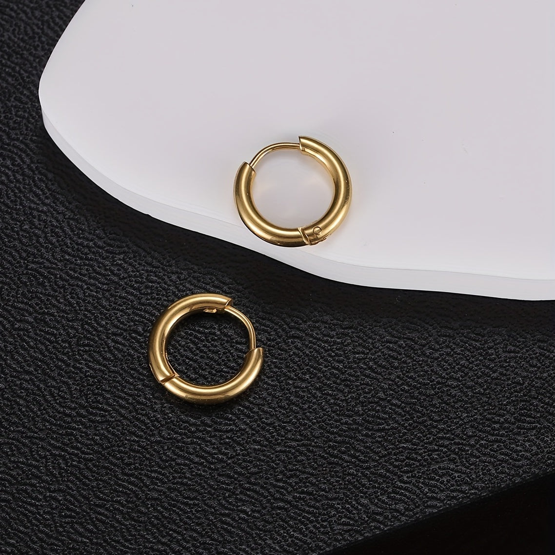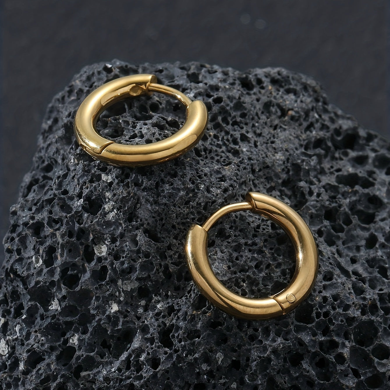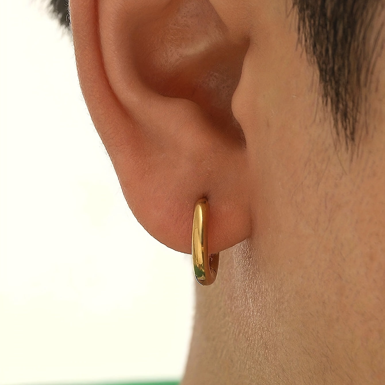 These minimalist gold hoop earrings are perfect for men who enjoy a fashionable hip hop punk look. Made of stainless steel, they are non-magnetic and comfortable to wear.