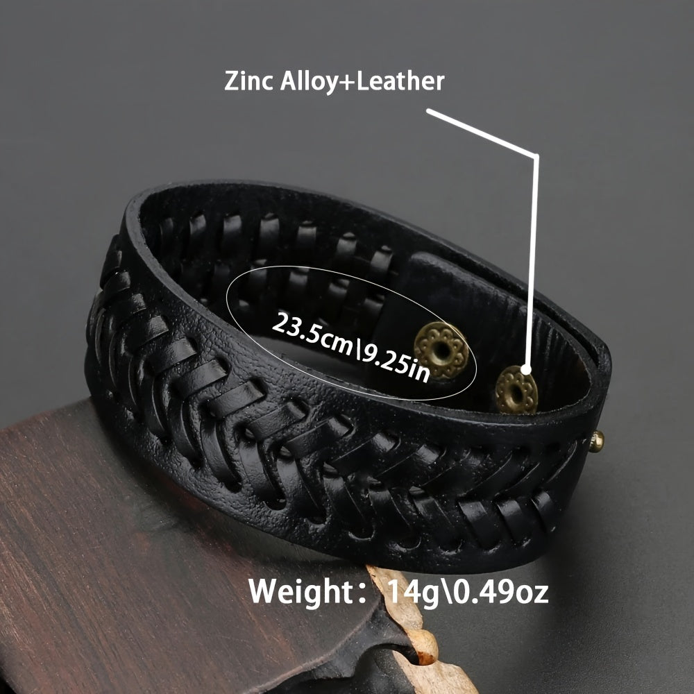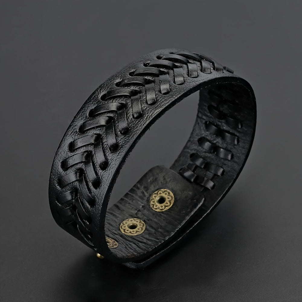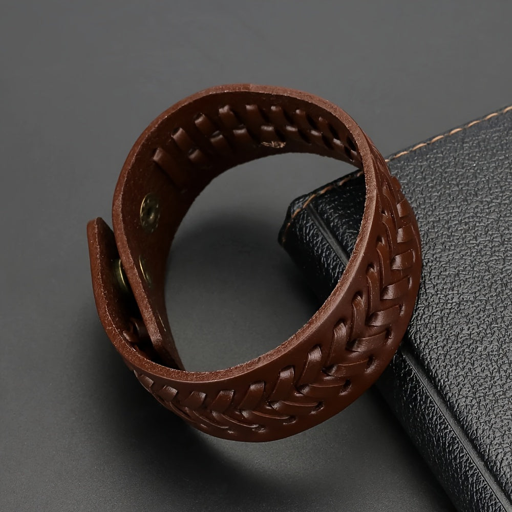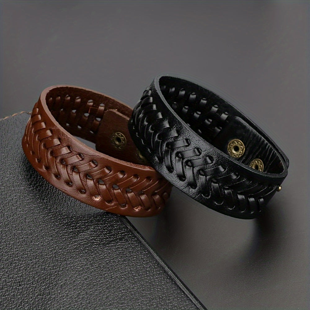 Elevate your everyday and formal wear with this handwoven leather bracelet featuring a textured vintage style in brown. Crafted with high-quality leather for a rugged yet stylish look.