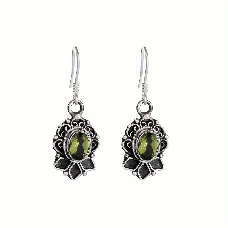 These stylish earrings feature a green stone pattern with synthetic zircon, perfect for casual parties. Made of lightweight zinc alloy, these earrings make a fashionable gift.